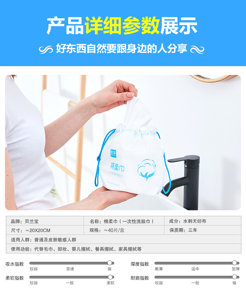 贝兰宝【4大包装钜惠!】采用珍珠纹工艺,精选优质棉水刺无纺布,亲肤吸水,柔韧耐用不掉絮,干湿两用,为娇嫩肌肤而生~仙女速购!【赠运费险】