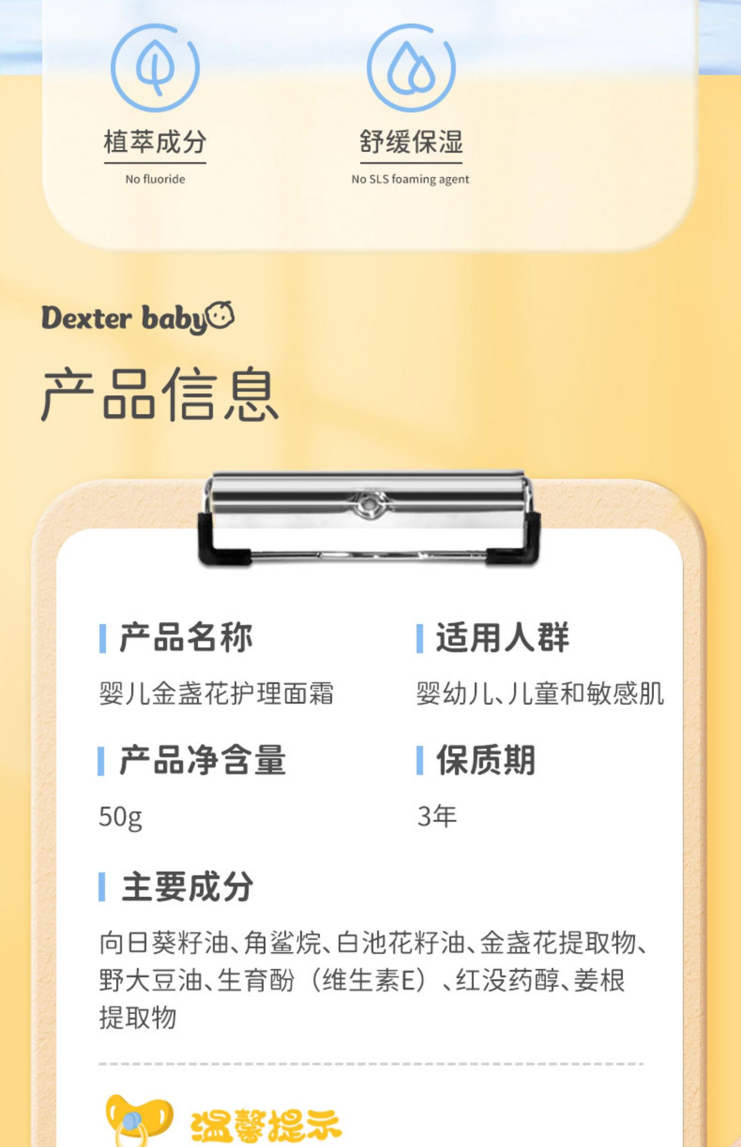 戴可思婴儿面霜婴幼儿宝宝霜金盏花护理霜保湿滋润春季多效润肤霜一瓶多效,天然呵护,适合娇嫩肌肤。