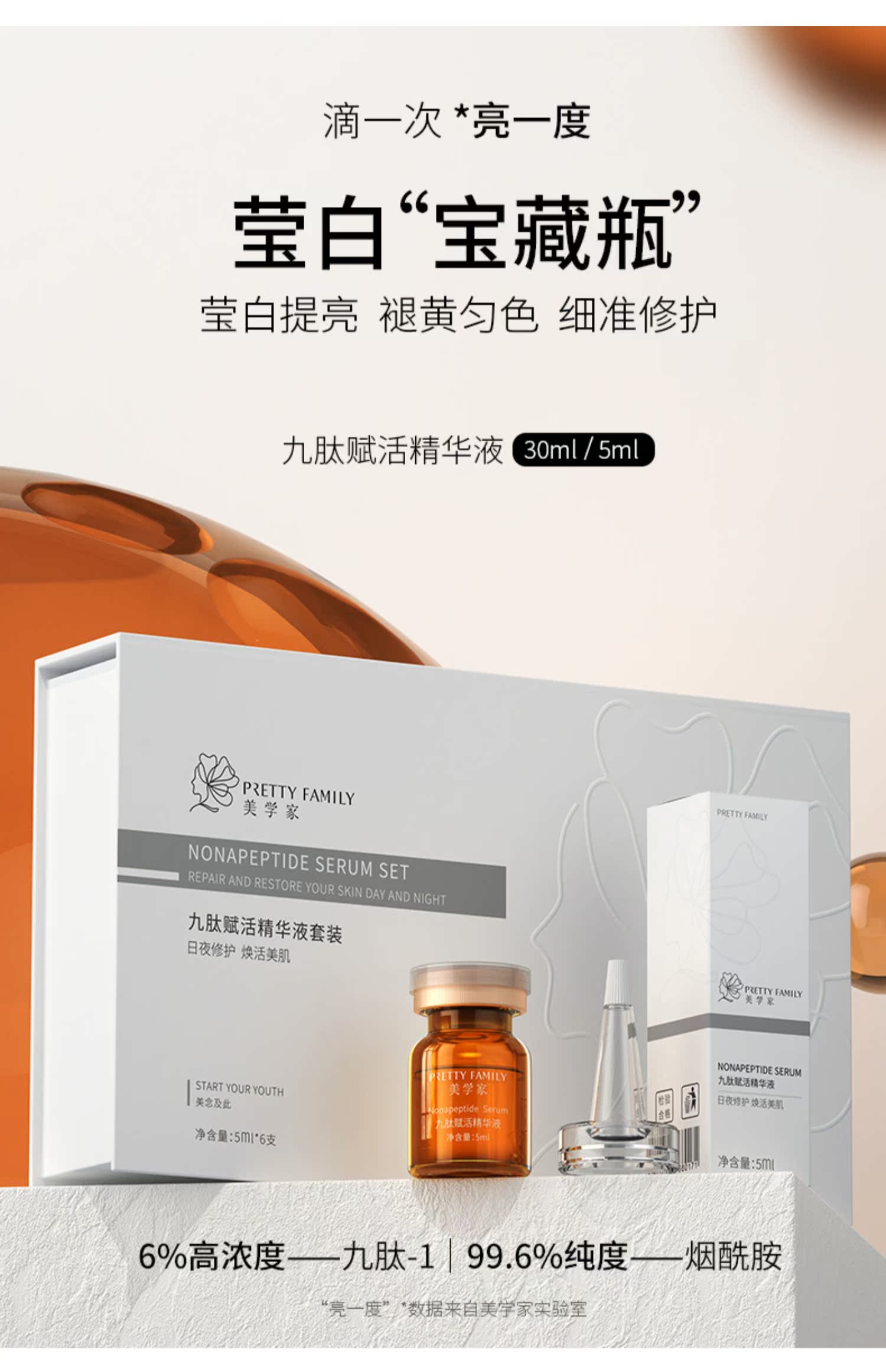 【美学家】滴一次,亮一度。莹白体量,退黄匀色,3分钟见效,白一度,细准修护。九肽赋活精华液,明星成分,适用各肌肤,包括敏感肌,统统解决暗黄,细纹,黑眼圈,红血丝,痘痘印烦恼【赠运费险】