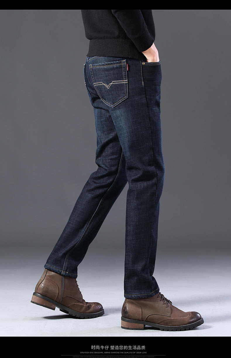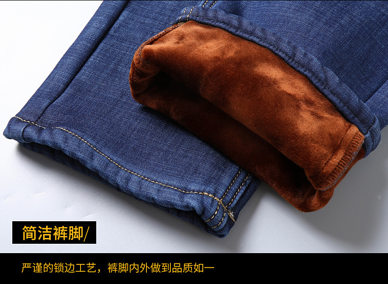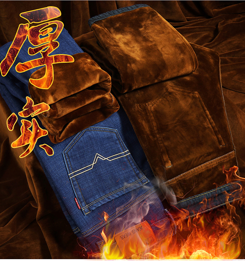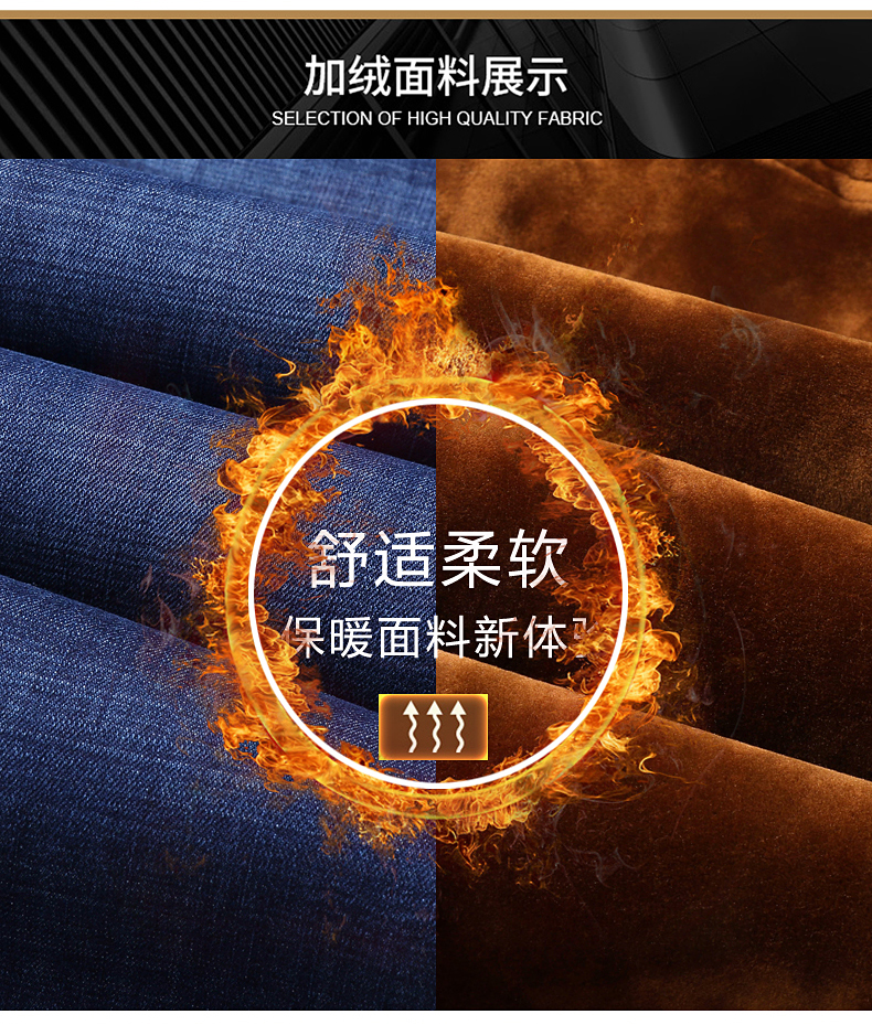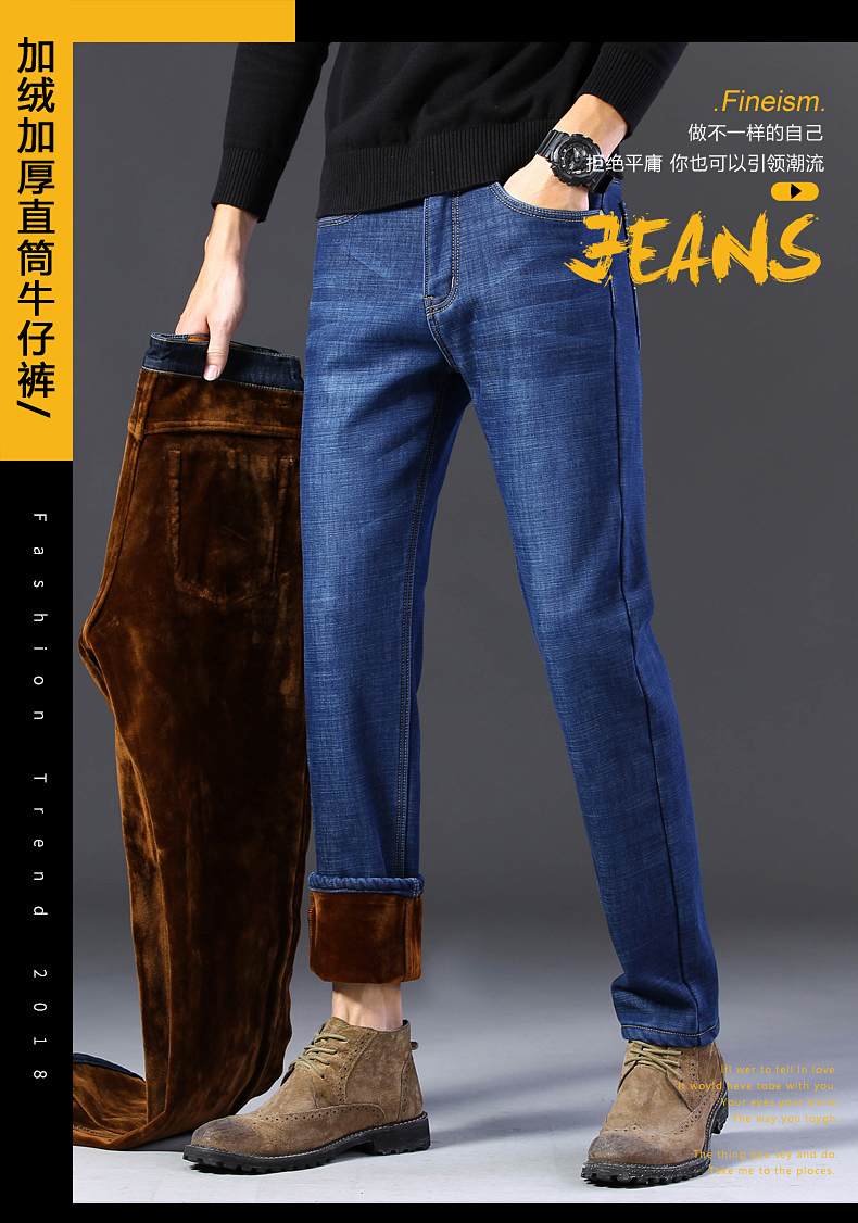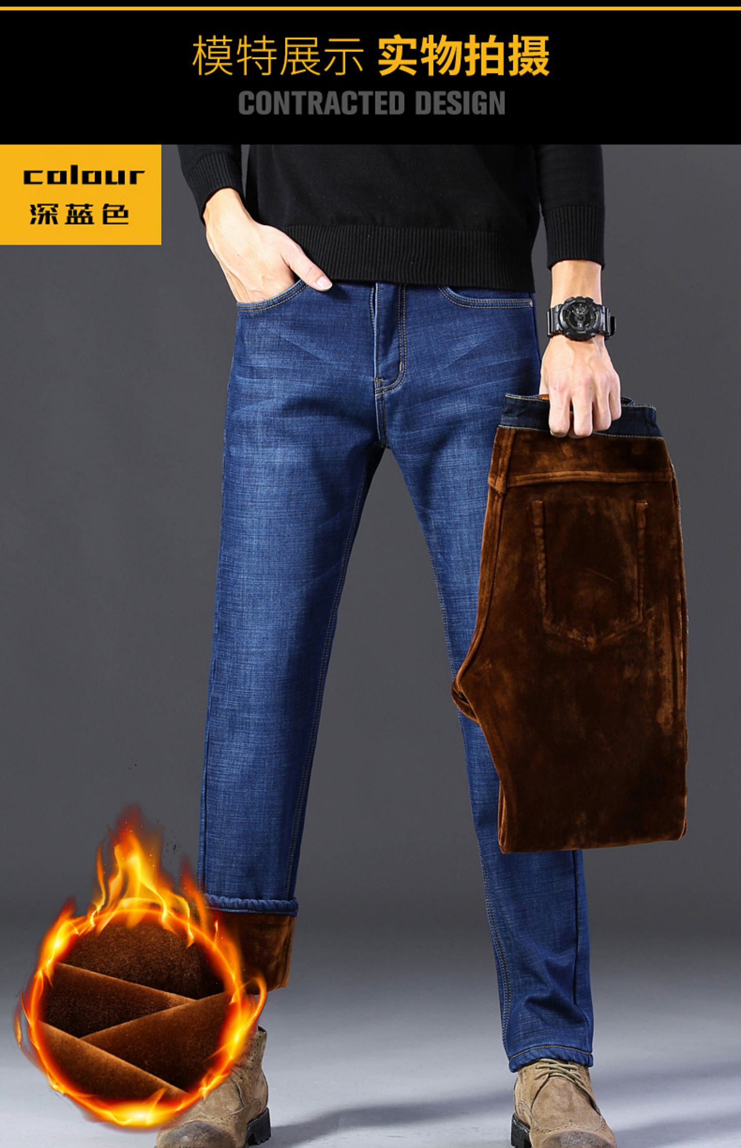 男士秋冬季加绒牛仔裤弹力高腰直筒裤男装