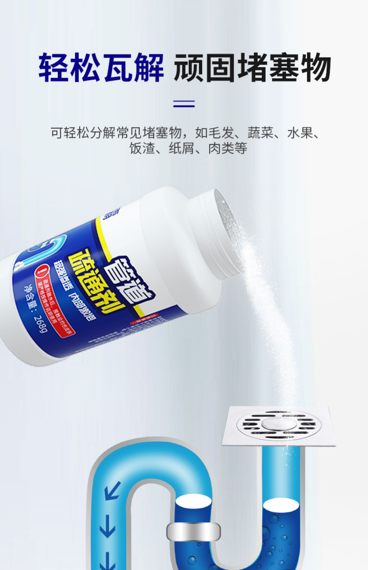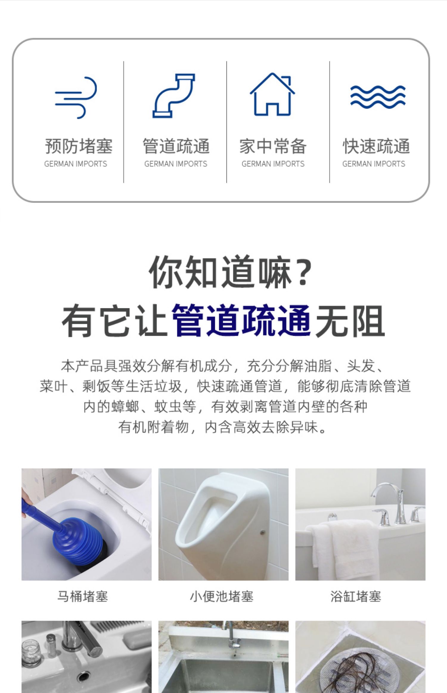 【拍2发4合一瓶到手价7.55元】强力管道疏通剂,2秒释放>75℃,强力溶解附着在管道内壁上的油渍、食物残渣、毛发等粘稠污物,清洁杀菌、除臭、养护家里必不可少的神器,预防堵塞提前备货!好评如潮值得入手