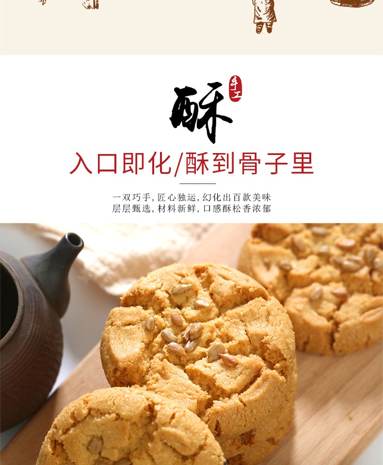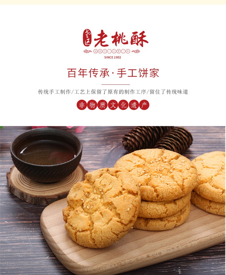 万人回购桃酥饼干,传统手工制作,味道醇厚香甜,非油炸更健康,酥到掉渣,好吃不腻,抗饿还养胃,人人都爱的休闲小零食哦~
