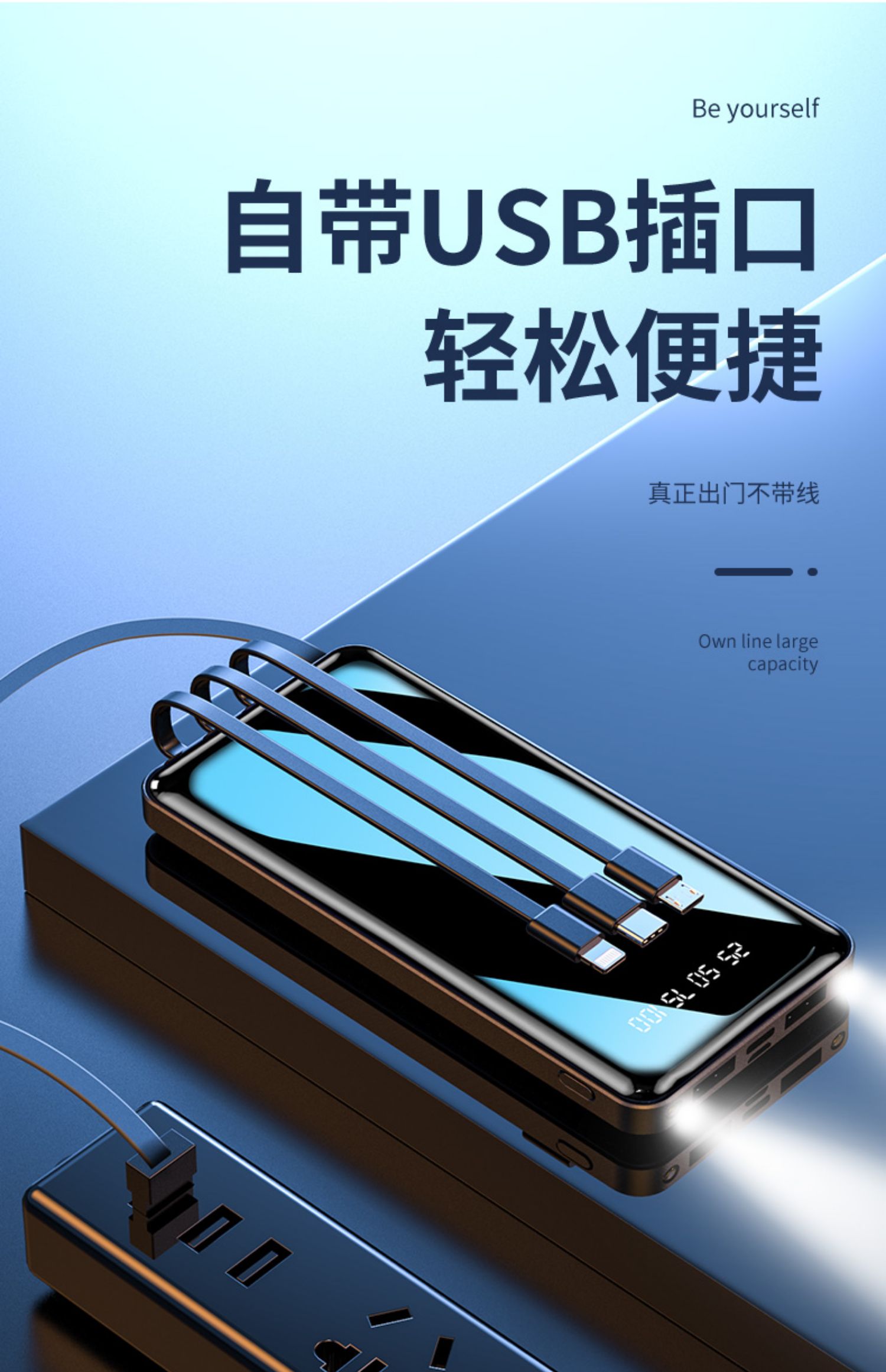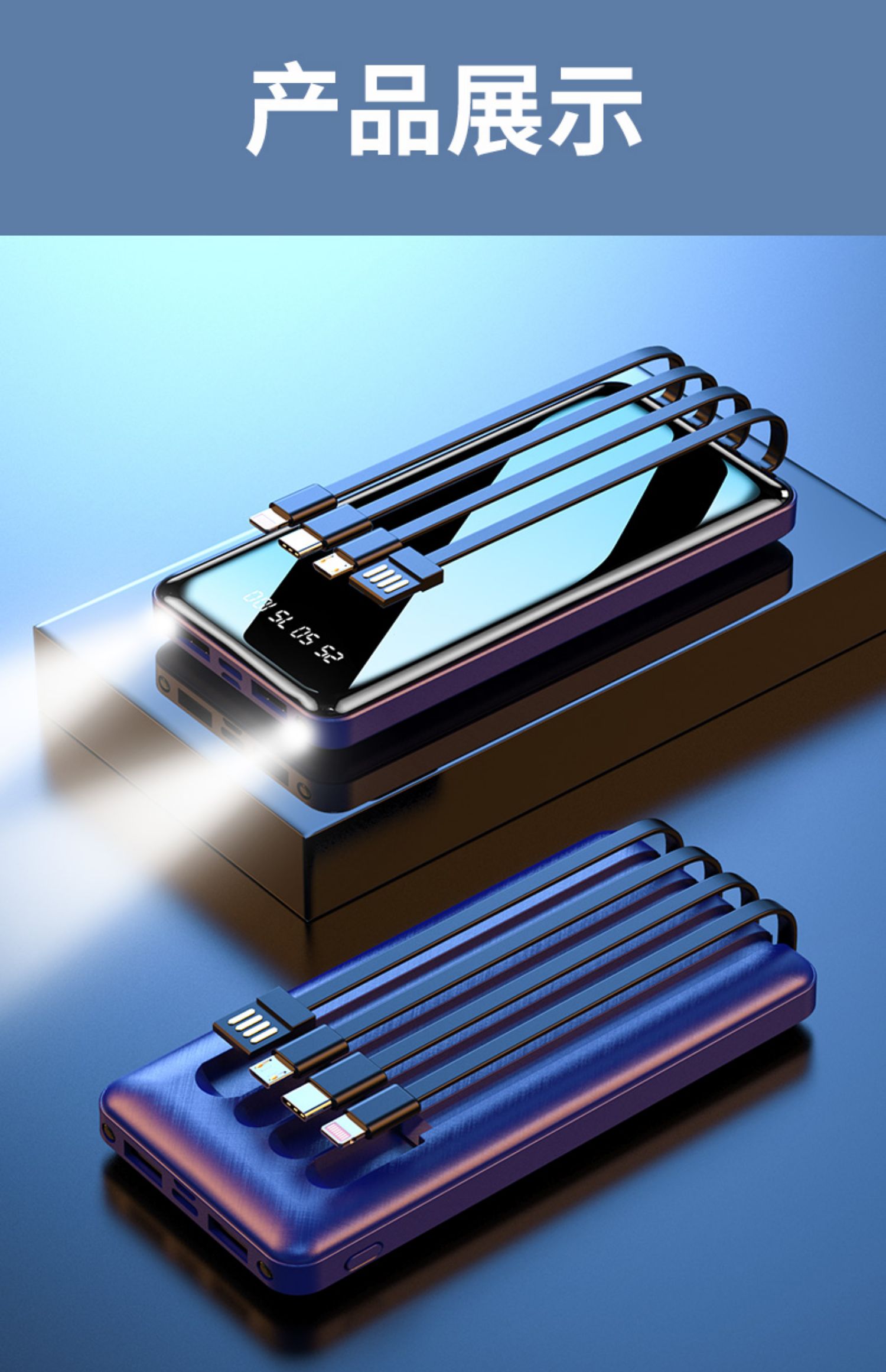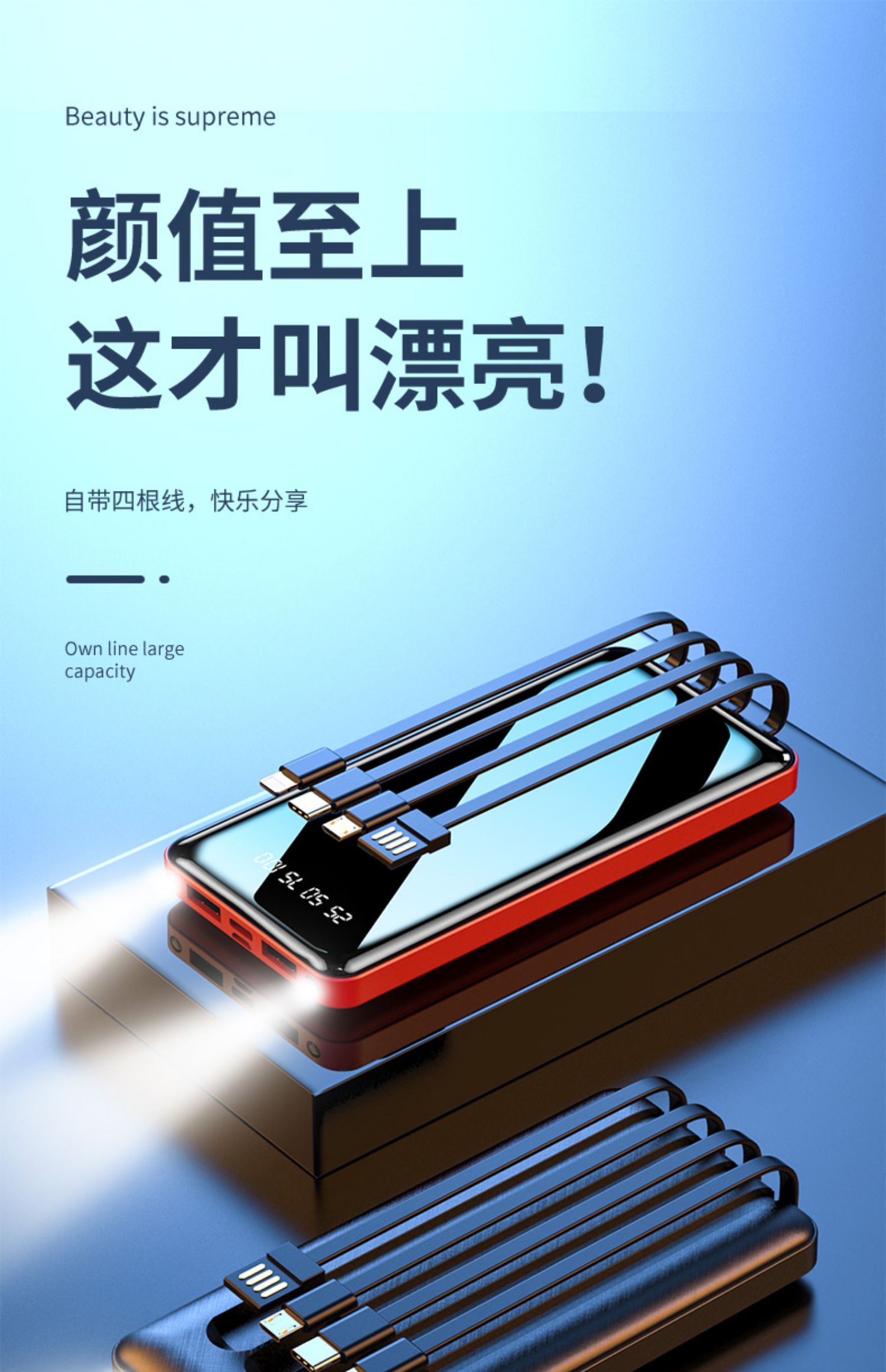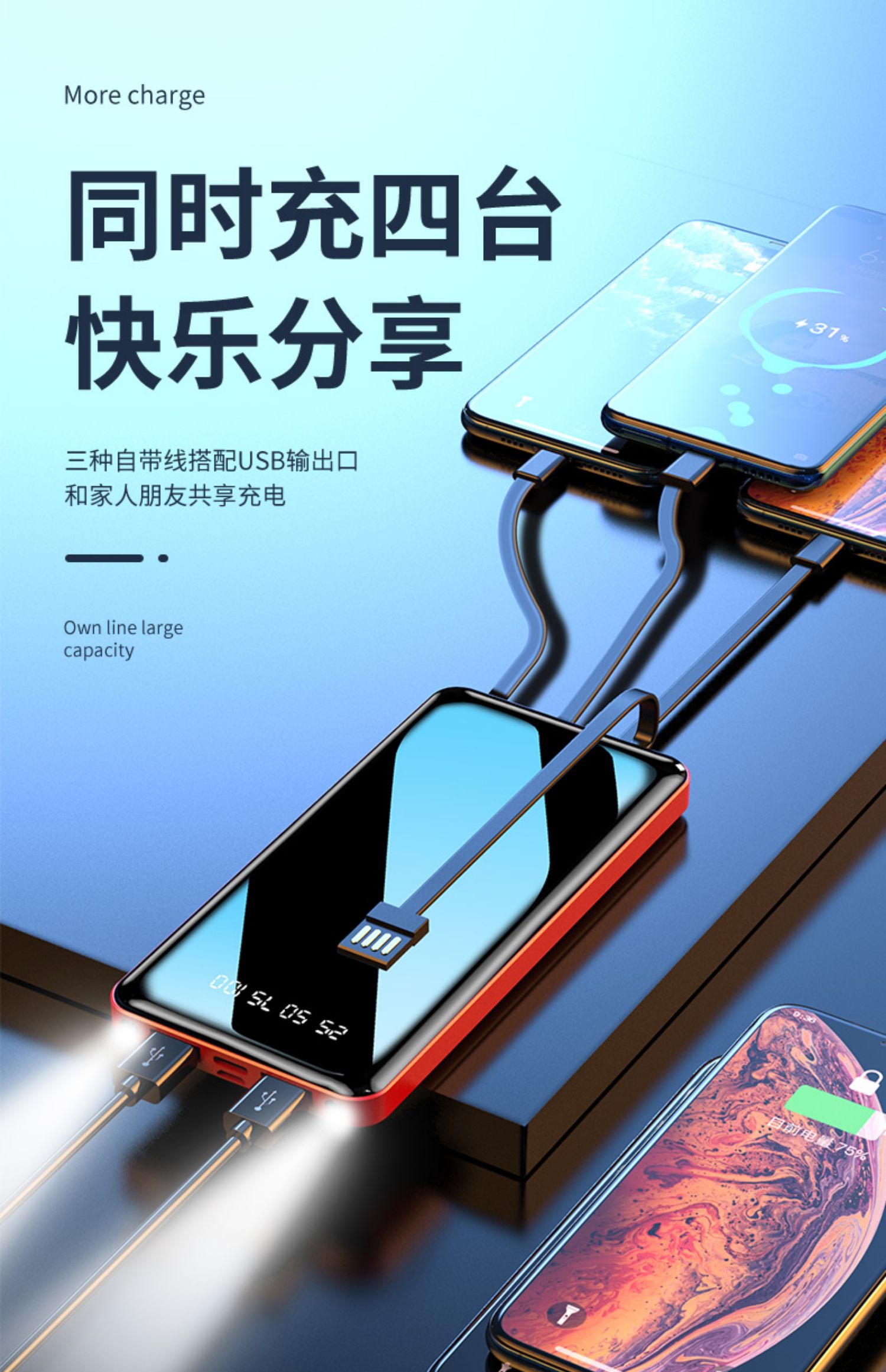 20000毫安充电宝自带线轻薄充电宝、可同充4部手机,快充闪充大容量,超薄小巧便携移动电源、可带上飞机、多色可选!智能芯片拒绝虚充和发烫、颜值与实力共存,随时随地和好便宜一起分享电量吧【赠运费险】
