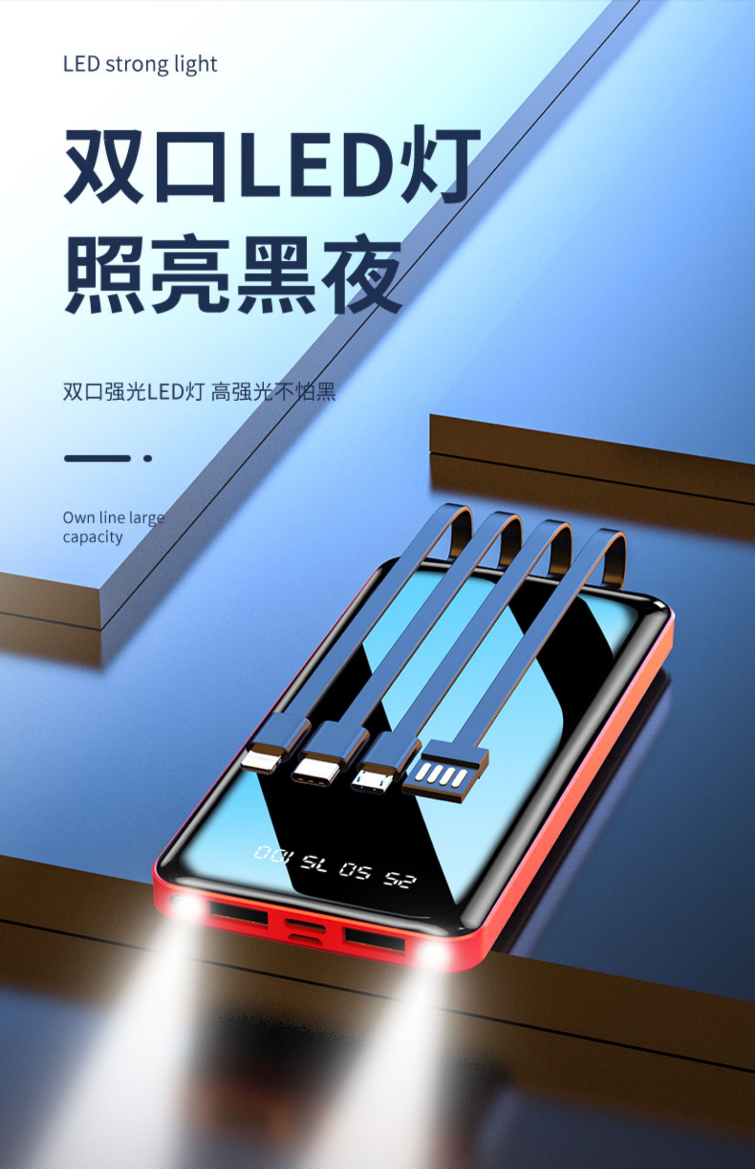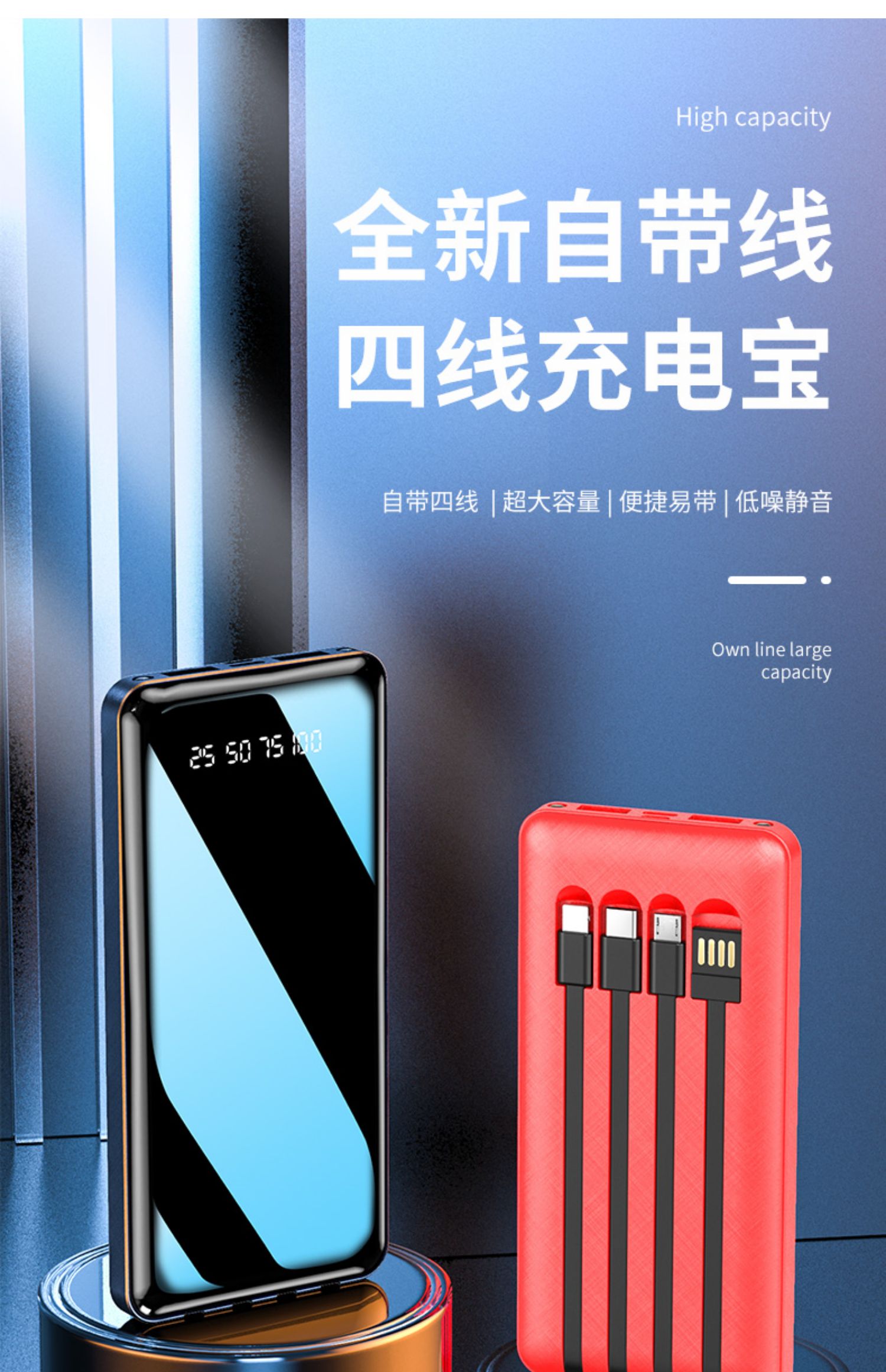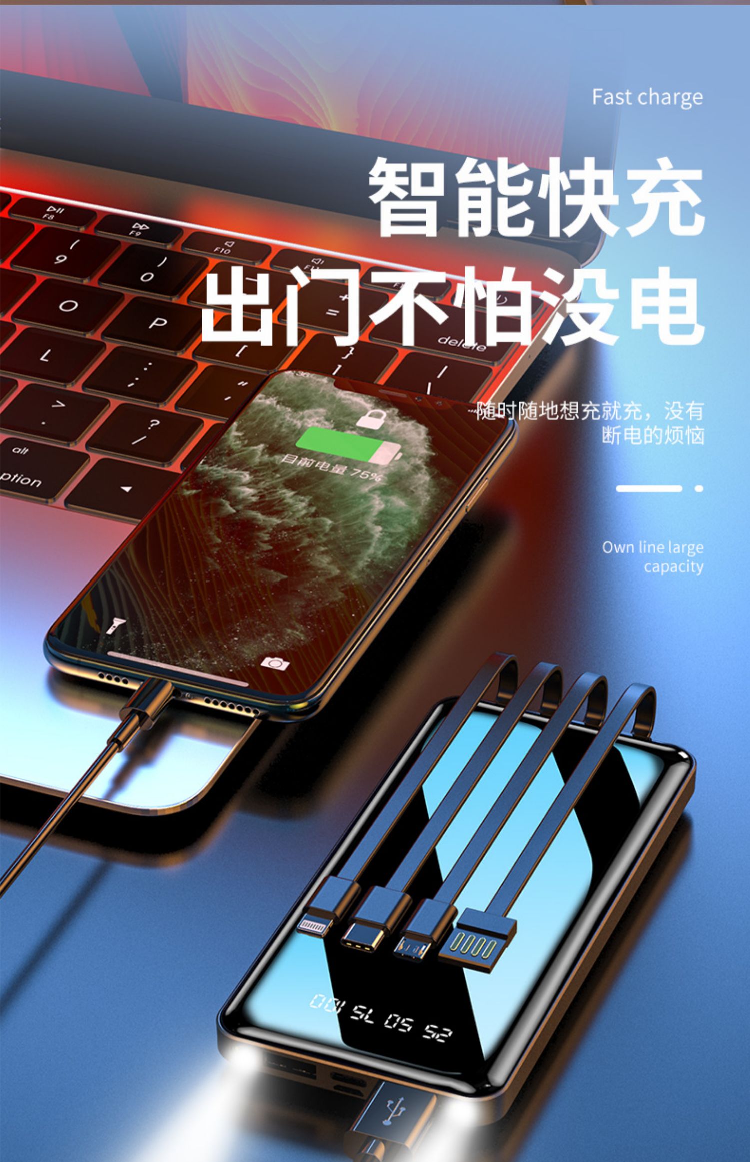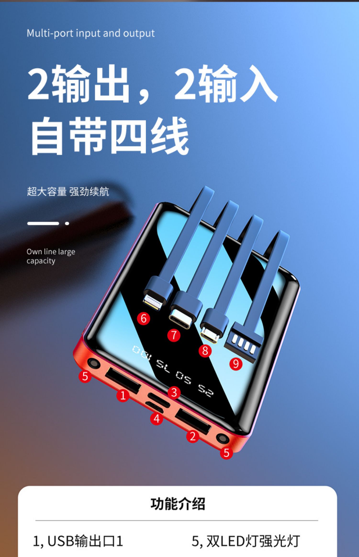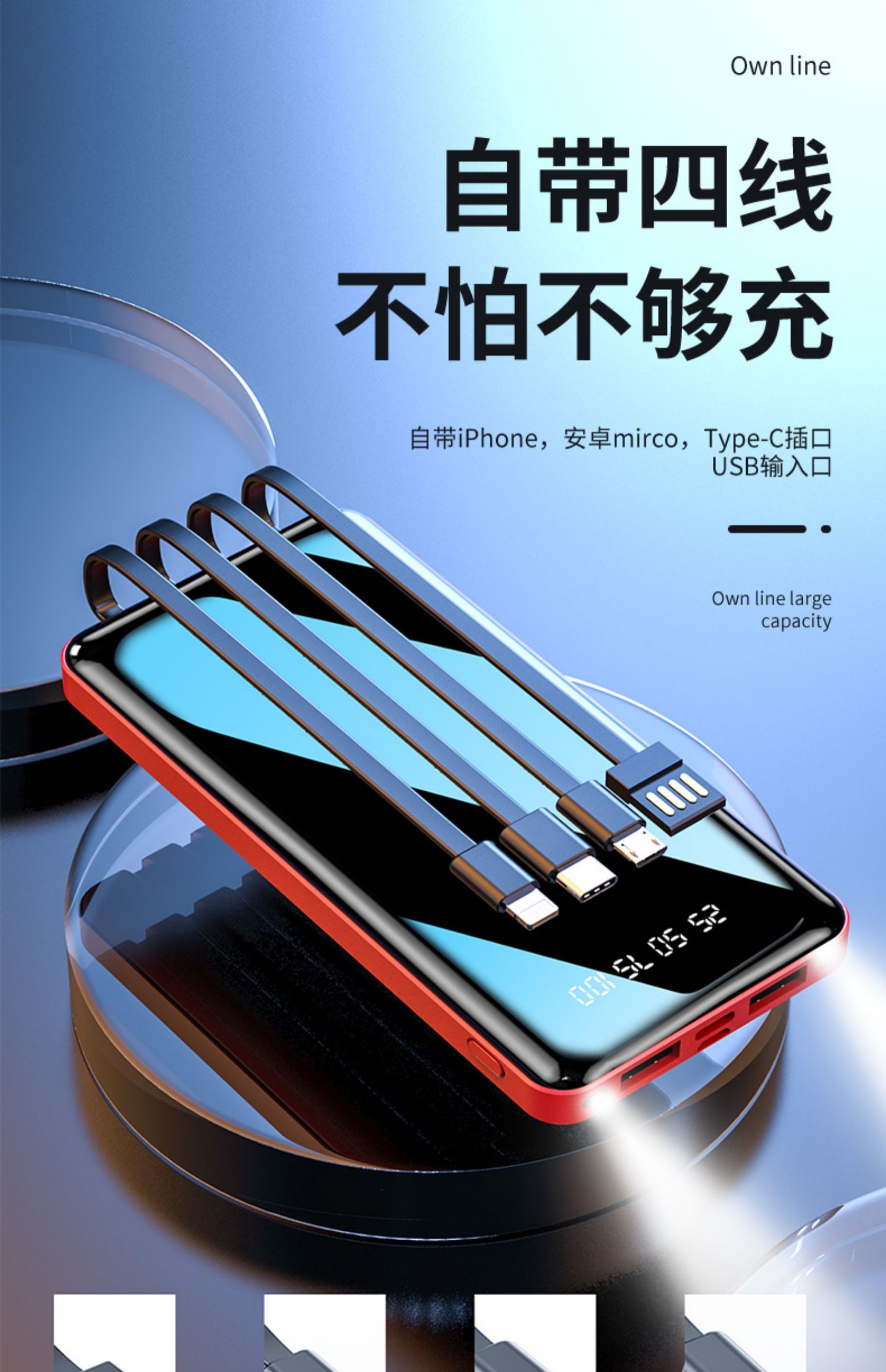 20000毫安充电宝自带线轻薄充电宝、可同充4部手机,快充闪充大容量,超薄小巧便携移动电源、可带上飞机、多色可选!智能芯片拒绝虚充和发烫、颜值与实力共存,随时随地和好便宜一起分享电量吧【赠运费险】