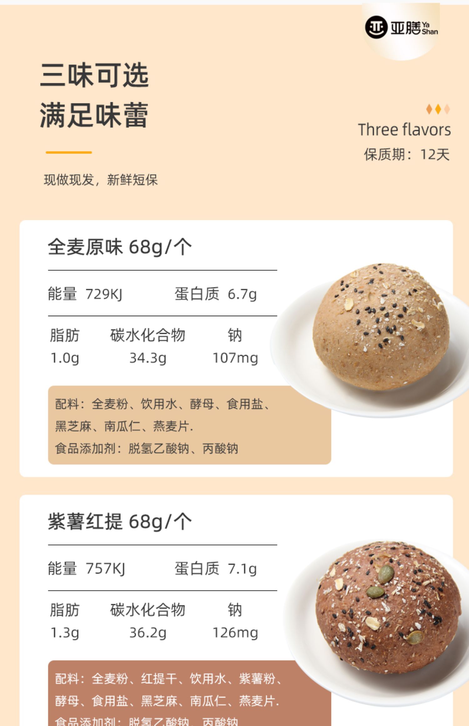 还在愁早餐吃什么?亚膳全麦面包6个装,现做现发,无蔗糖无油,科学热量差,拒绝节食饥饿瘦,好吃不怕胖,早餐来一个,精神一整天!