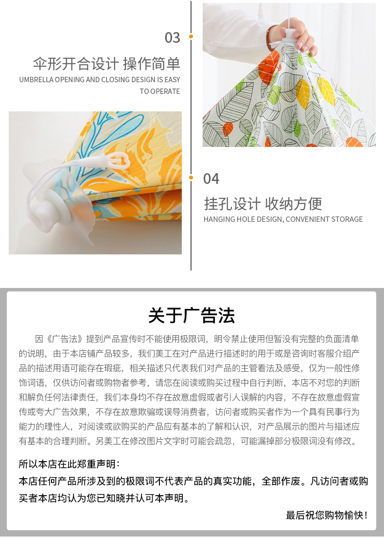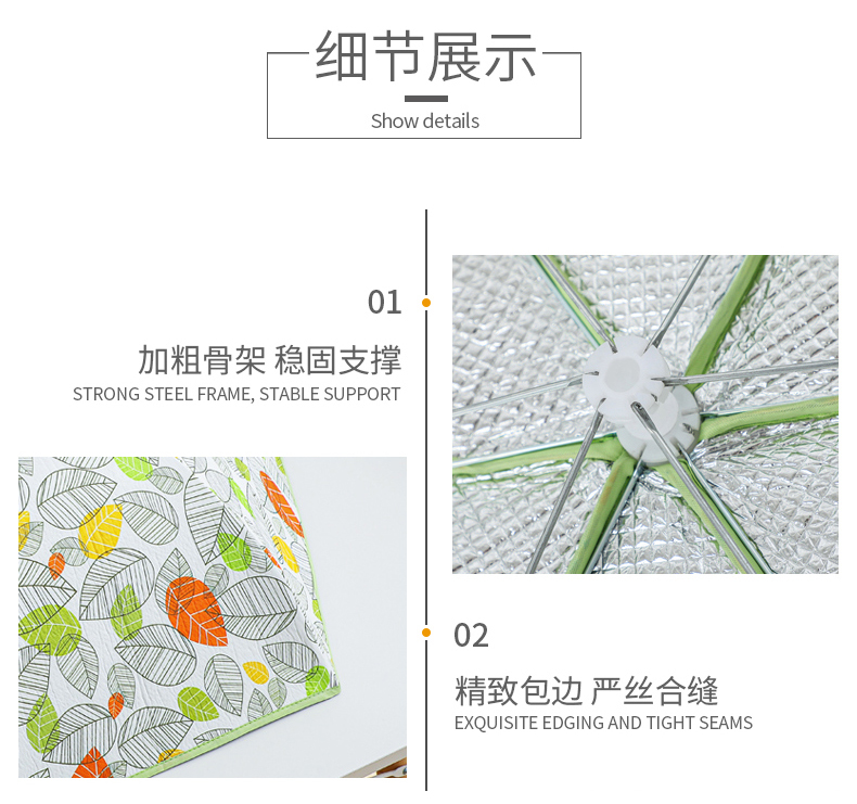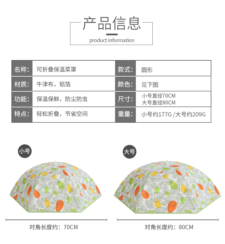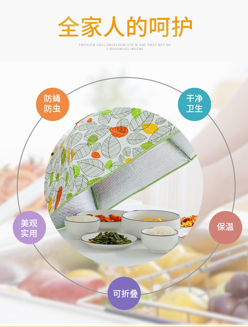 加厚牛津纺料,可折叠铝泊菜罩,保温时间更长,多种颜色可选,可水洗,可悬挂收纳,居家暖心防尘又环保,健康无味,大小号设计,满足家庭不同需求!