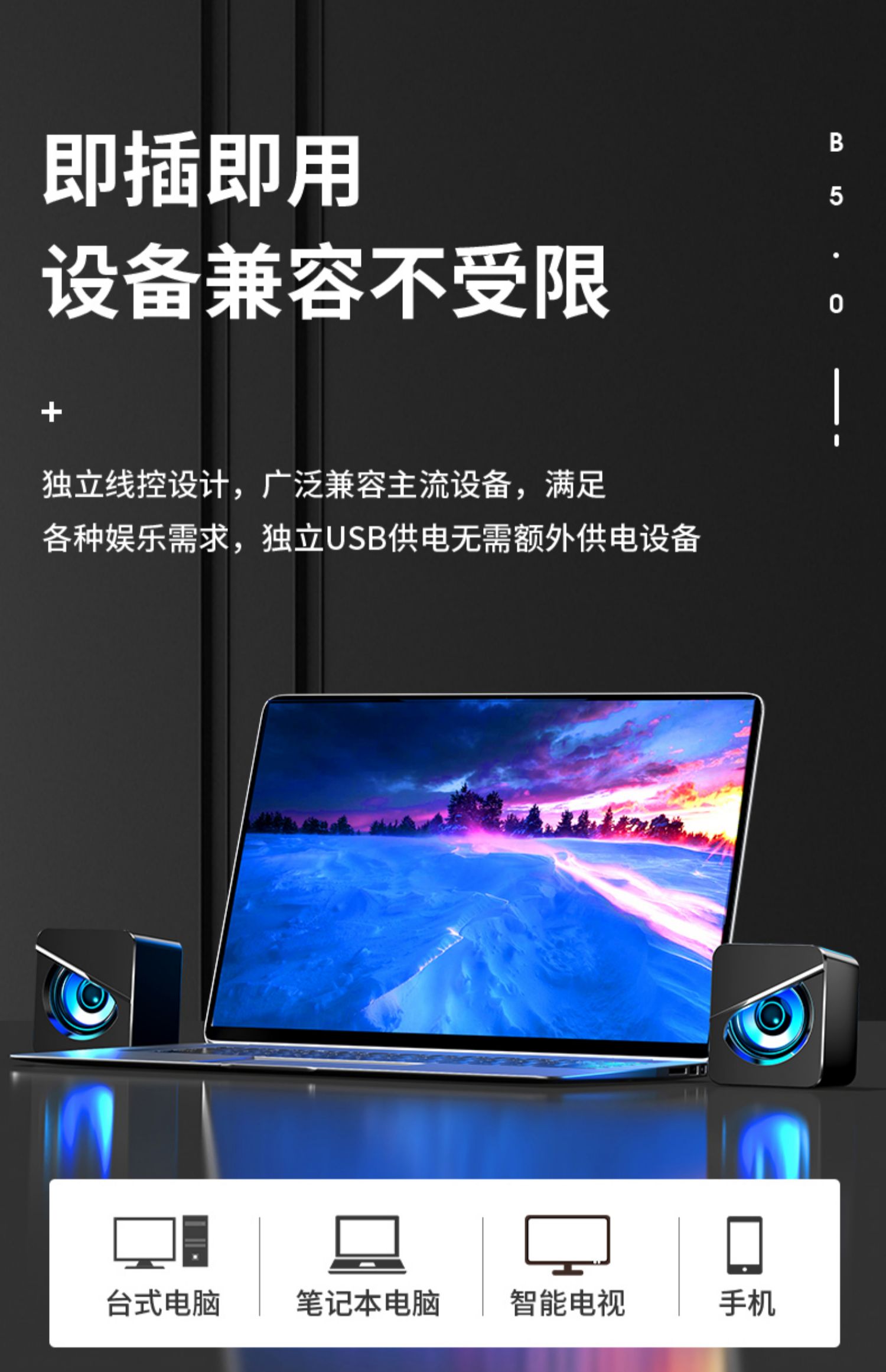 渥赢有线音响,台式笔记本通用,音质清晰感人,可调节声音大小,音乐好伴侣,好歌就配好音响!