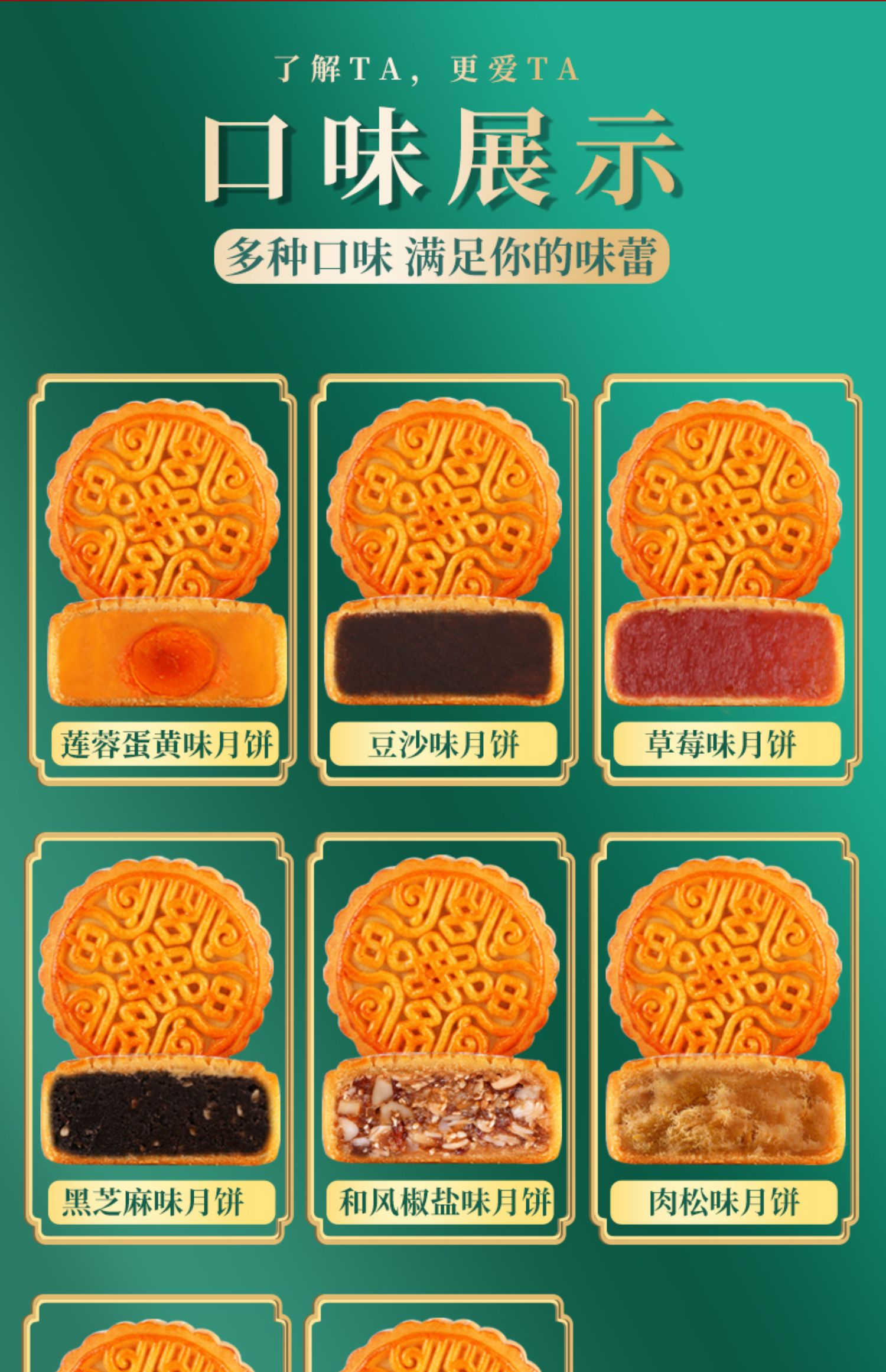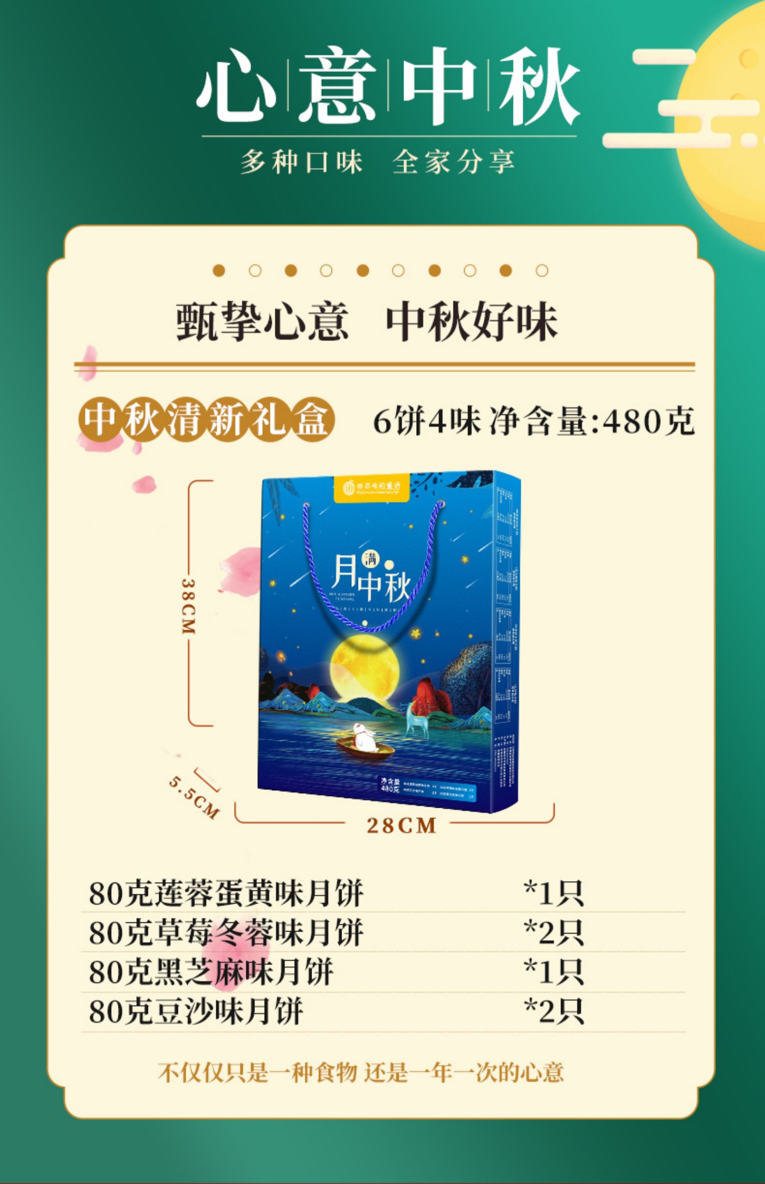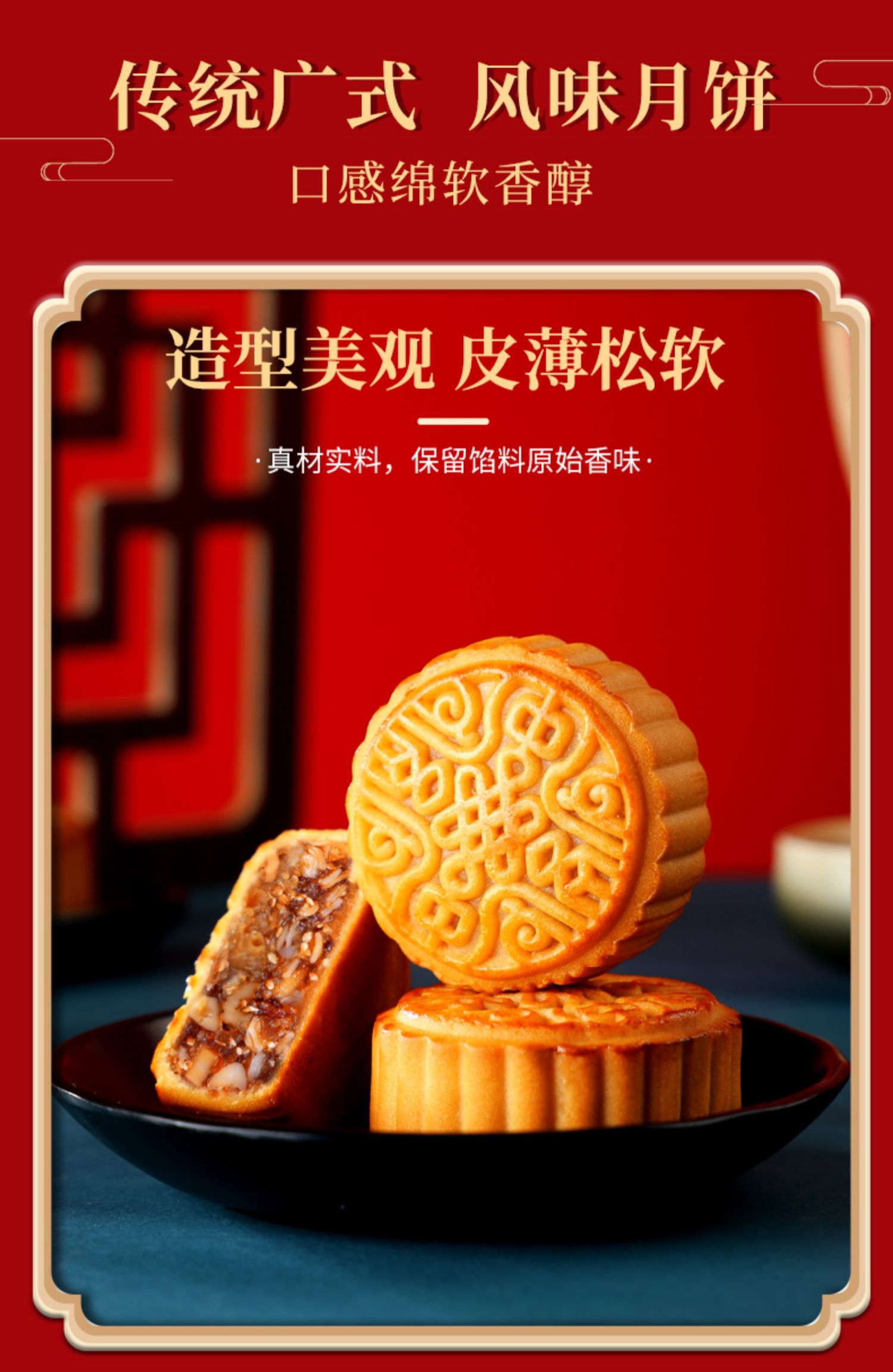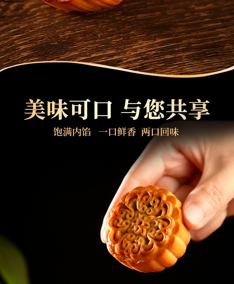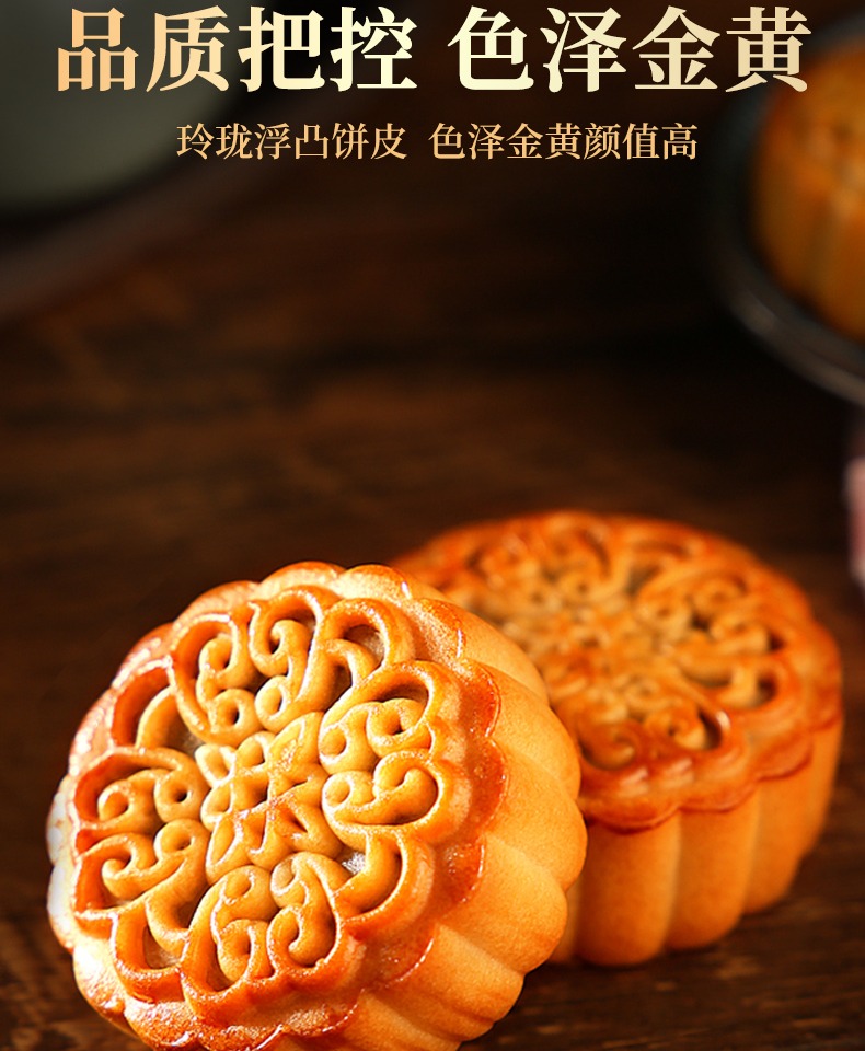 【6只装】五种口味可选,独立包装,黑芝麻、豆沙、莲蓉蛋黄月饼都有,口感细腻,皮薄馅多!都是近几天的生产日期,现做现卖,质量安全,回味无穷!