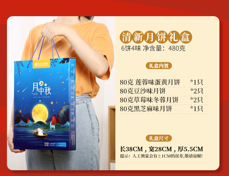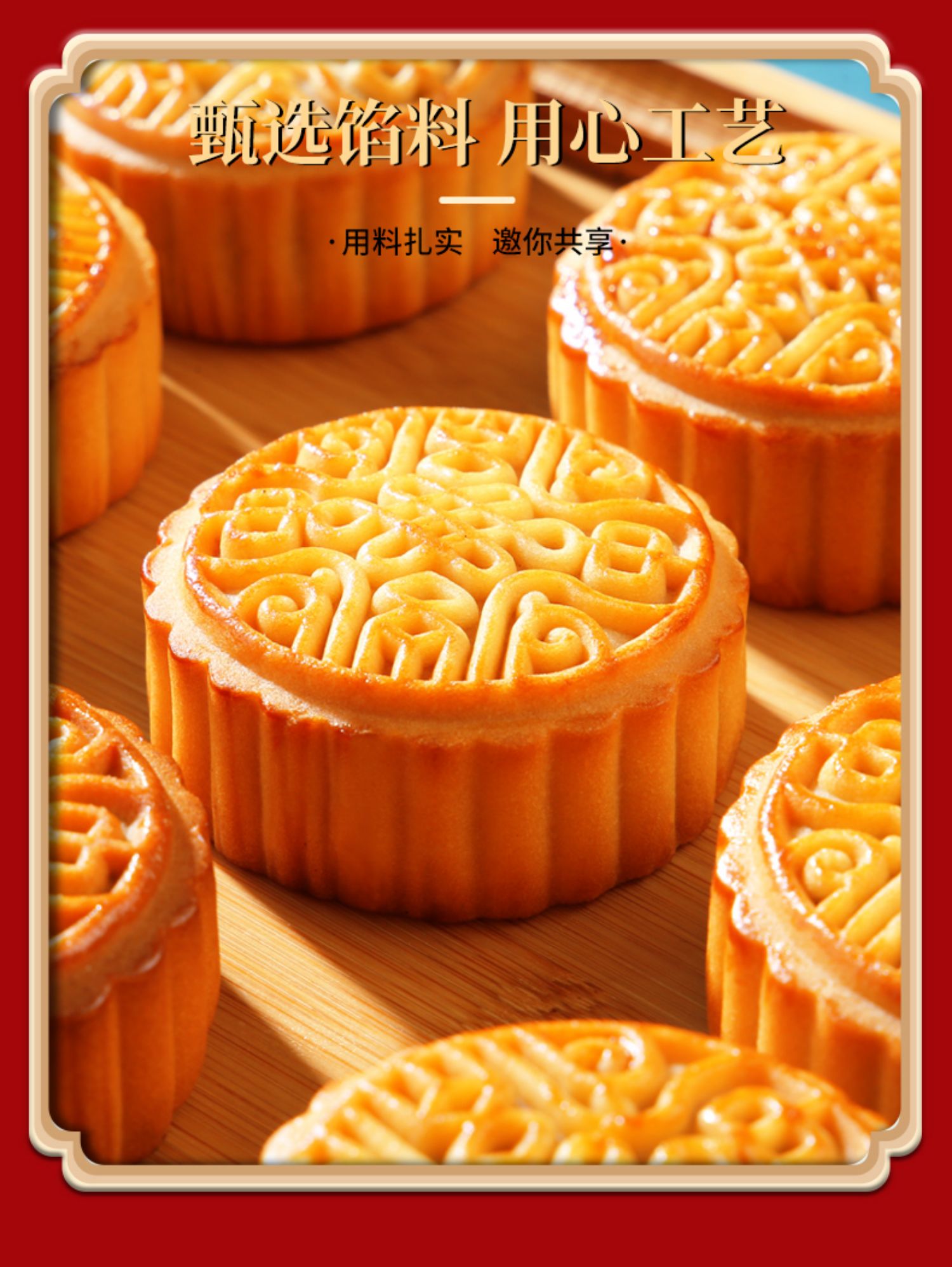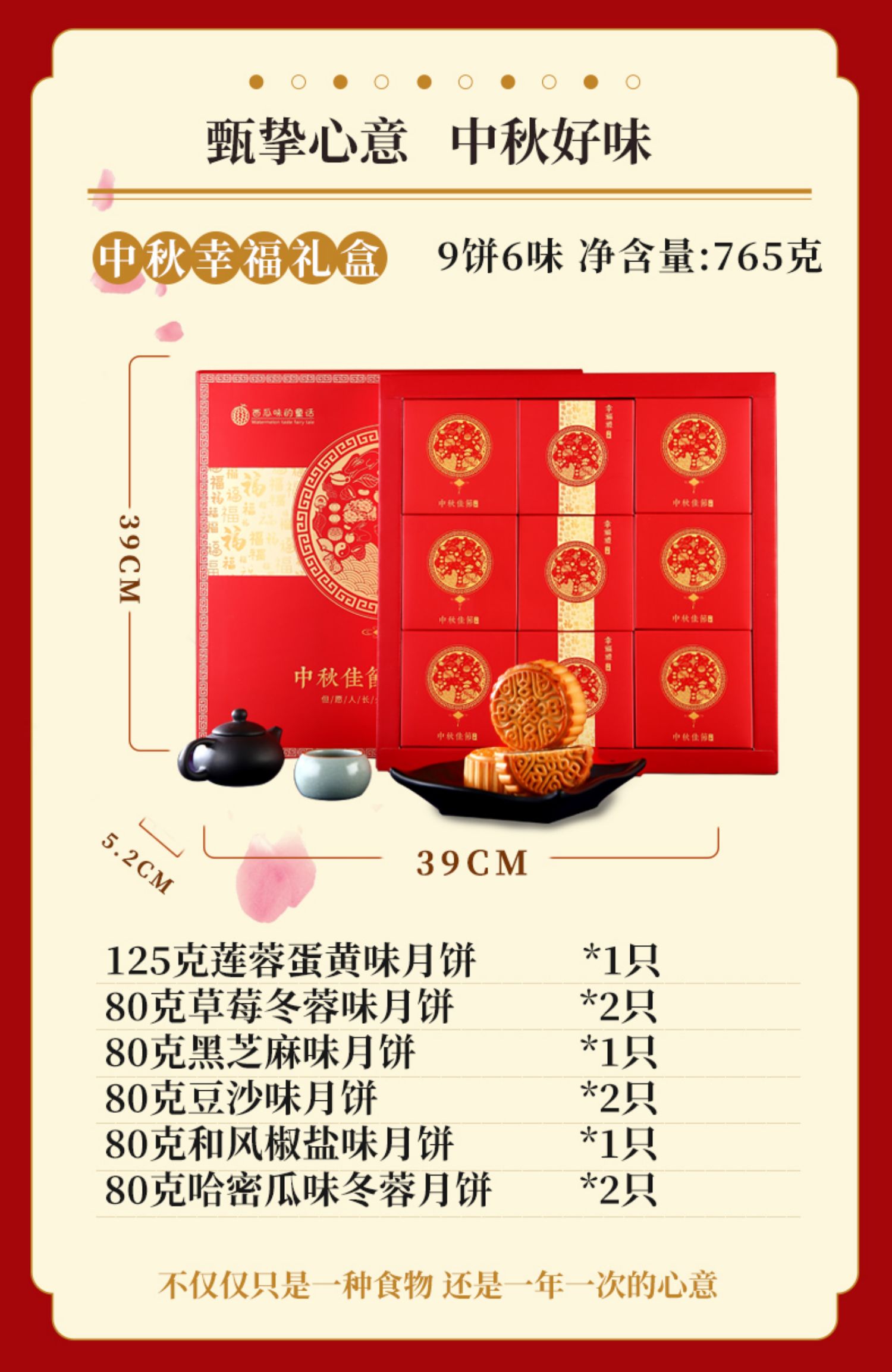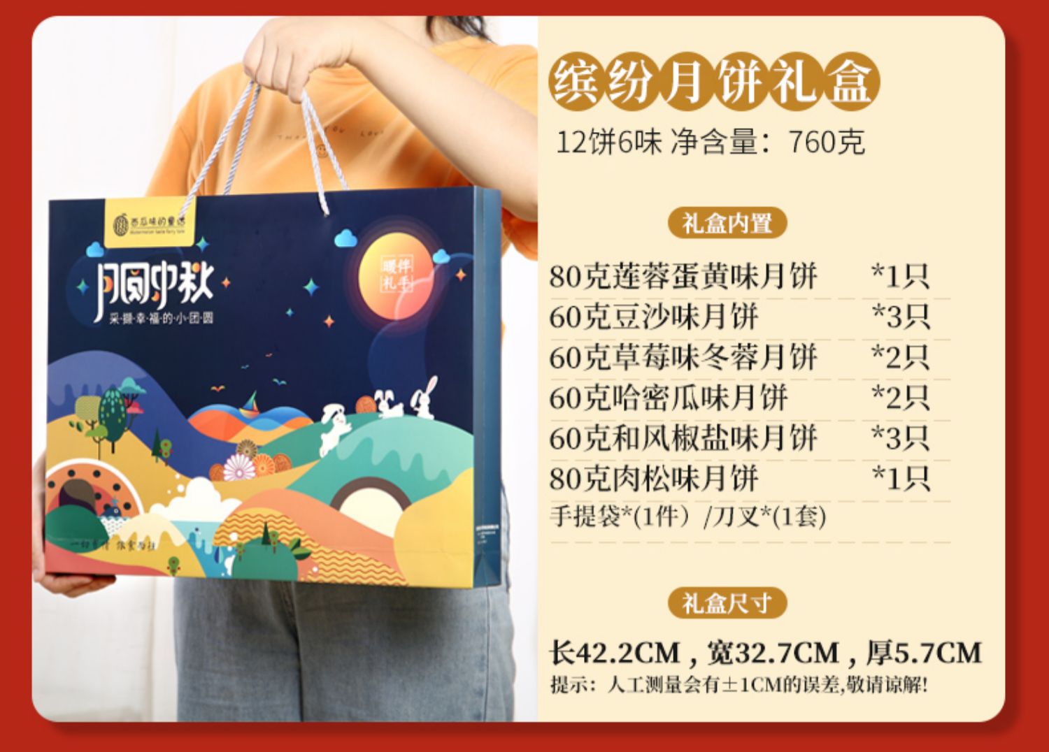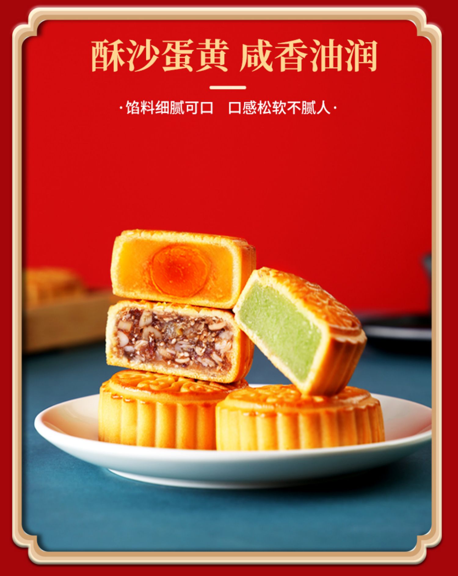 【6只装】五种口味可选,独立包装,黑芝麻、豆沙、莲蓉蛋黄月饼都有,口感细腻,皮薄馅多!都是近几天的生产日期,现做现卖,质量安全,回味无穷!