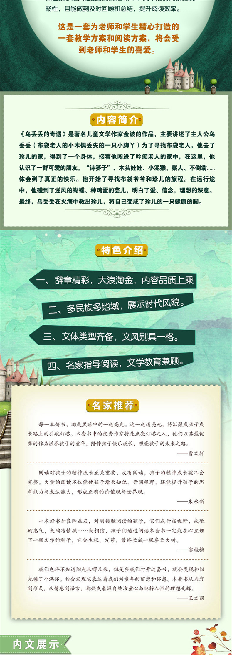 辞章精彩,大浪淘金,内容品质上乘,多民族多地域,展示时代风貌。文体类型齐备,文风别具一格。名家指导阅读,文学教育兼顾。
