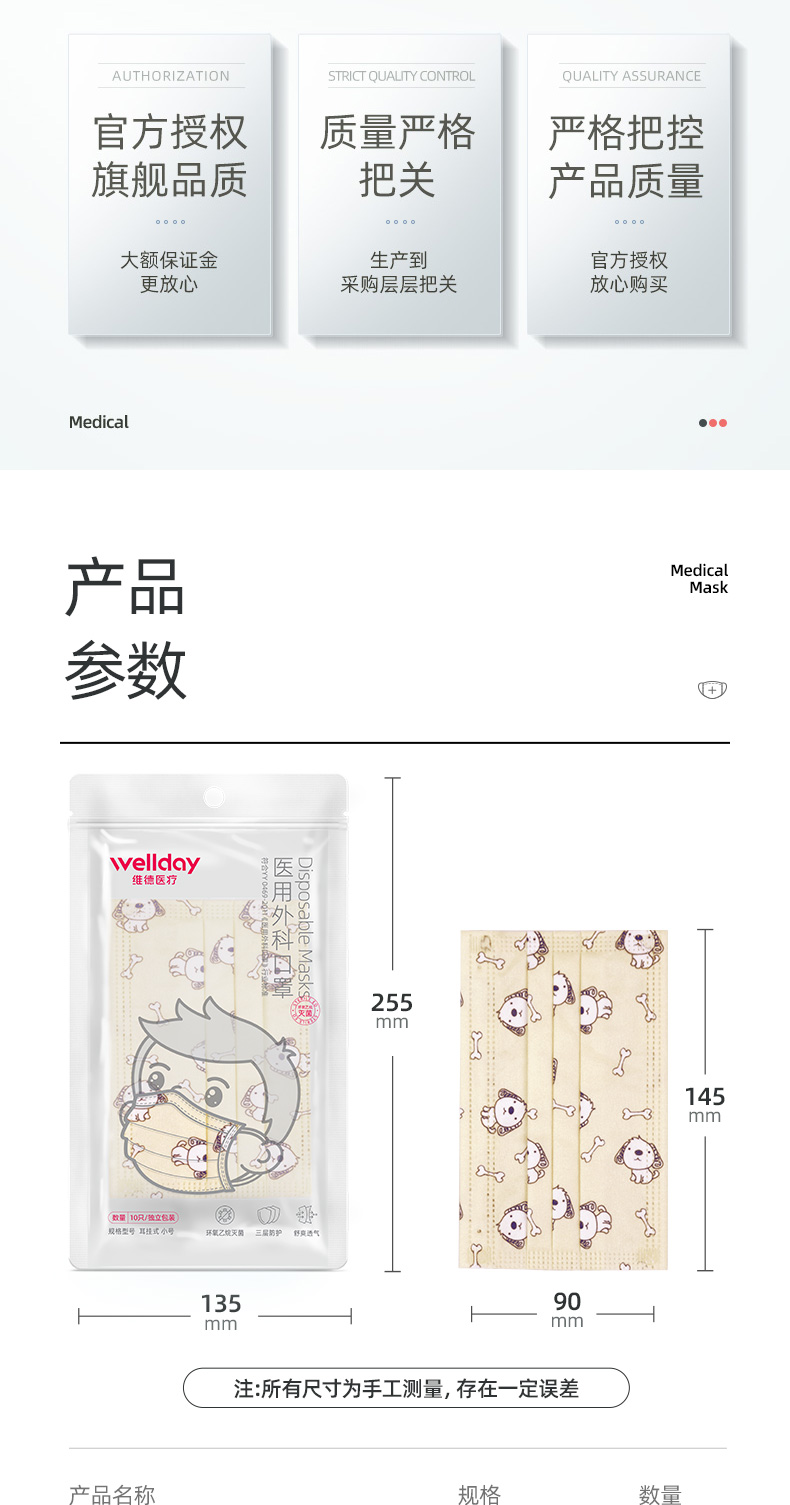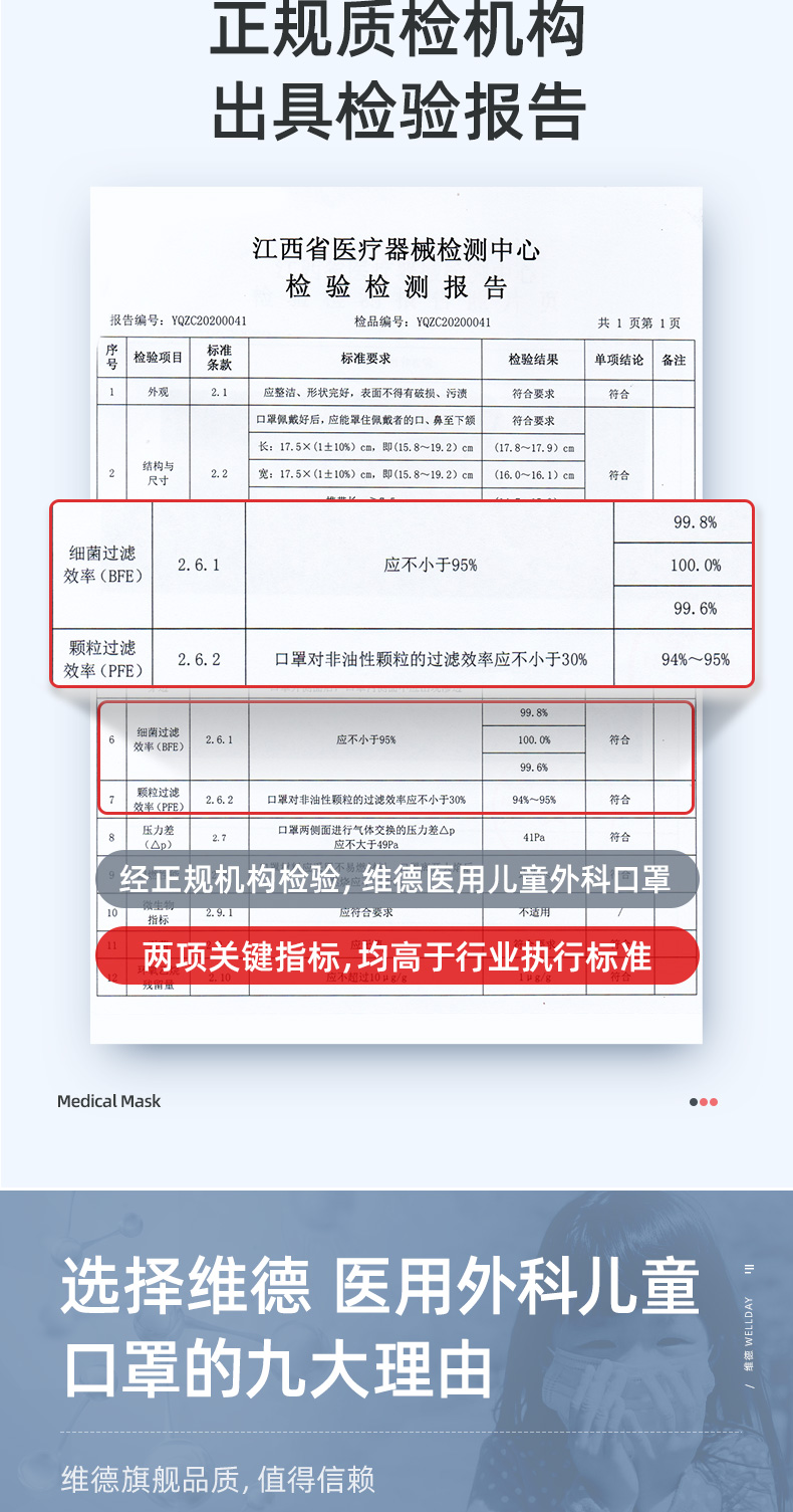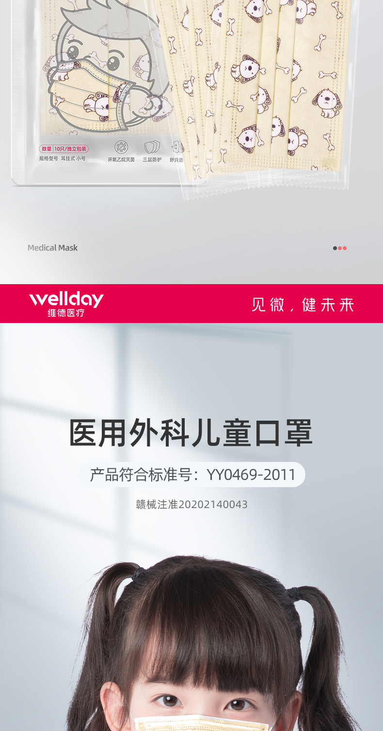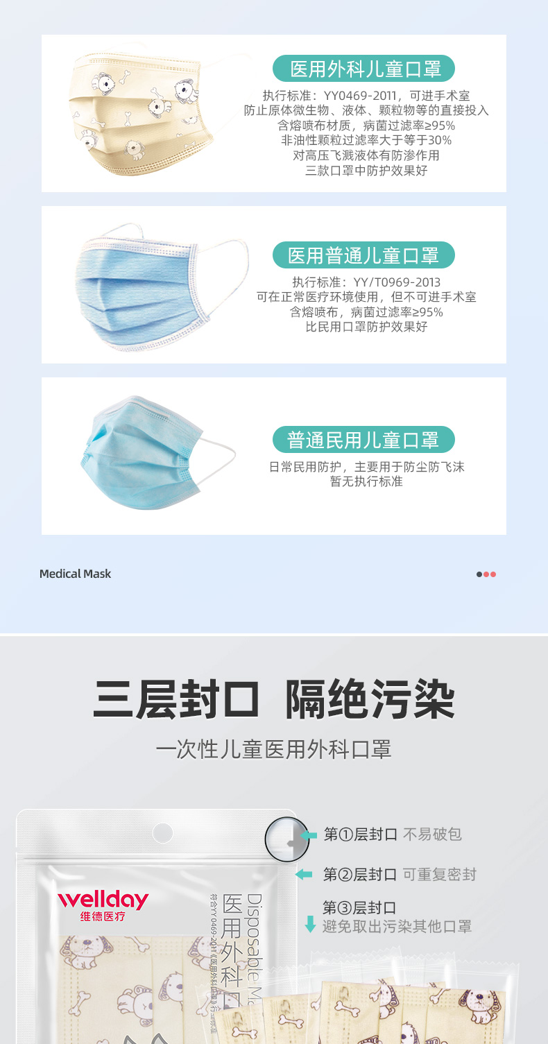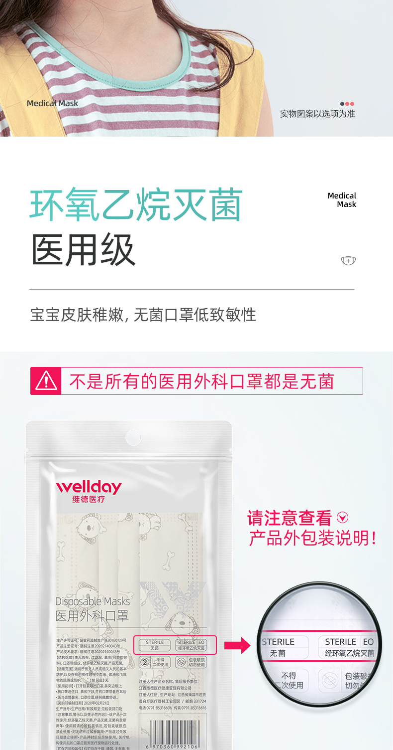 【凑单神器!满3件6折,叠加猫超券满140-10更优惠】儿童防护医用口罩,请认准维德医疗医用外科口罩!三层封口,有效隔绝,独立无菌包装,防护等级更高,宝宝更安全,妈妈更放心!