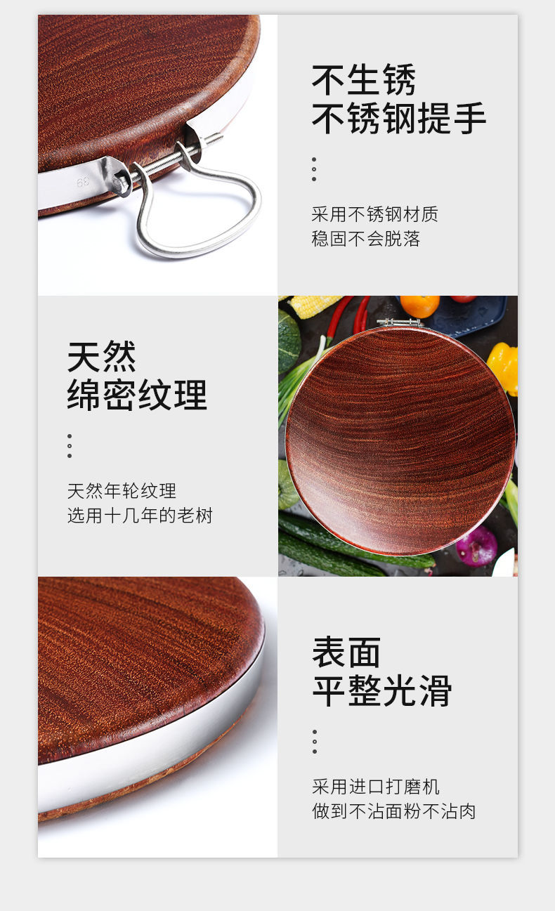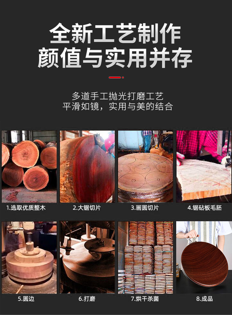 精选整木打磨,整芯无拼接,简洁易打理,防虫防霉防裂,双面使用防潮设计,结实耐用,天然健康更安全!厨房烹饪好帮手!