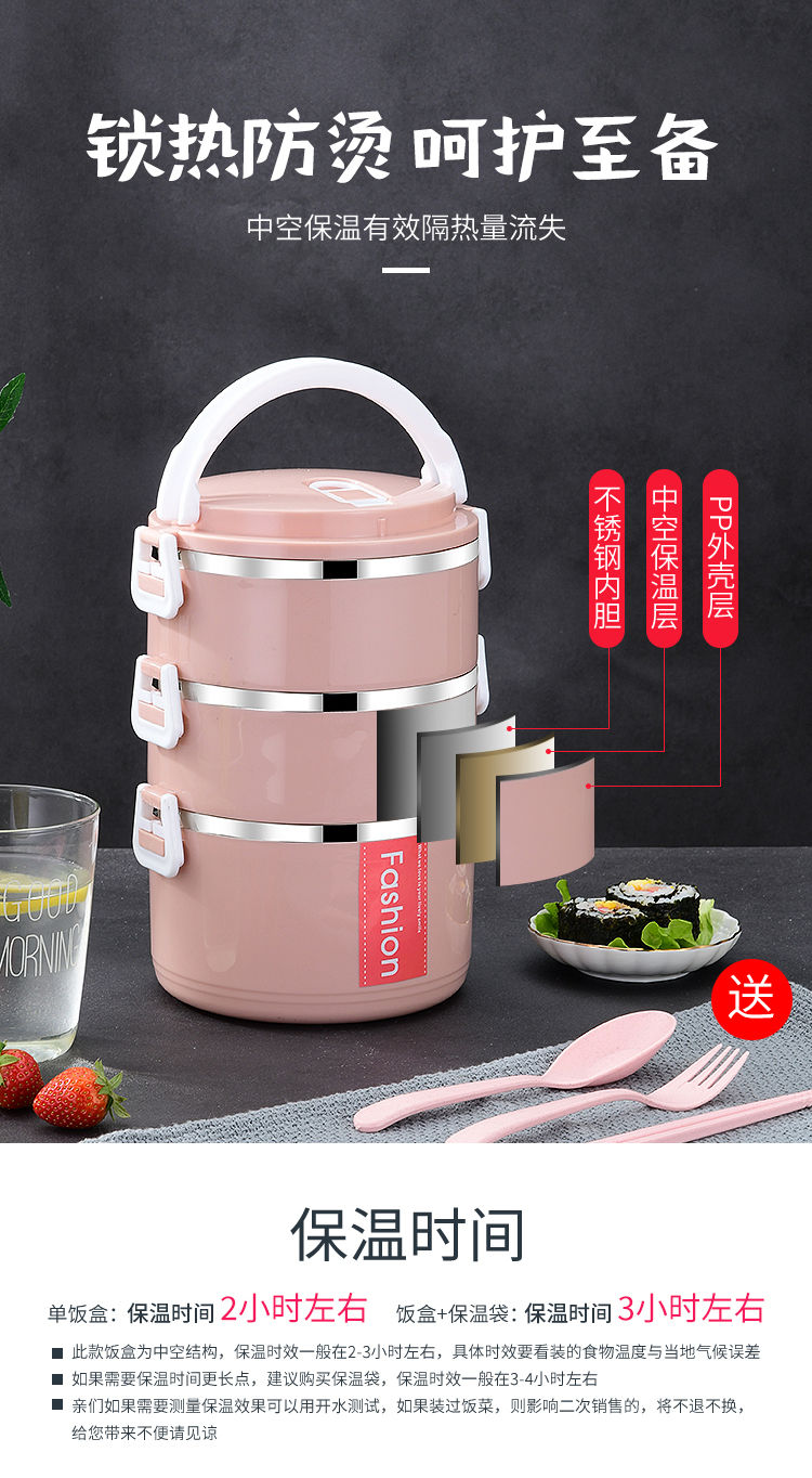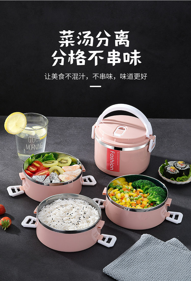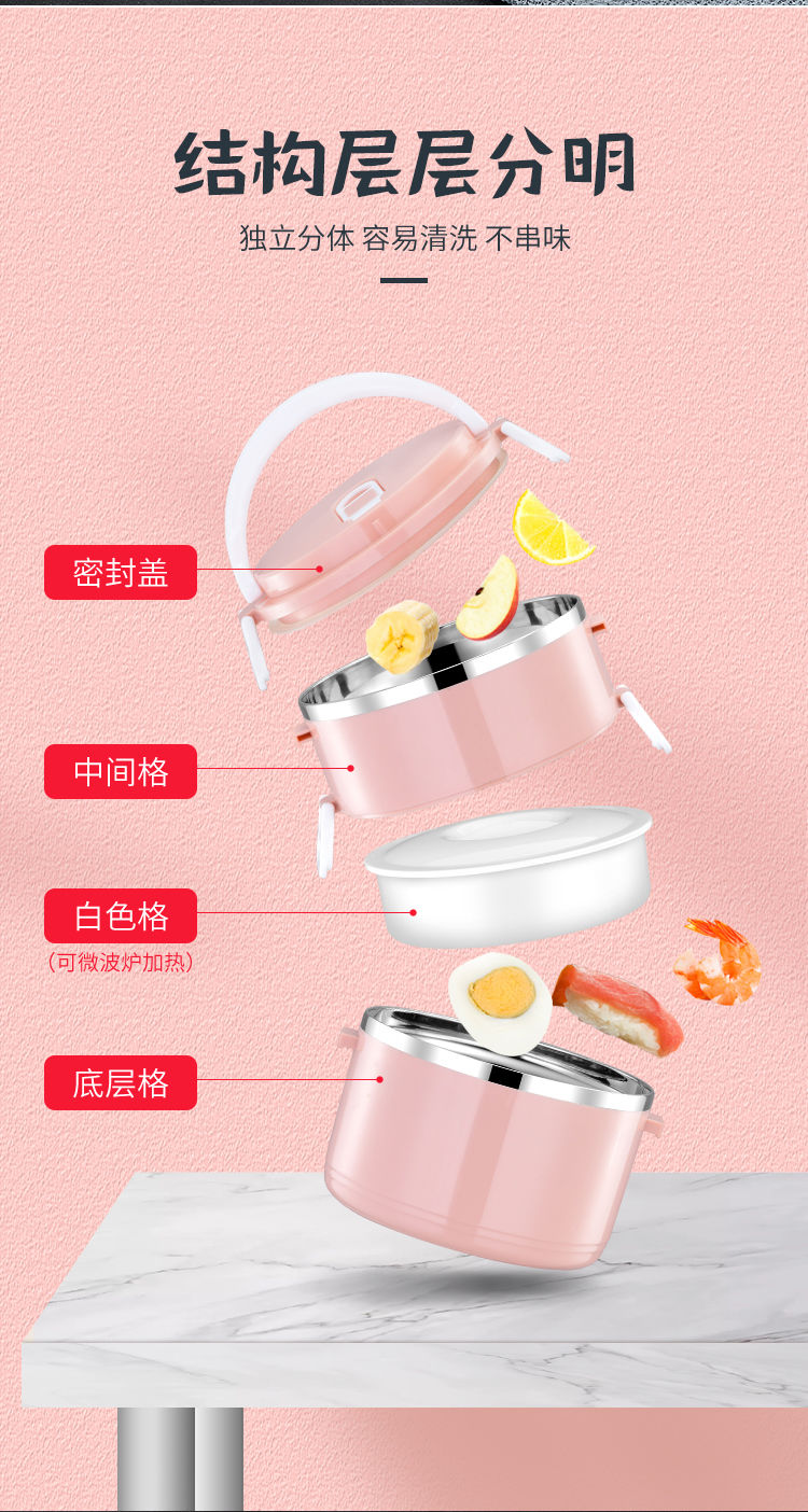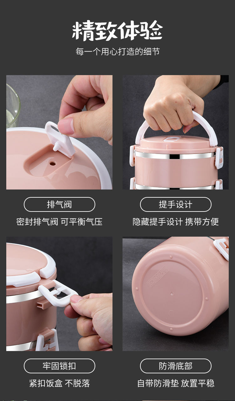 不锈钢食品级PP材质,高颜值,坚固加厚卡扣,防滴防漏,饭/菜/汤分隔密封保温,分层设计不串味;上班带饭神器,长效保温,吃饭就要热腾腾的,感受每一刻家的温暖~