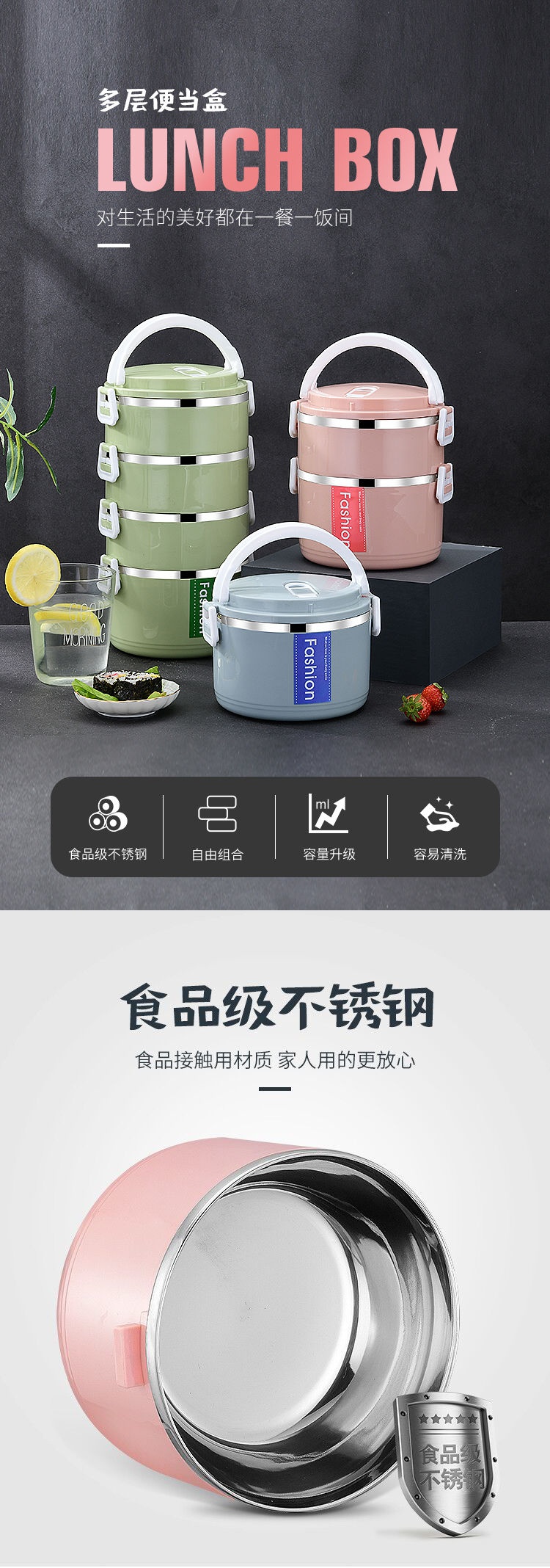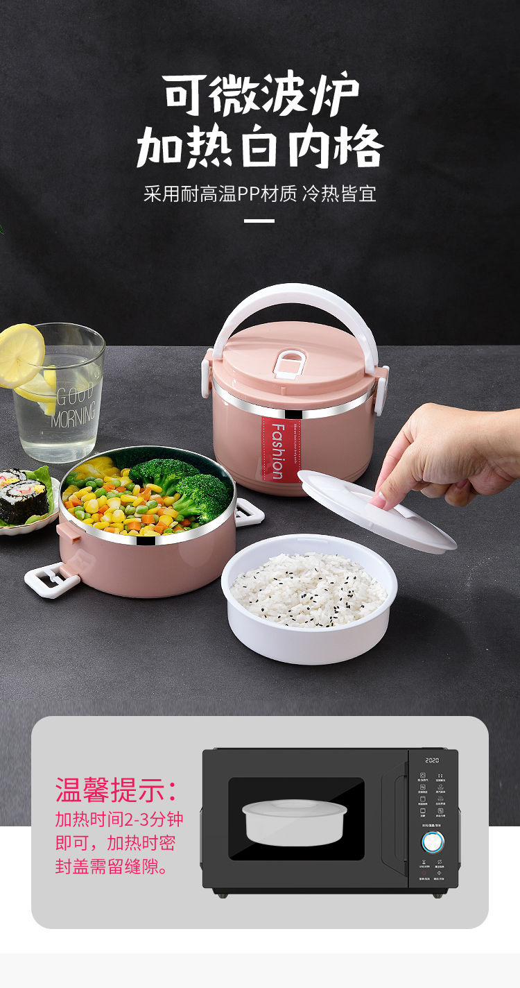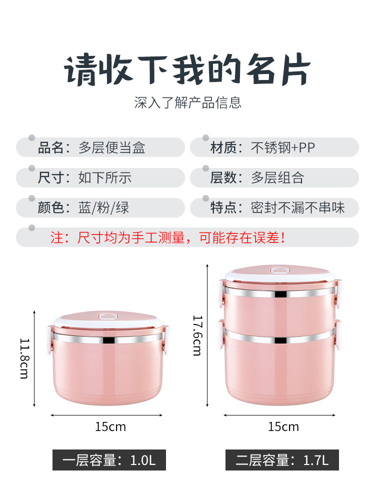 不锈钢食品级PP材质,高颜值,坚固加厚卡扣,防滴防漏,饭/菜/汤分隔密封保温,分层设计不串味;上班带饭神器,长效保温,吃饭就要热腾腾的,感受每一刻家的温暖~