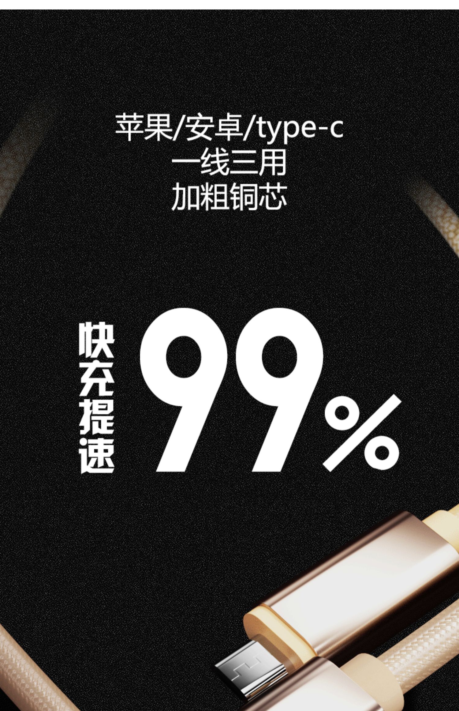 【一拖三同时使用6.9元】线长1米,苹果、华为、oppo、vivo,小米等都能轻松搞定!纯铜线芯,安全快充,提速99,稳定电流不伤机,一线搞定多种机型,游戏利器!