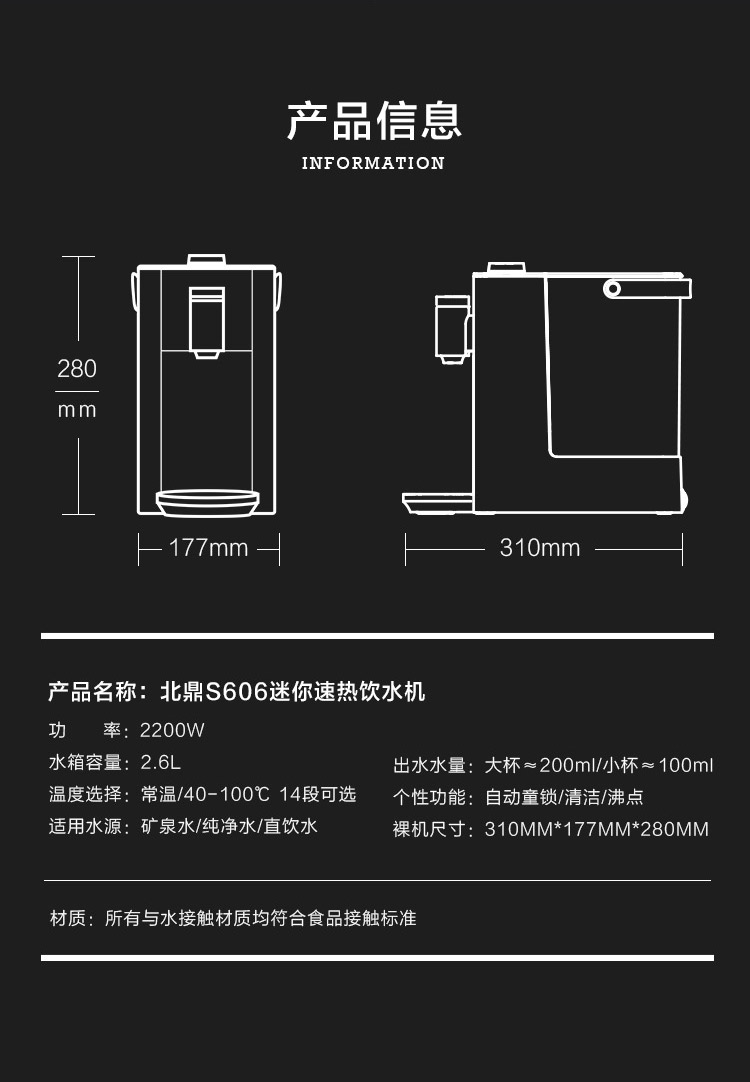 【北鼎】S606即热式桌面饮水机,可即插即饮,饮水一步到位。可高级功能可视化,升级旋钮工艺,升级14段水温。随手饮,鲜活饮,速出水,易操作。实际到手1298元!速抢!【赠运费险】