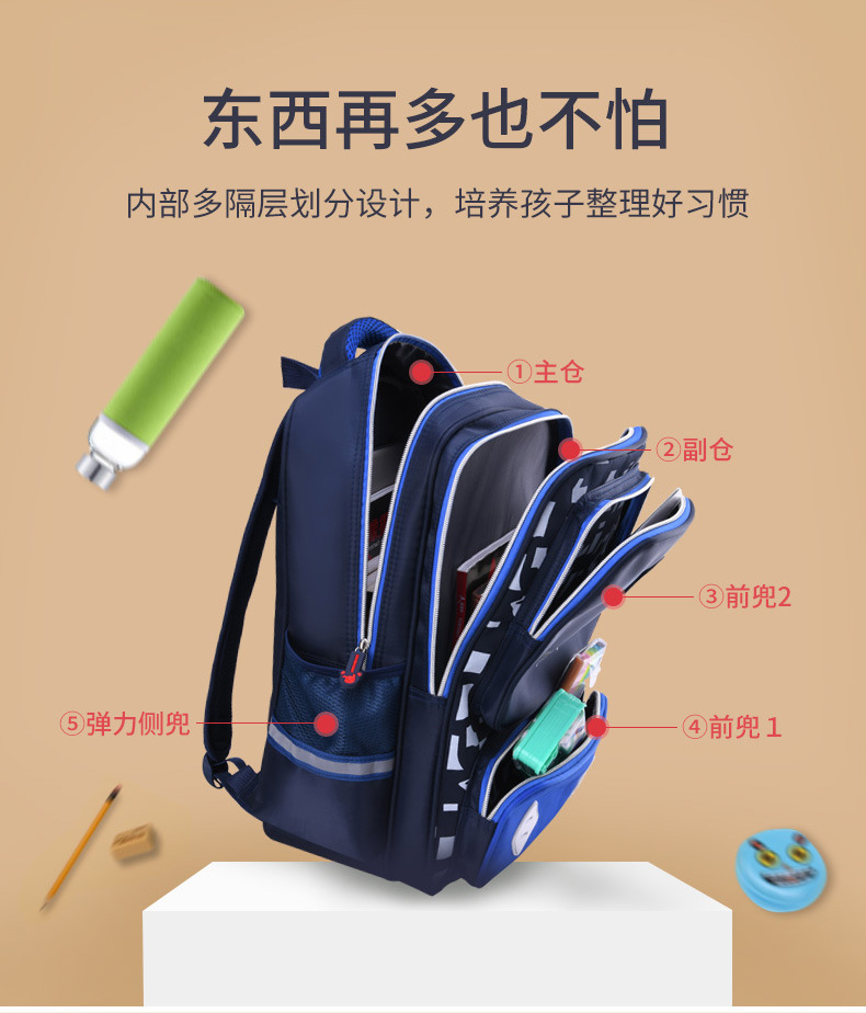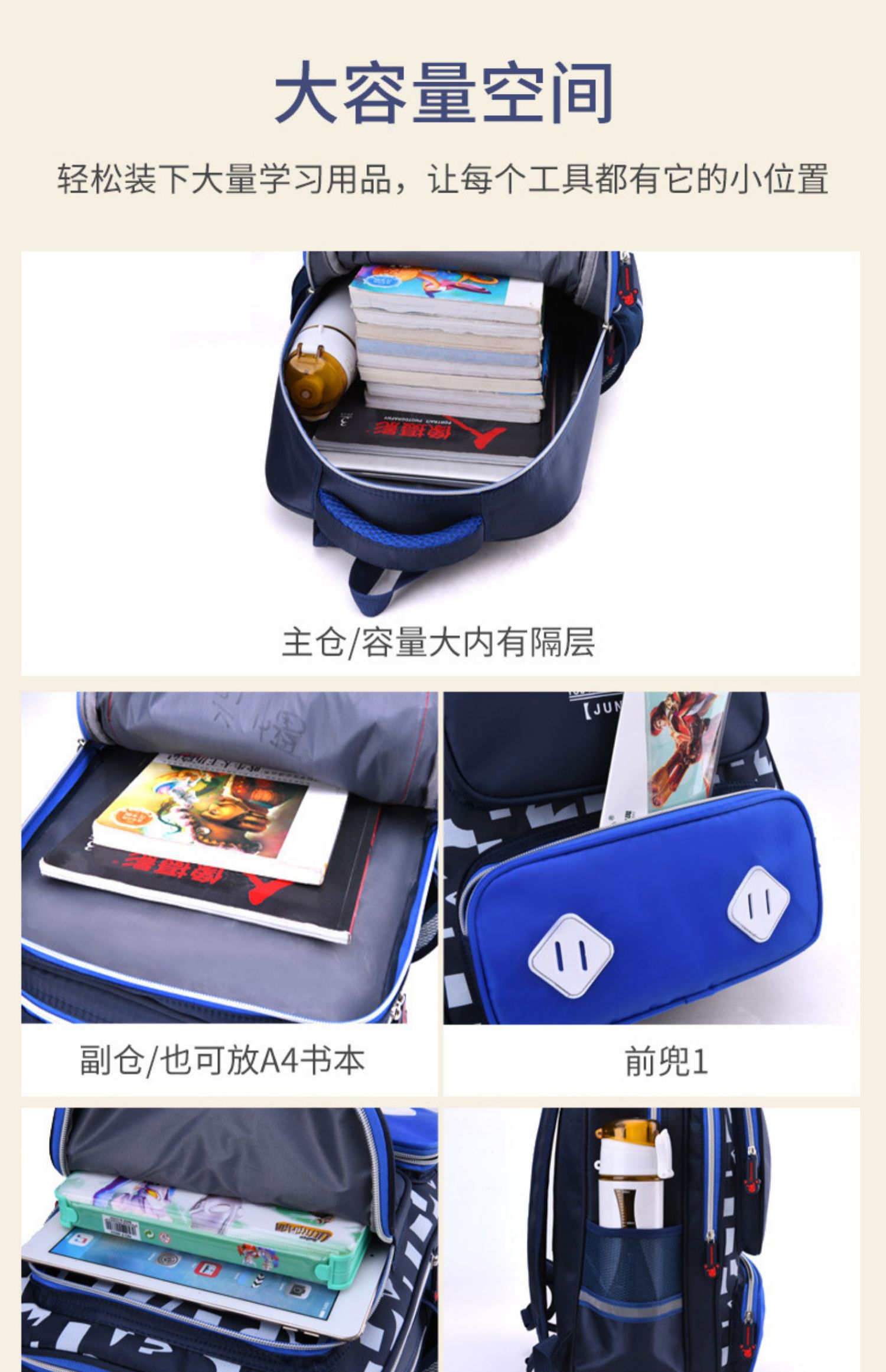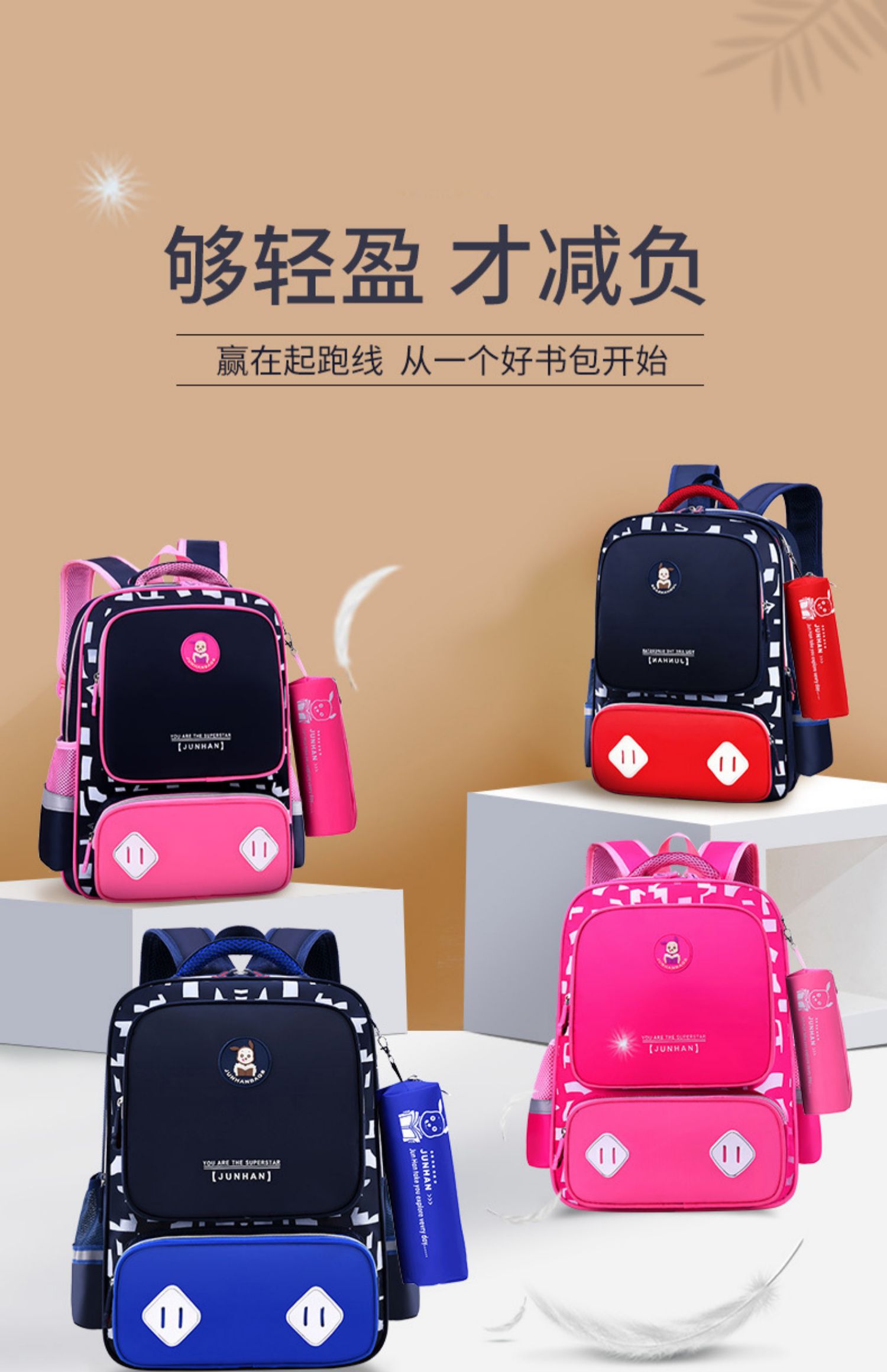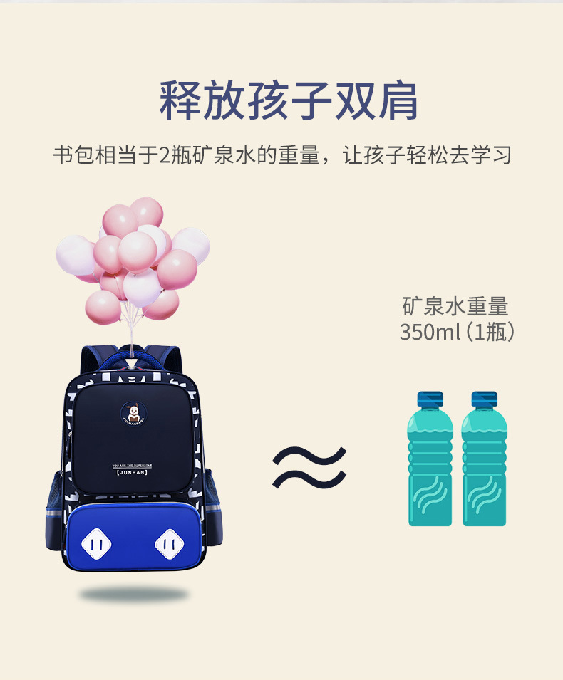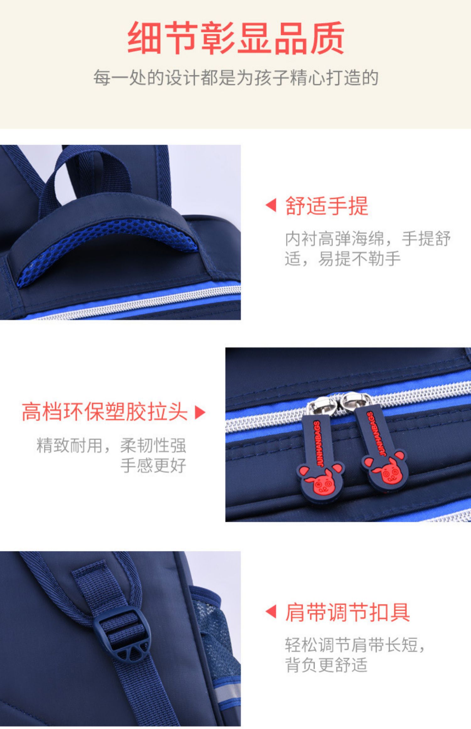 卡通萌趣5色可选,加厚背垫透气舒适,加宽提手不勒手,U型开口大容量收纳,防泼水反光条安全出行,赶紧下单吧【送运费险】