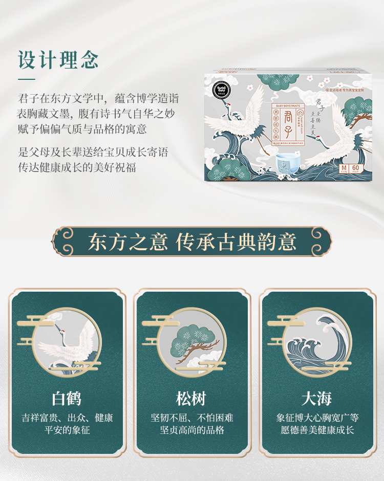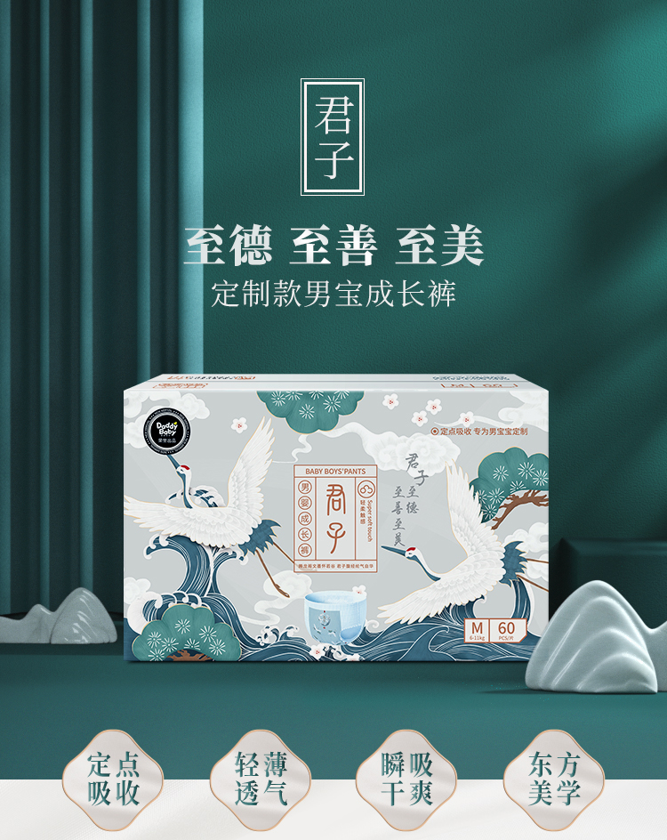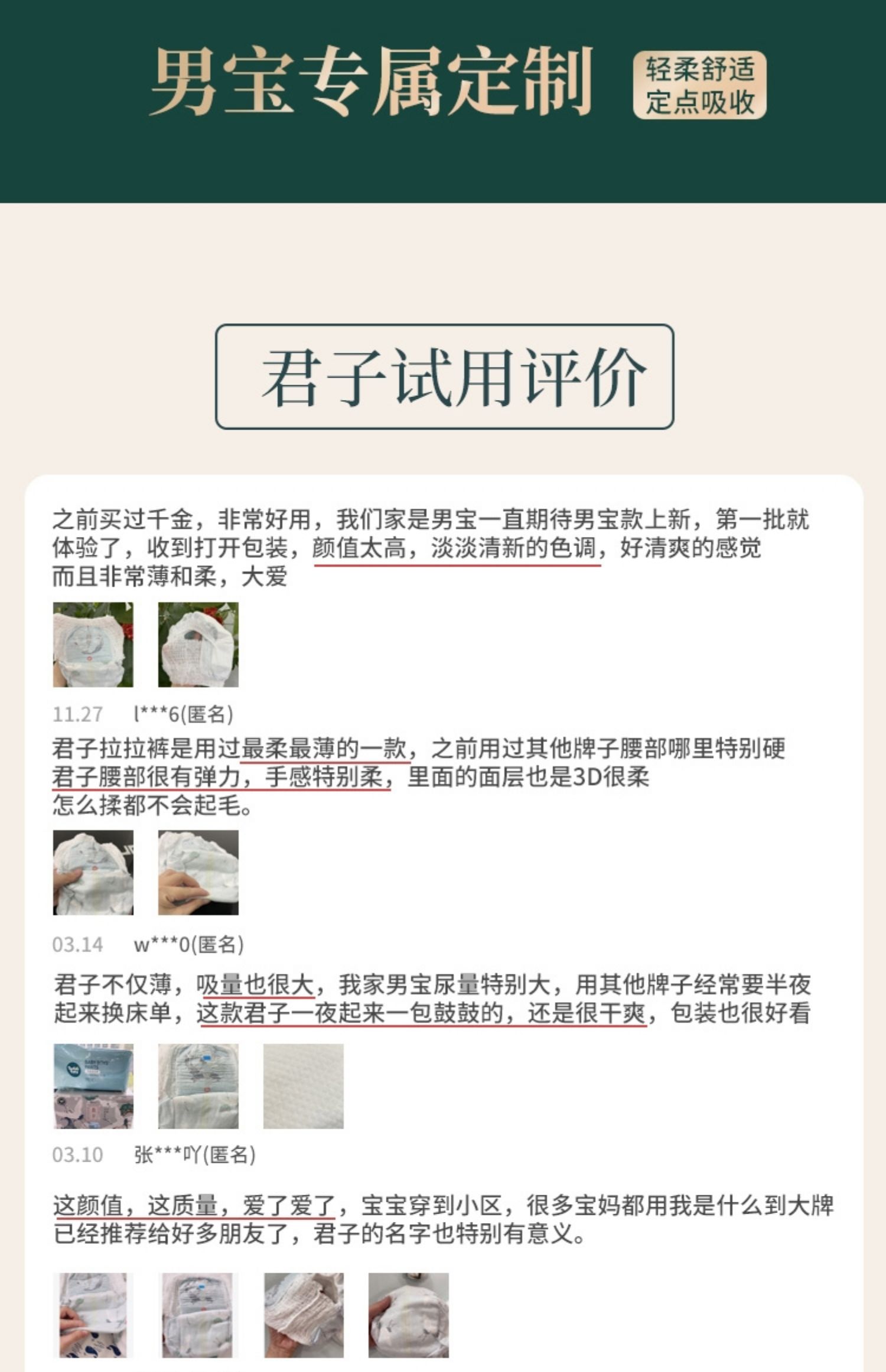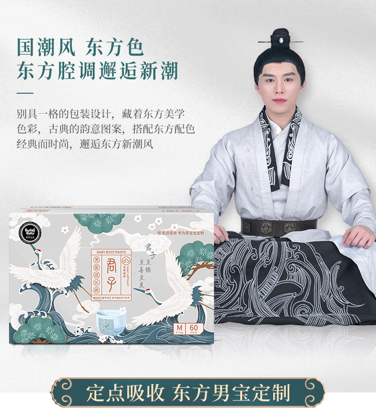 【拍3件】到手4箱共208片,【下单就送品牌口罩10支+护臀膏一只】君子专属中国风男宝拉拉裤,买3送1,4箱到手81/箱,买多优惠多,东方之意,传承古典韵意,定点吸收,东方男宝定制【红屁屁包退】