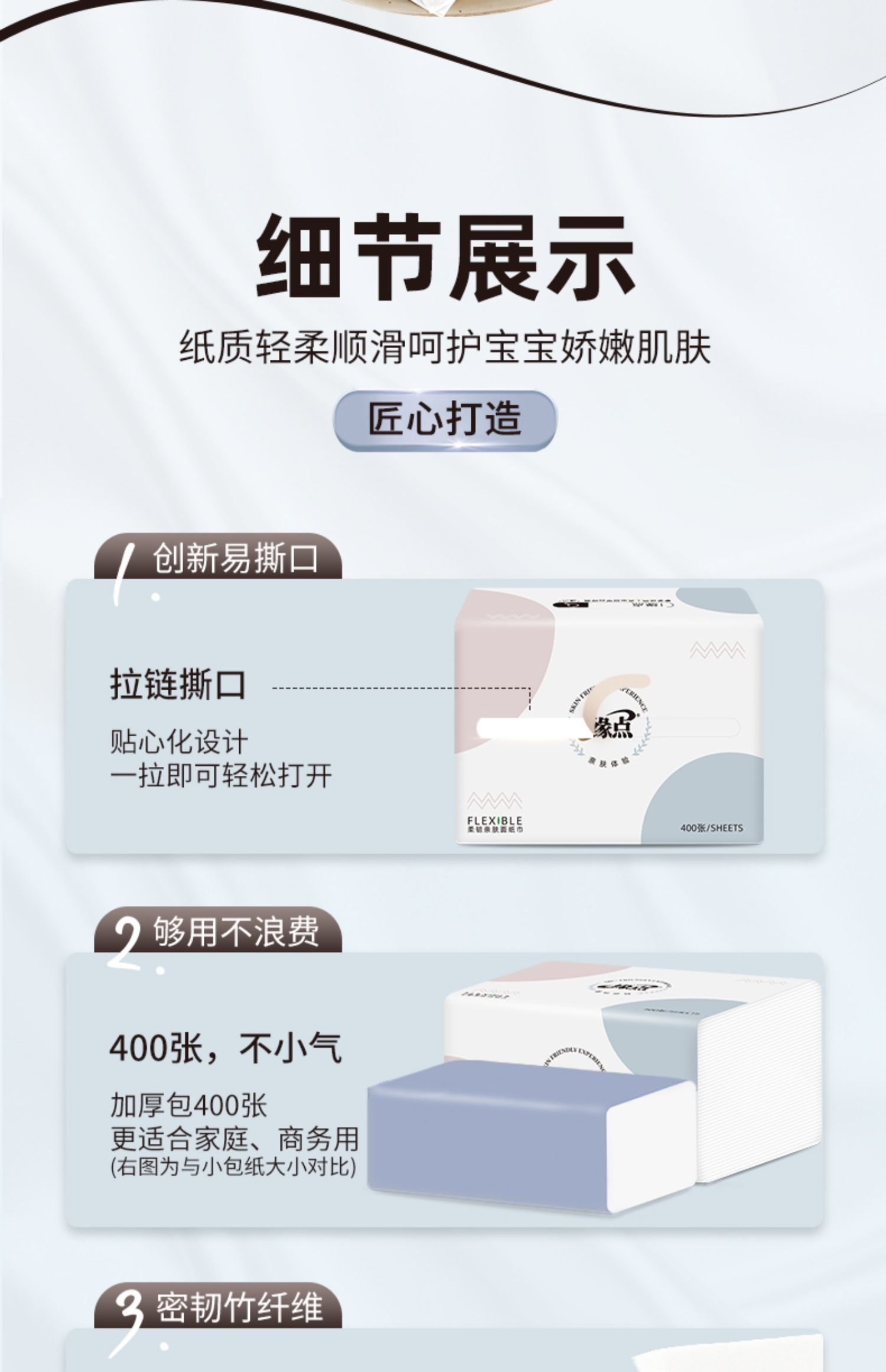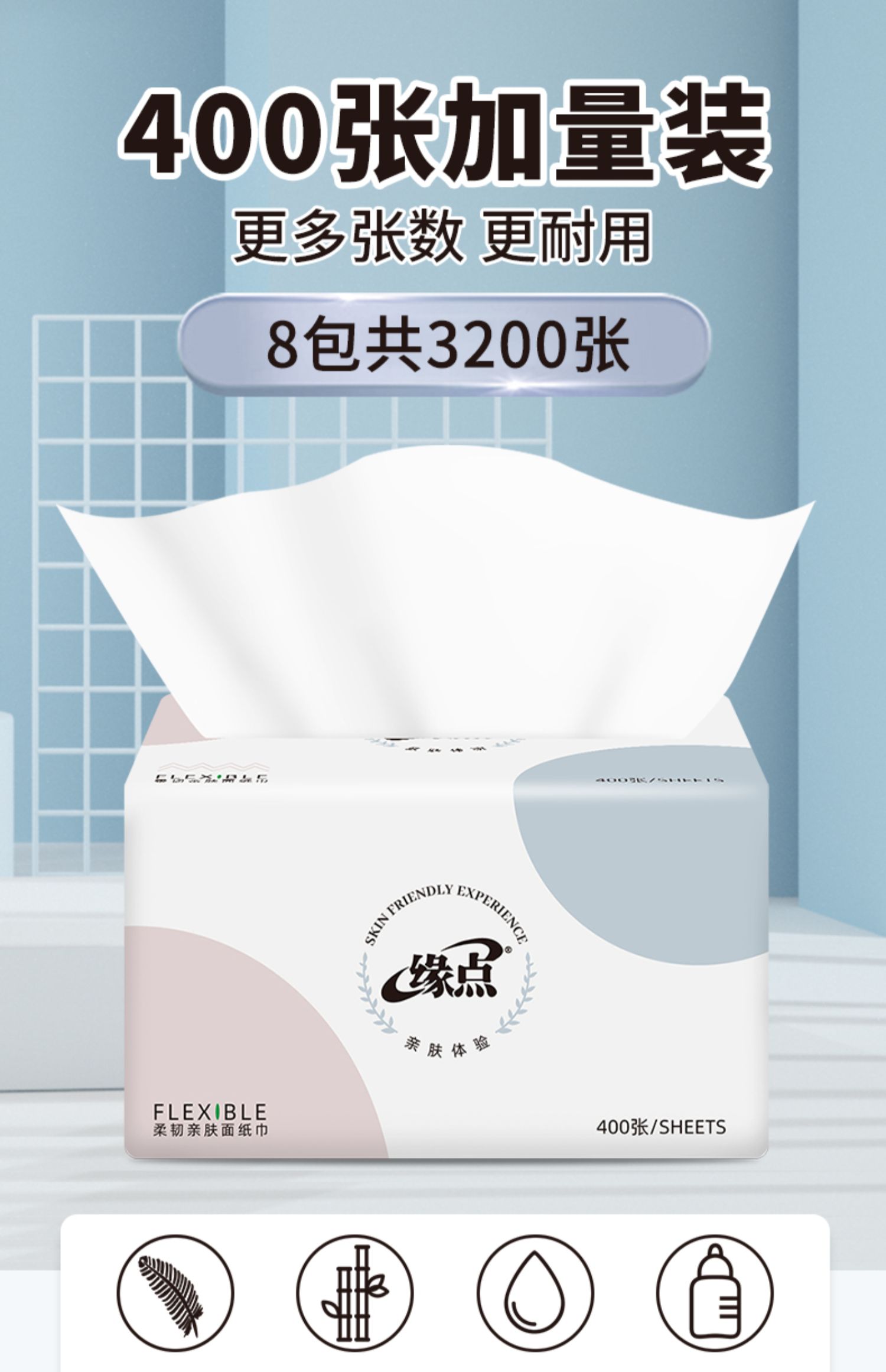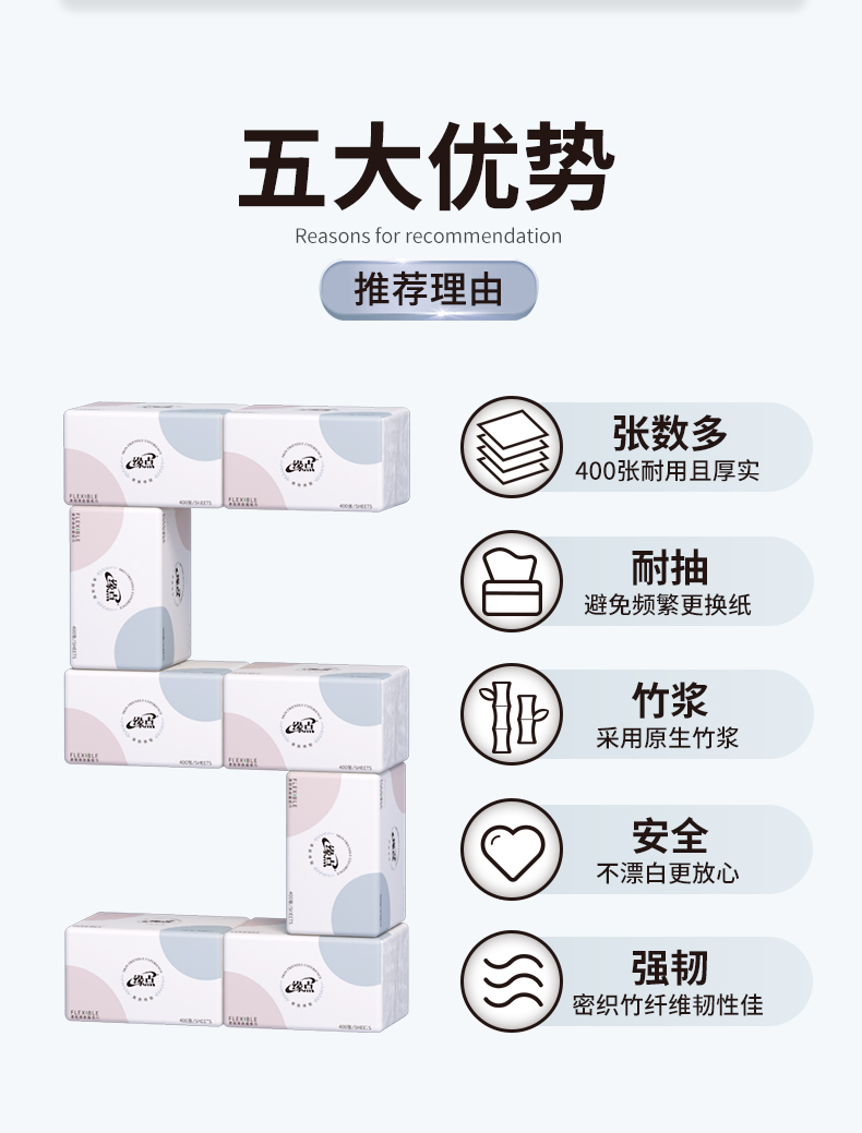 【竹印良品家居旗舰店】400张加量装,更多张数更耐用,原生木浆制作,层层工艺把关,纸质轻柔顺滑,湿水不易破,呵护宝宝娇嫩肌肤!