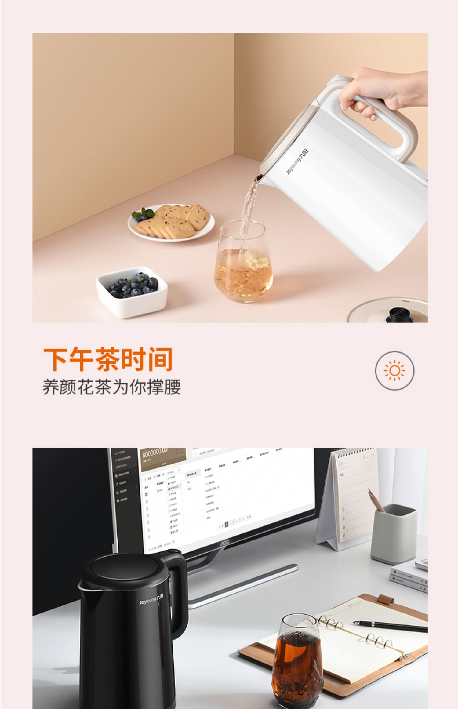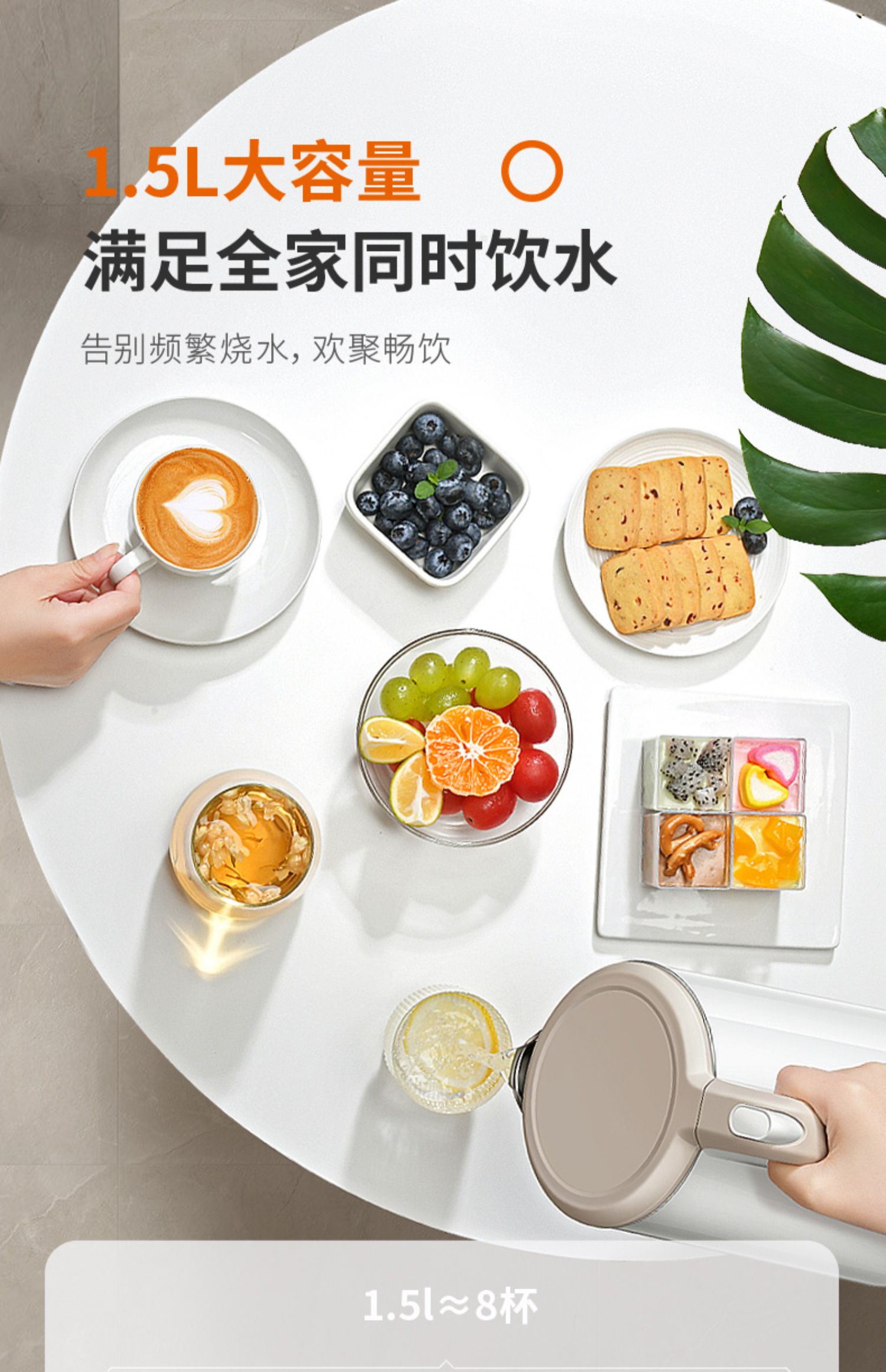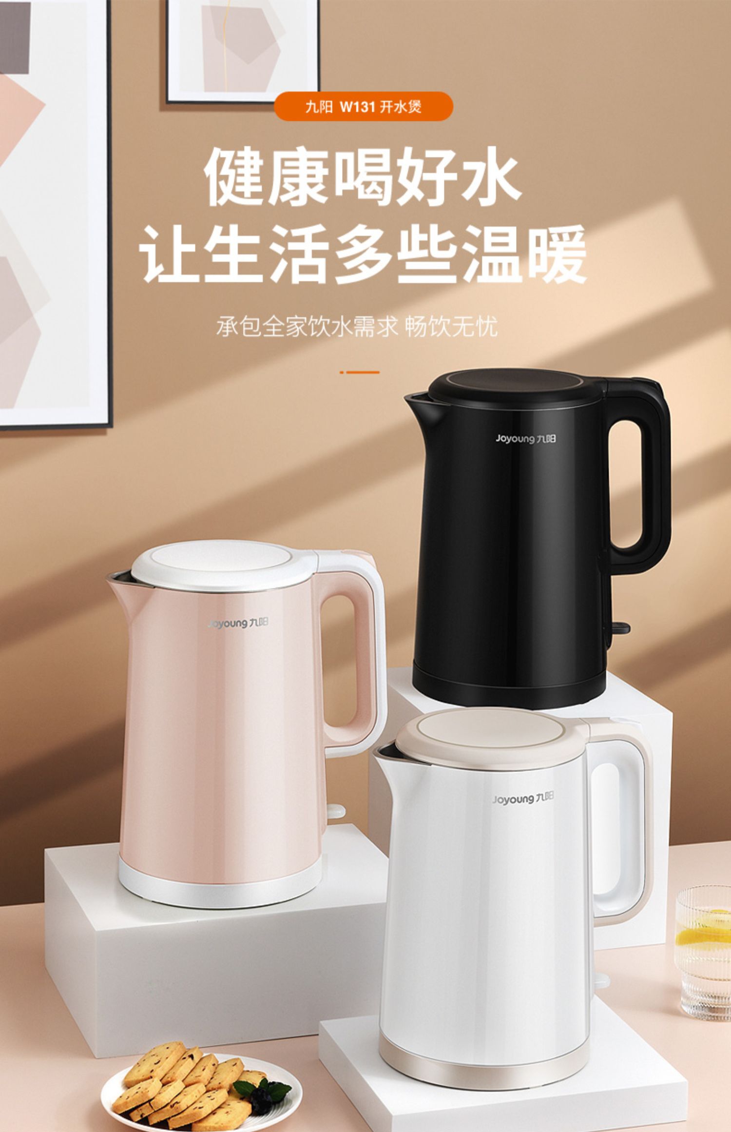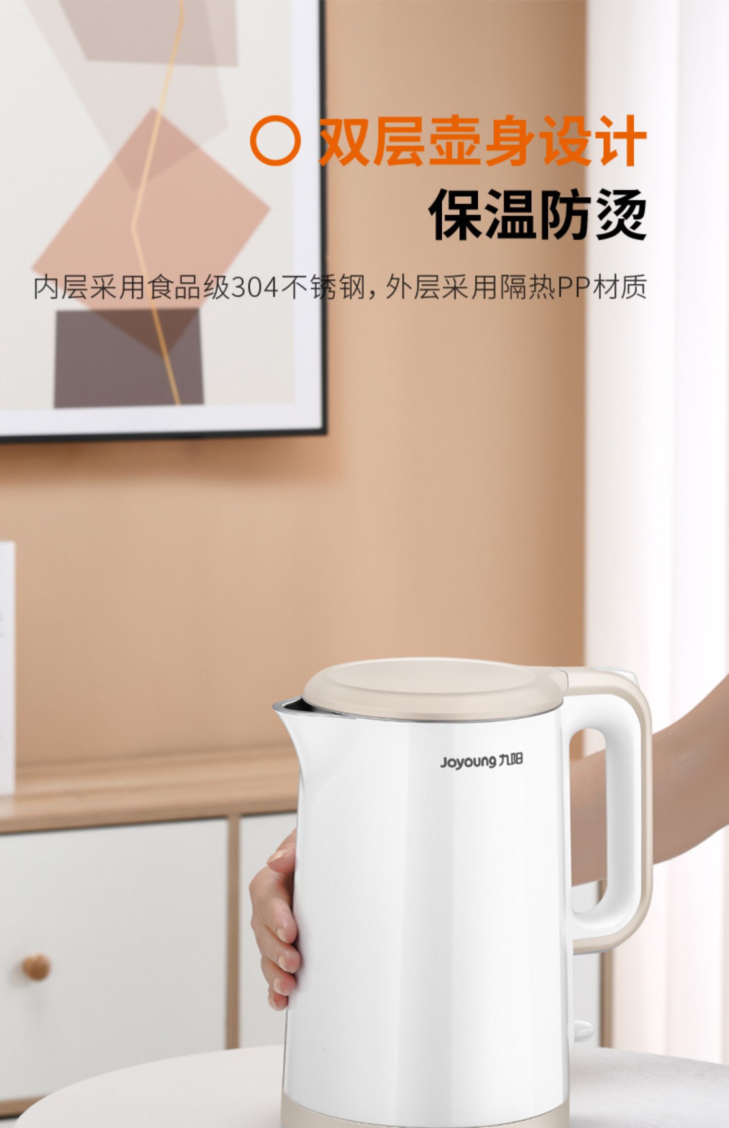【九阳大牌】1.5L大容量电热水壶,304不锈钢内胆,快速沸腾,双层防烫,自动断电保温,70°开盖,防止烫伤,老人孩子取放无忧;居家‘新宠’优雅生活从一杯水开始!