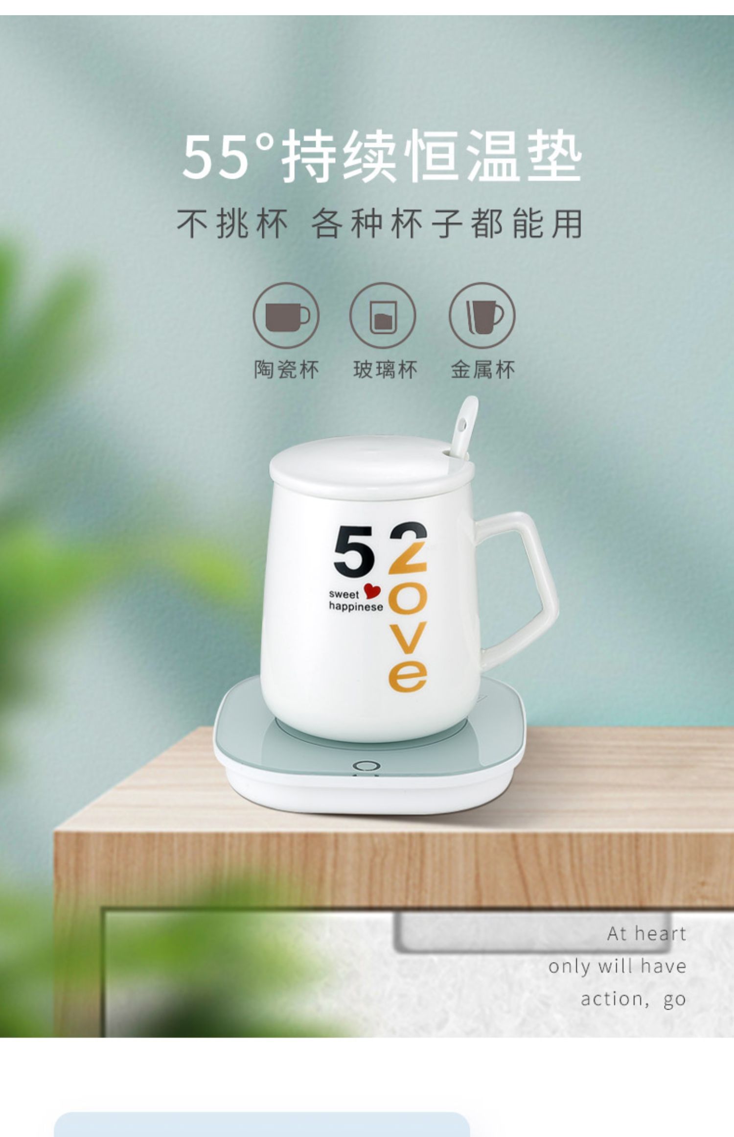 【拍立减5元】55度持续恒温垫,不挑杯各种杯子都能用,小巧便携,居家旅行少不了,重力开关设计,底部受重自动开启,节能环保,办公室贴身呵护,早餐来一杯温茶,元气满满~