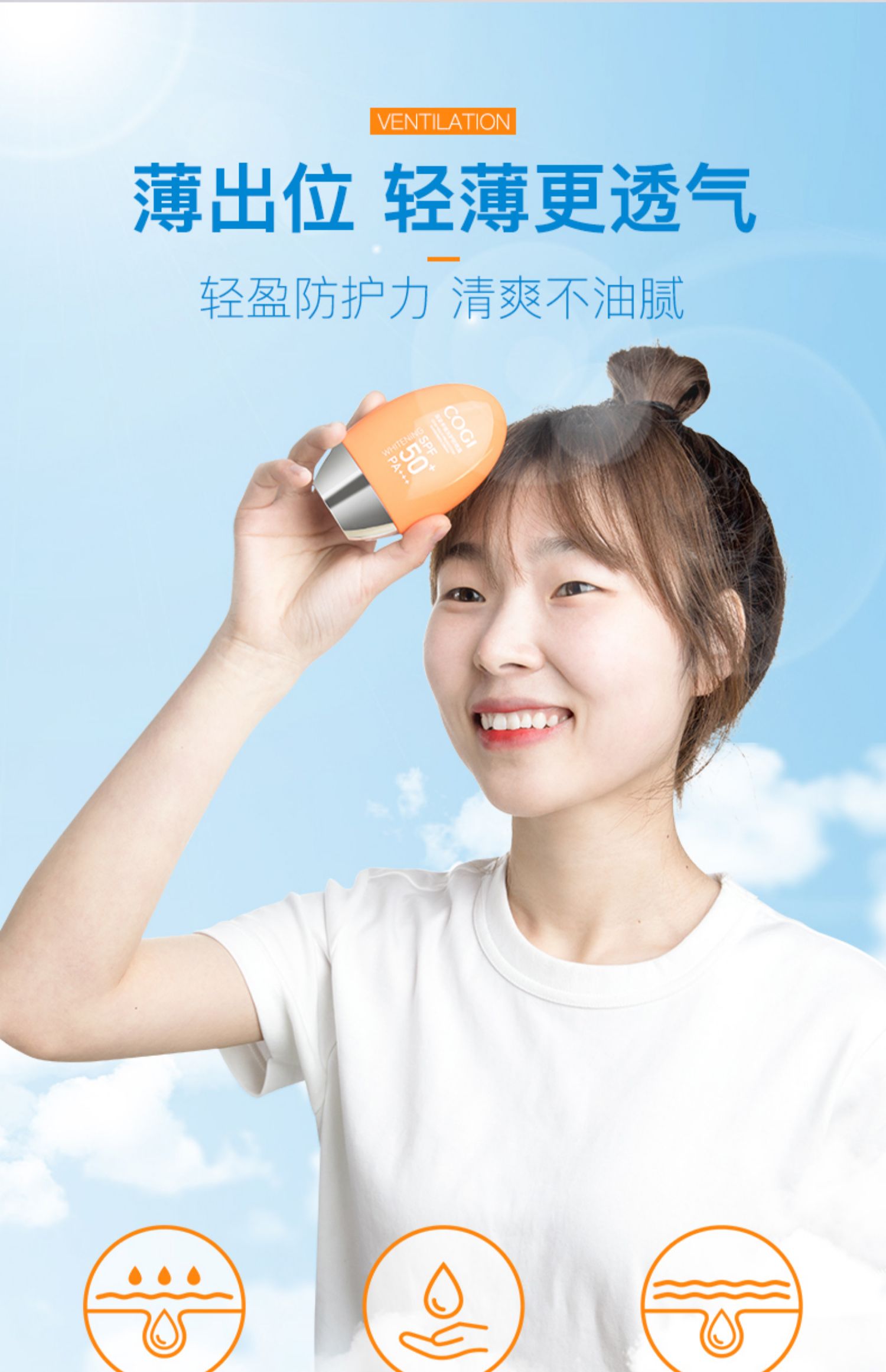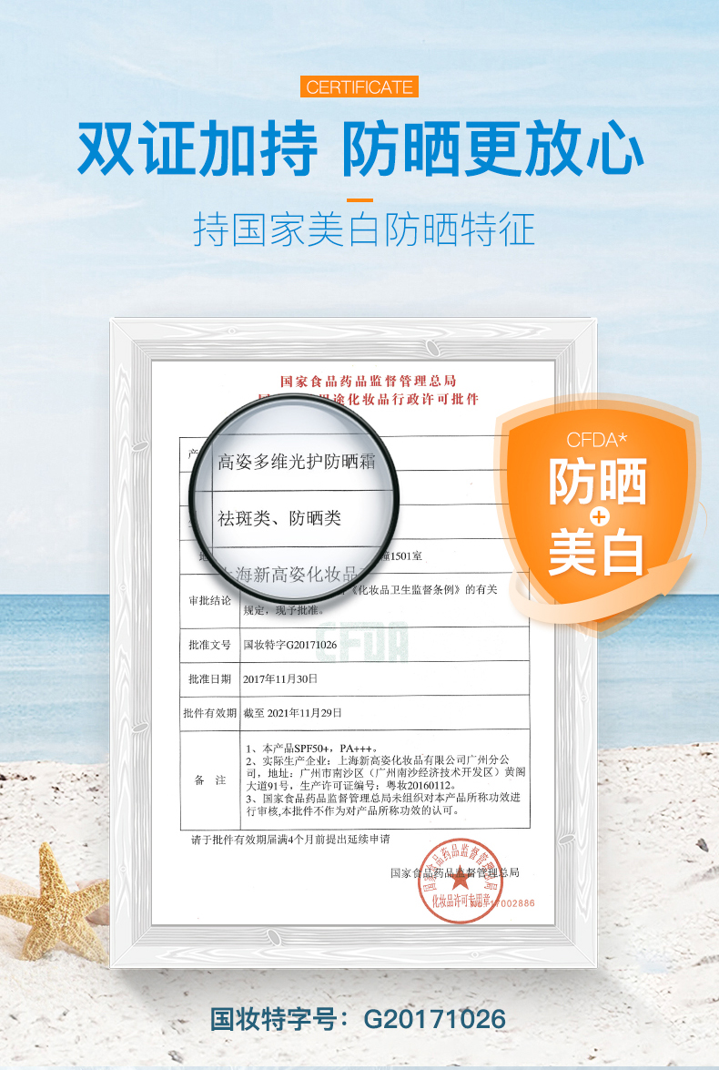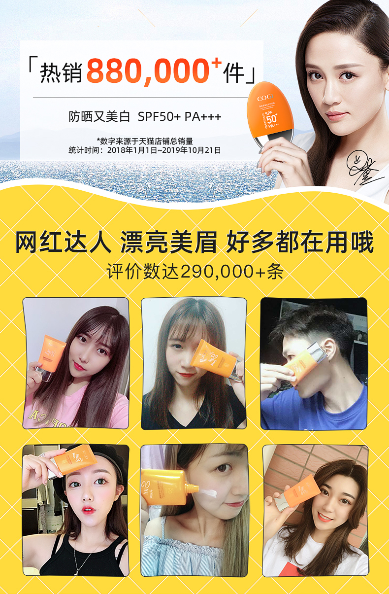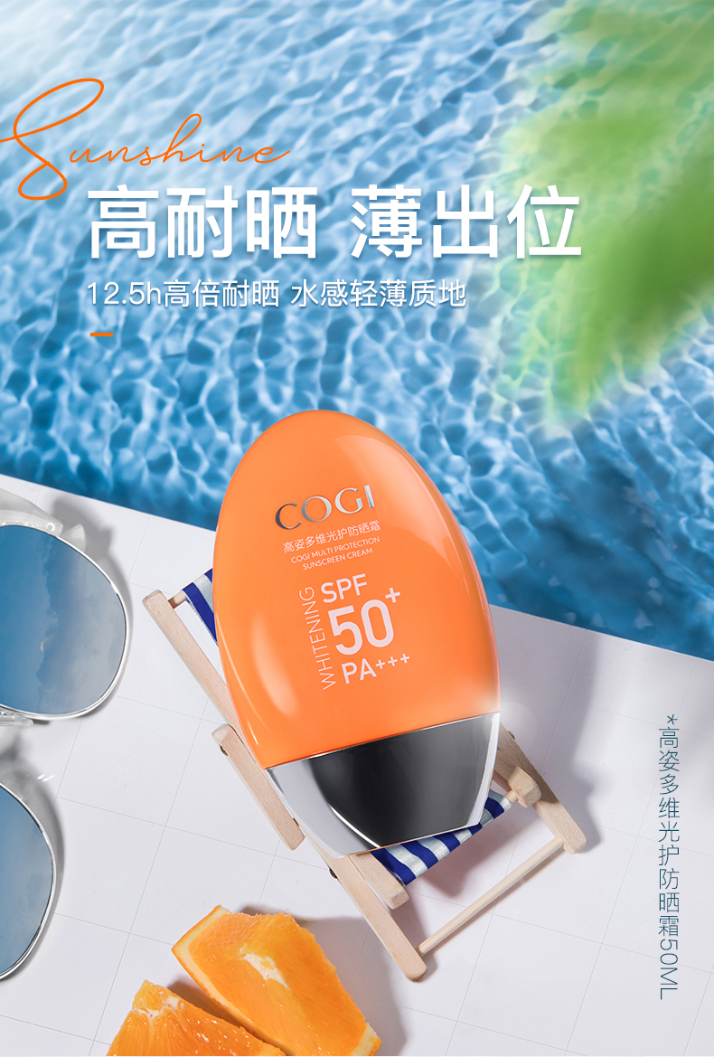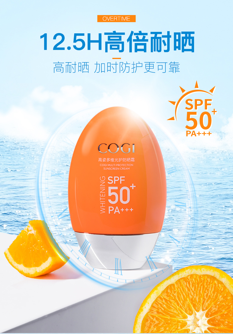 美白防晒遮瑕防水防汗多效合一,高姿多维倍护spf50+,拍40g享80g,买一份用2个月。