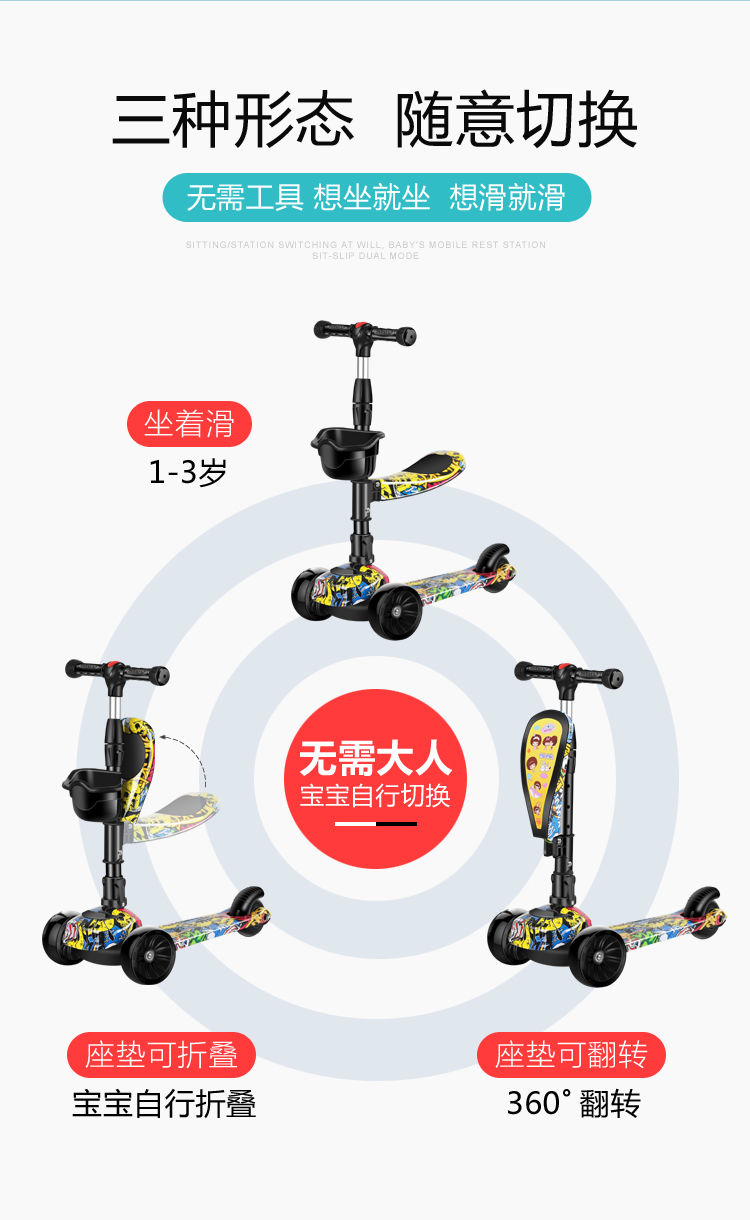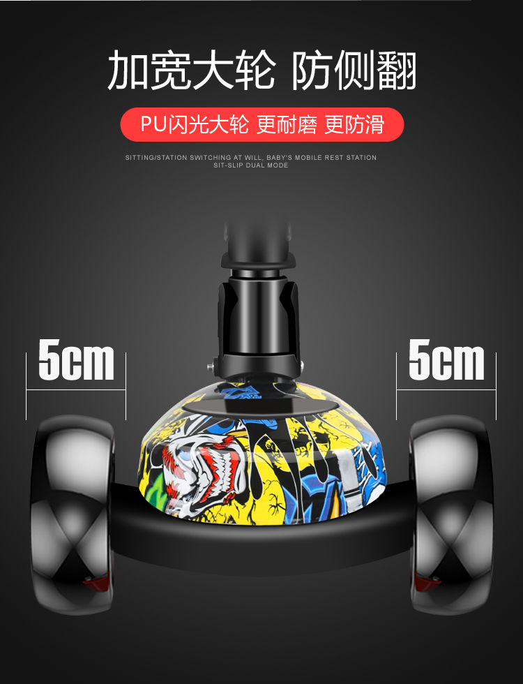 稳重安全!宽轮不侧翻,酷炫磁闪轮,无需电池,更持久!