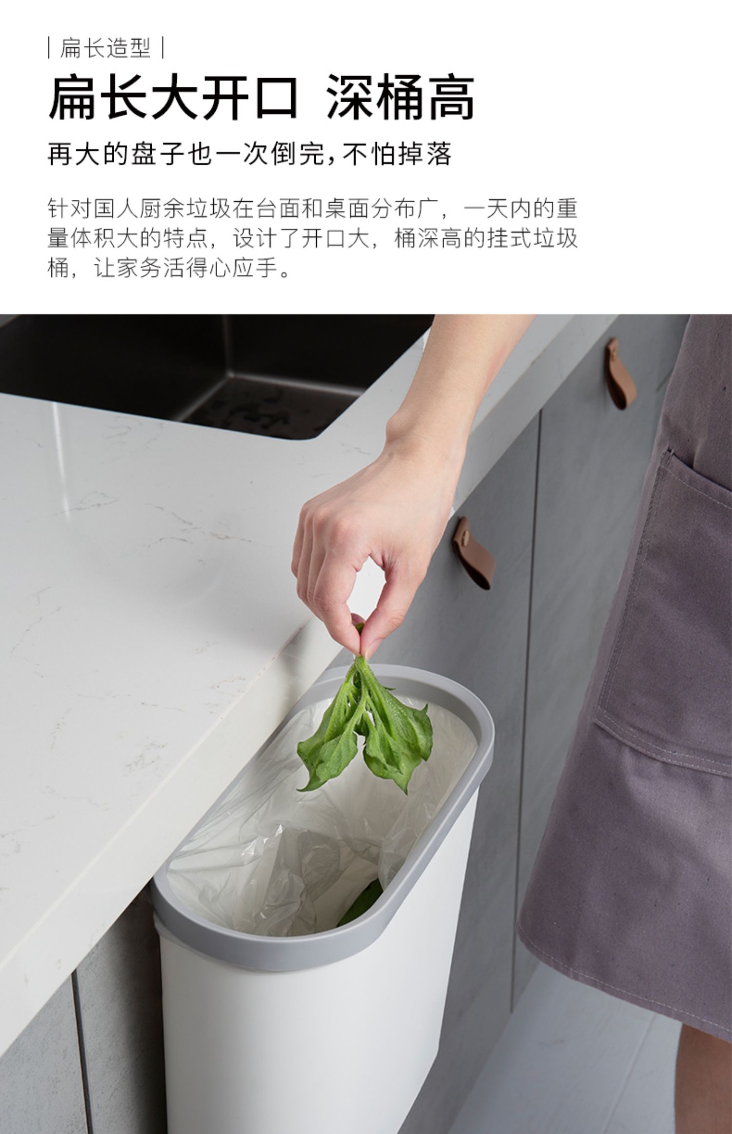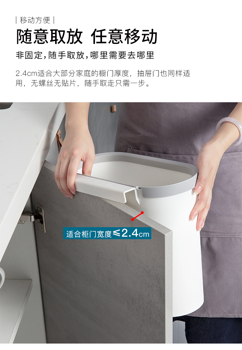 还在厨房弯腰扔垃圾么?我帮你解决!悬空壁挂,免打孔设计,让你不再为垃圾而折腰,不占空间,使用方便,让家务活做的得心应手,多场景可用,厨房爱车随处可放,享受干净整洁的美好氛围