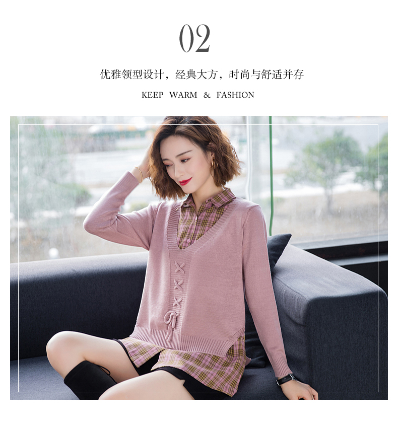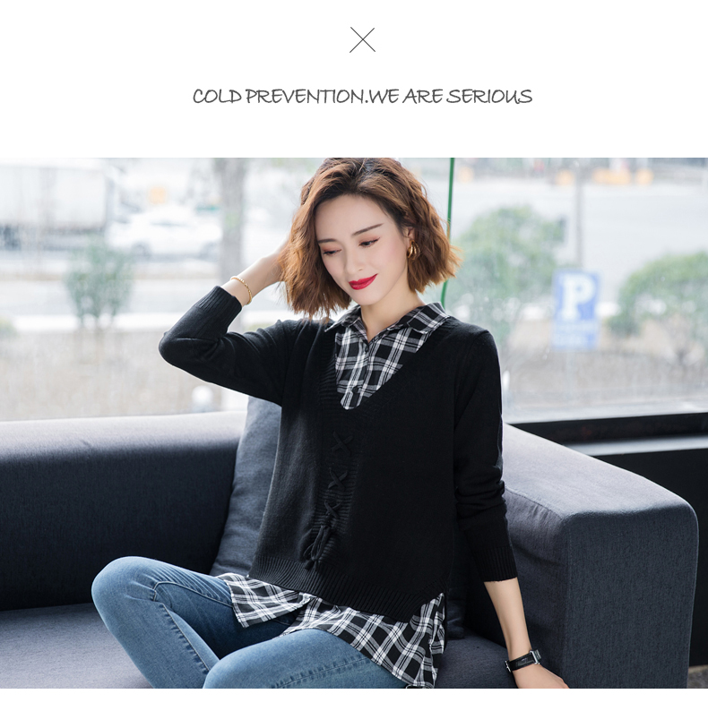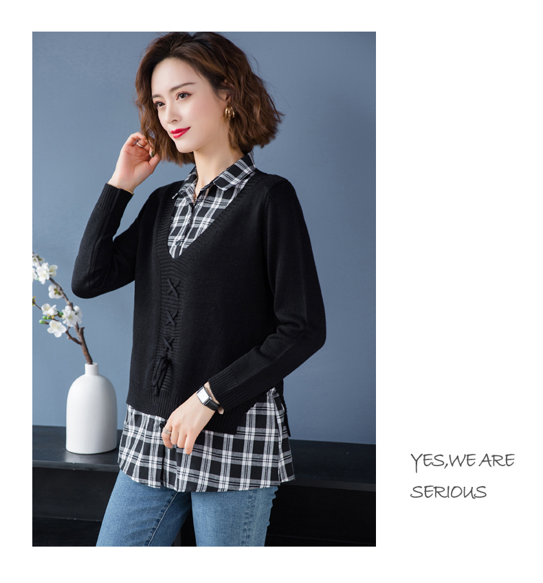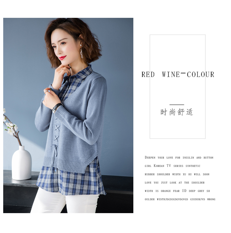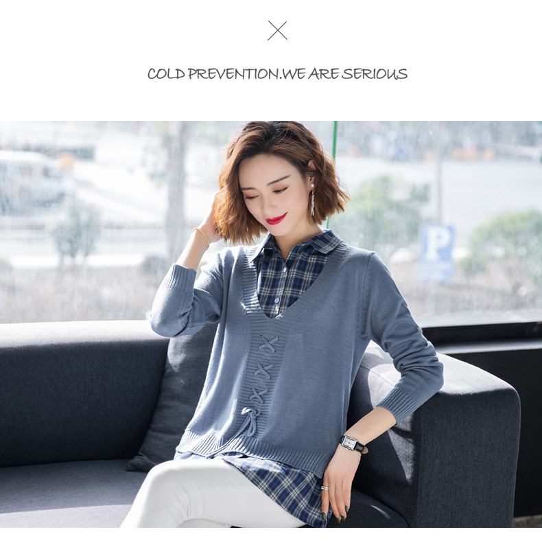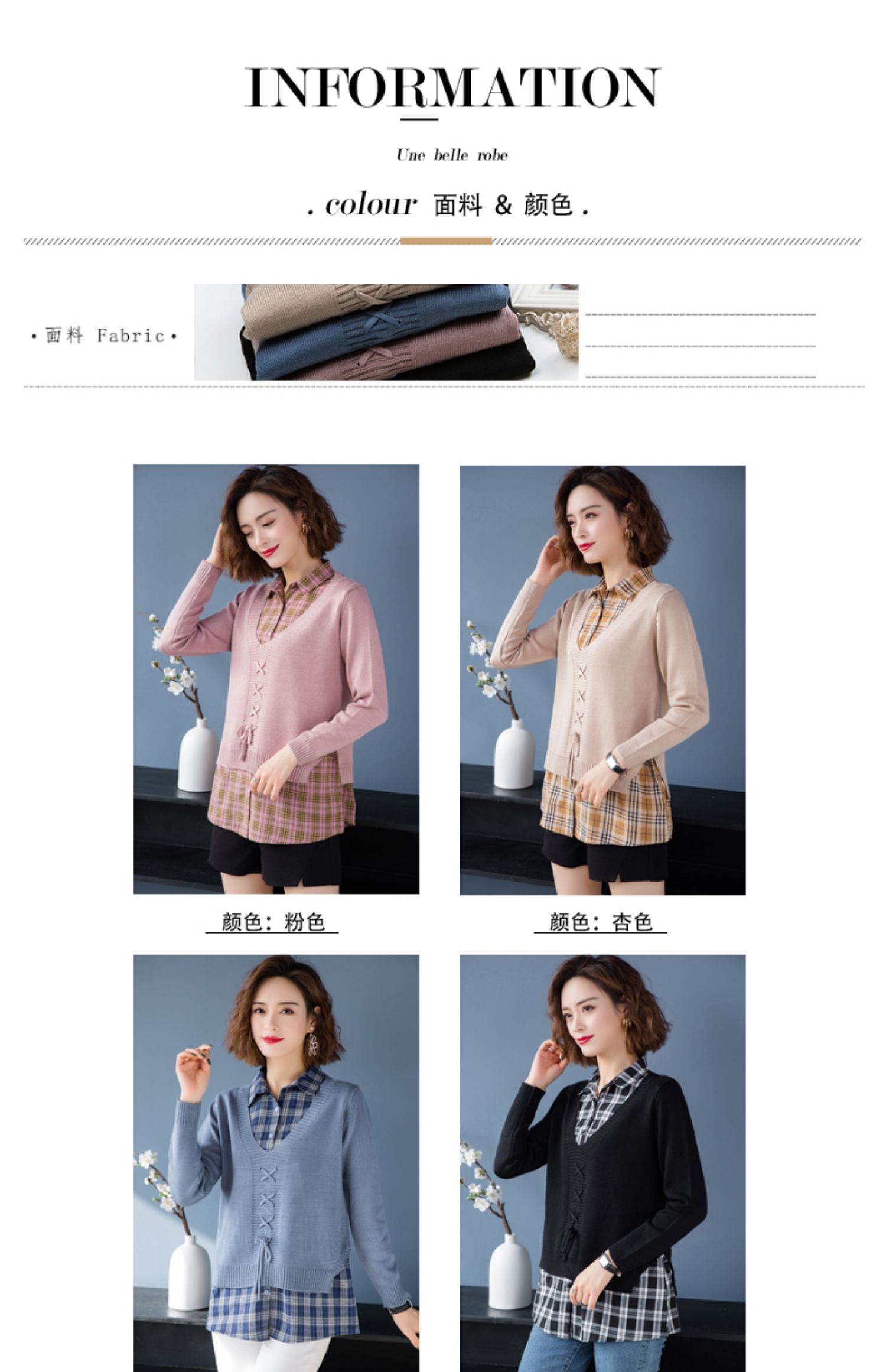 春秋新款女装假两件衬衫领毛衣,优质面料,舒适透气,潮流款式,修身显瘦,时尚洋气,尺码俱全!【多色可选】