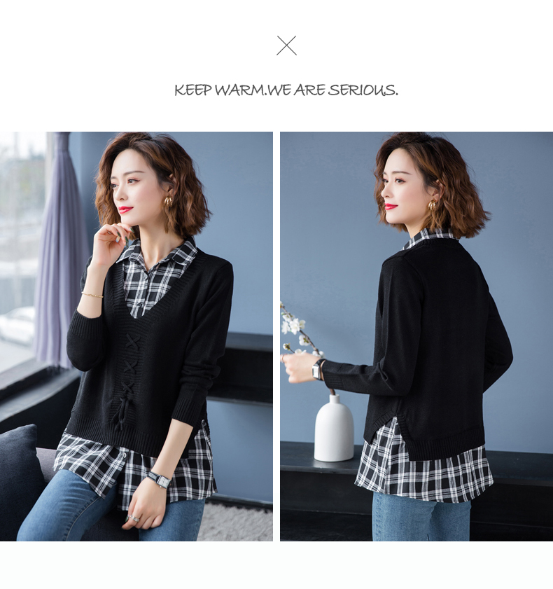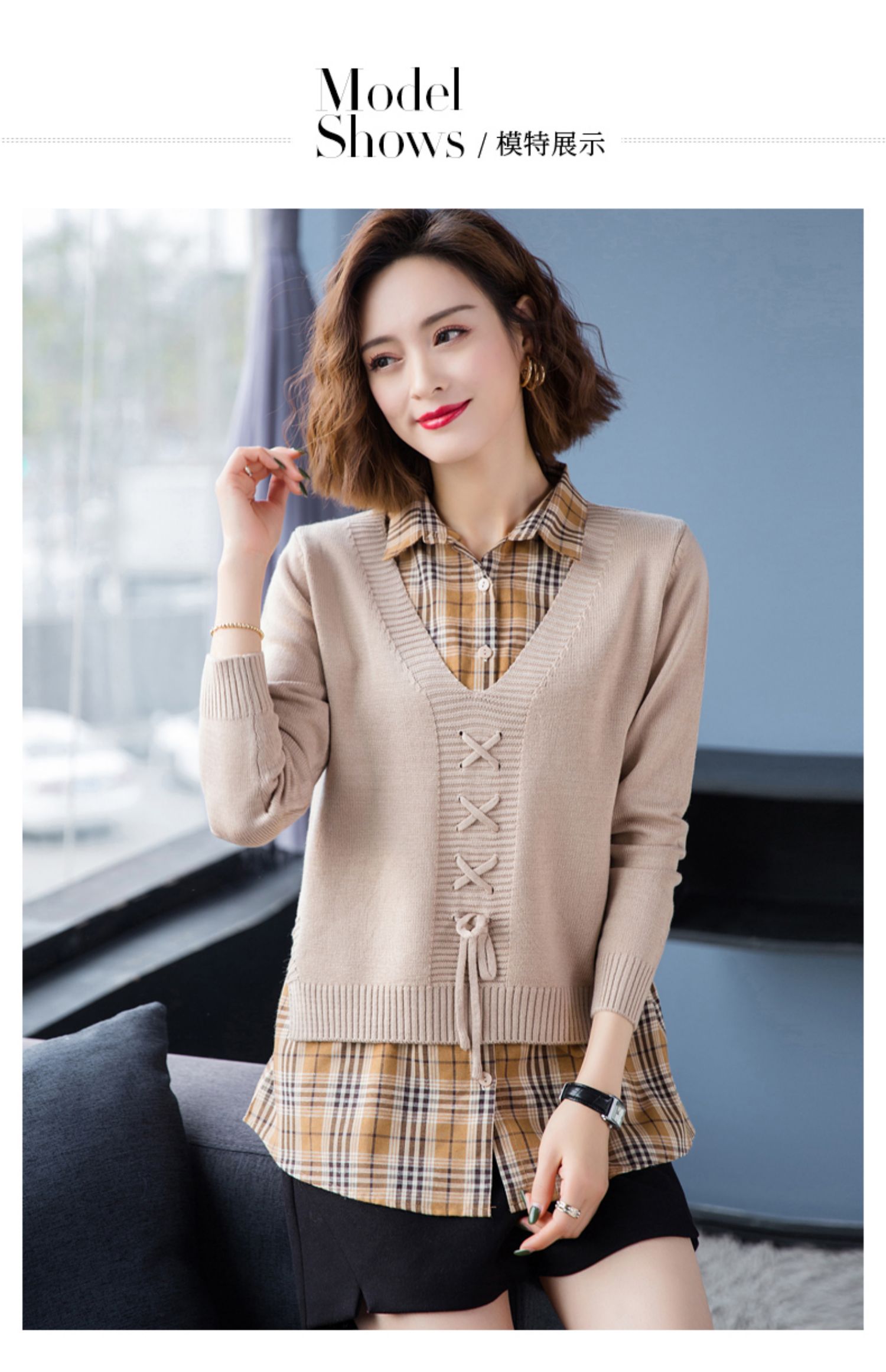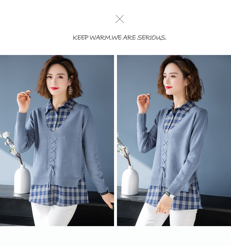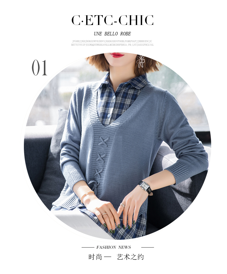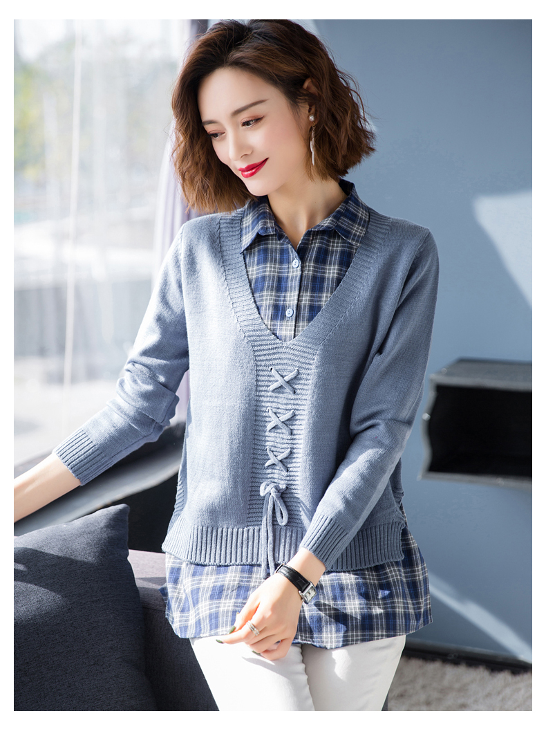 春秋新款女装假两件衬衫领毛衣,优质面料,舒适透气,潮流款式,修身显瘦,时尚洋气,尺码俱全!【多色可选】
