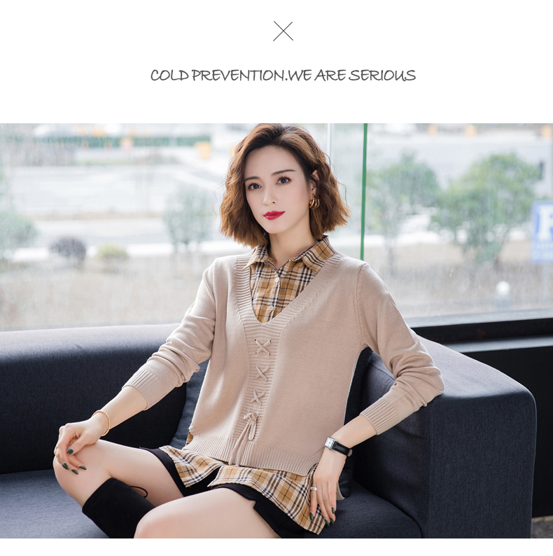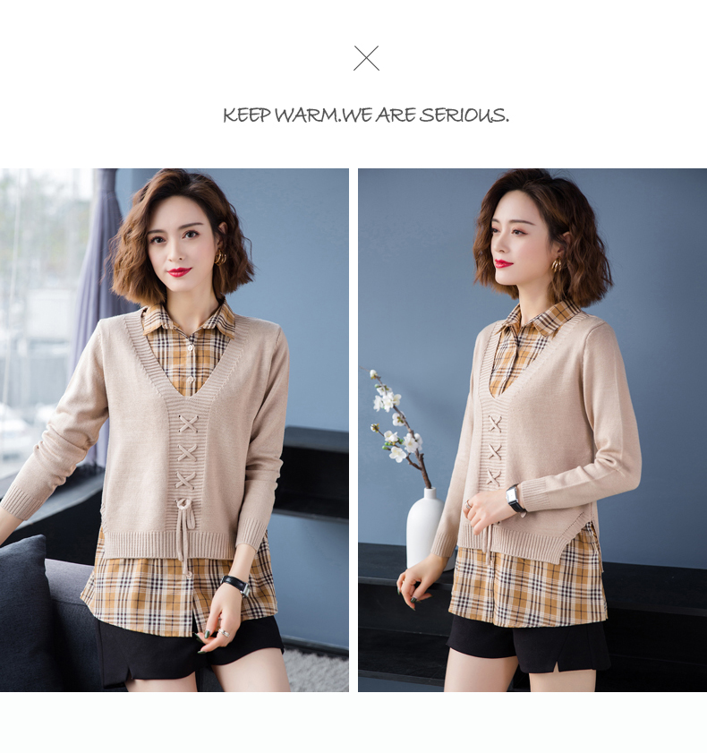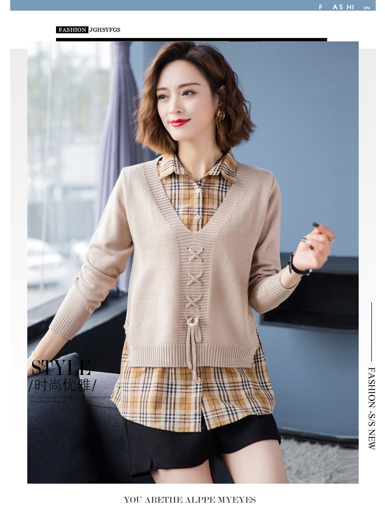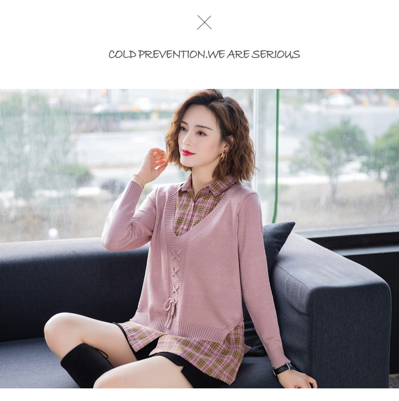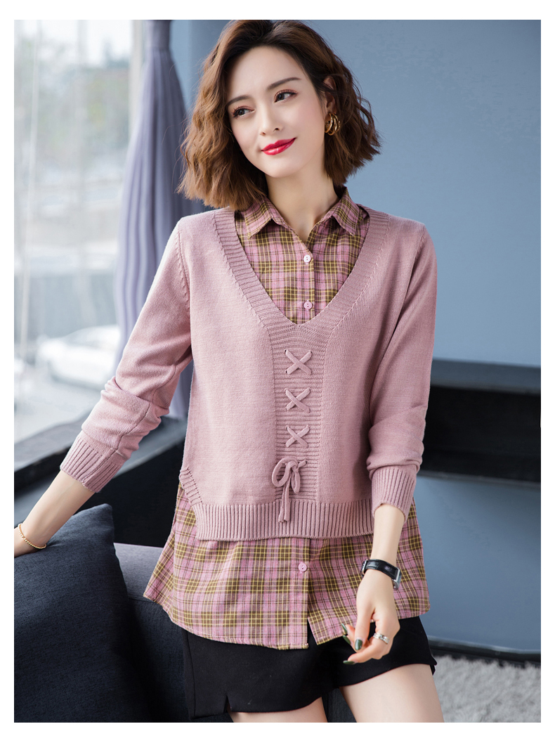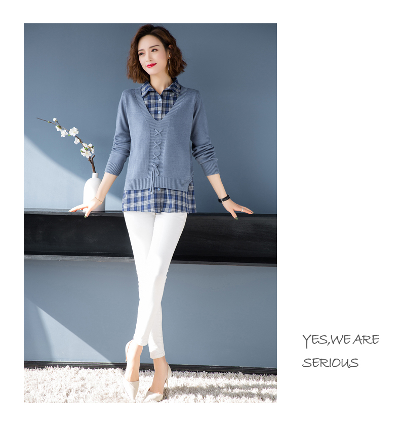 春秋新款女装假两件衬衫领毛衣,优质面料,舒适透气,潮流款式,修身显瘦,时尚洋气,尺码俱全!【多色可选】