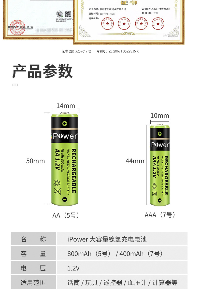 镍氢可充电替代,涓流输出,恒压充电。普通的电池弄完就丢了,我们的是可充电的,可充电1200次,循环使用,低碳环保,安全持久!赶快入手吧!