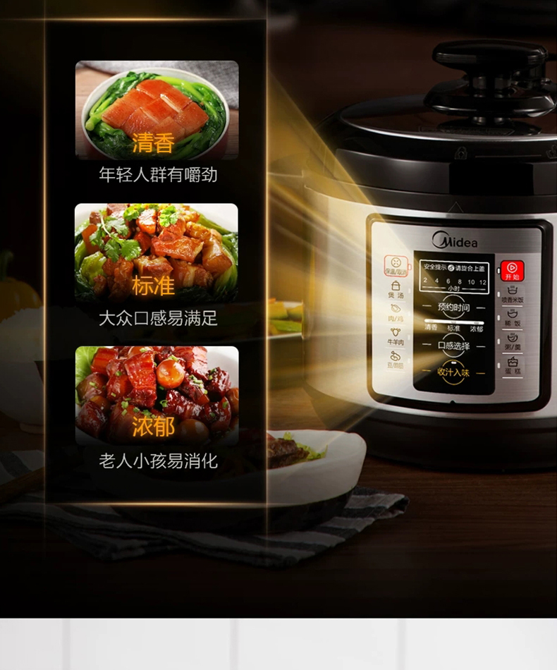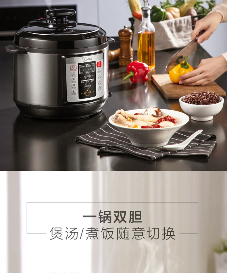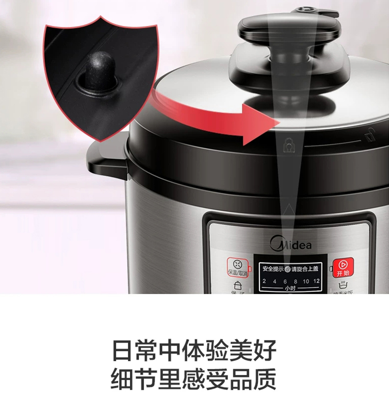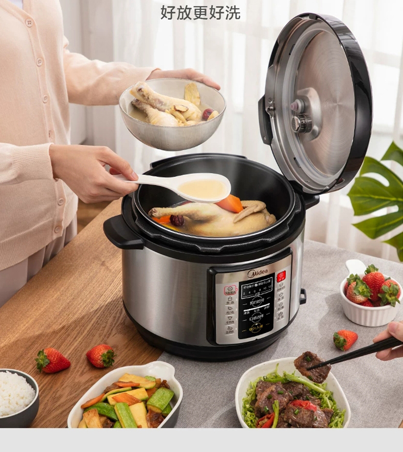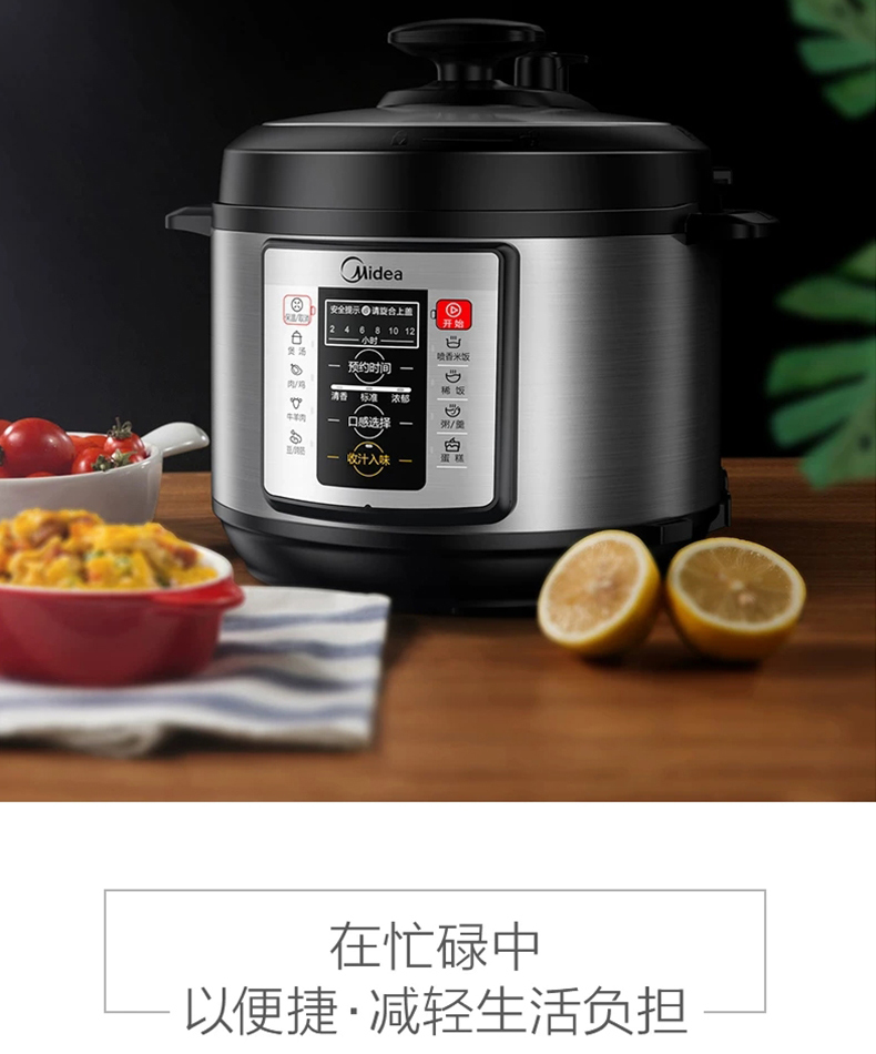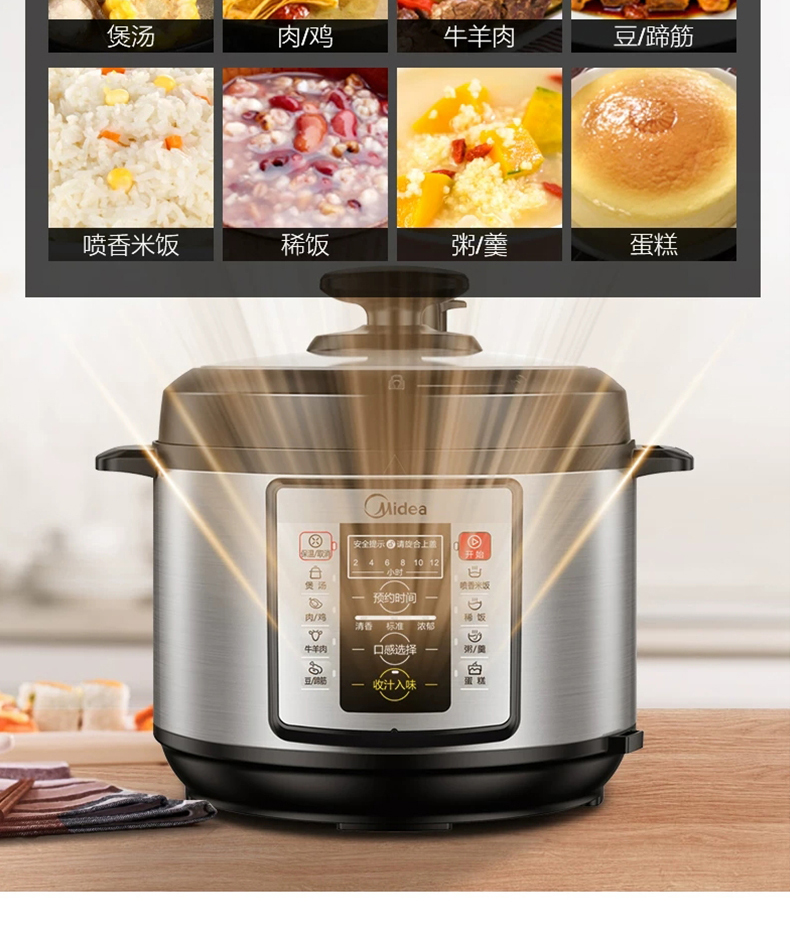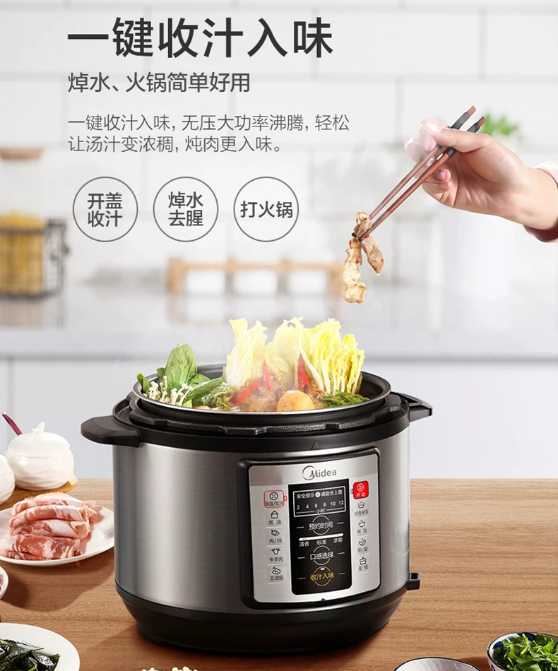 美的电压力锅,一键收汁入味,智能加热曲线,口味可调,精钢机身,12小时预约,控压控火,释放营养且不流失,创新收汁技术,让您的厨房色香味俱全【赠运费险】