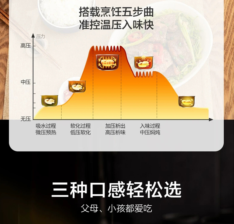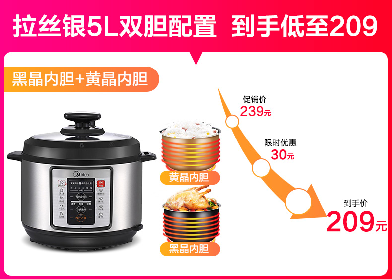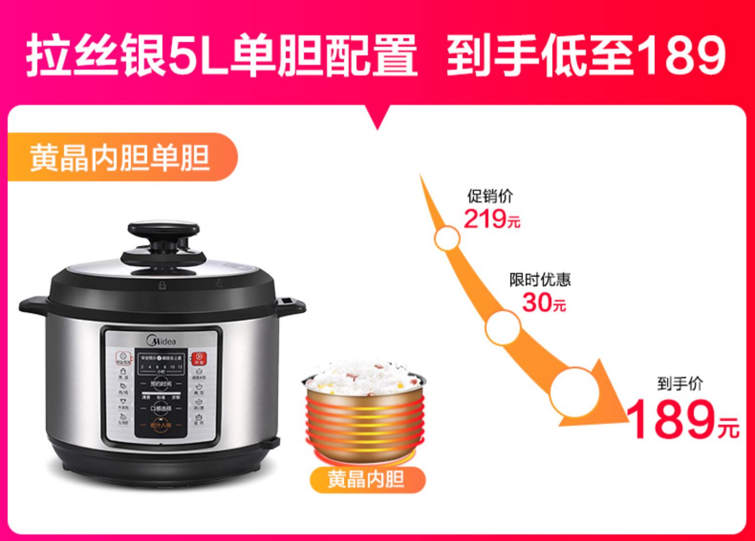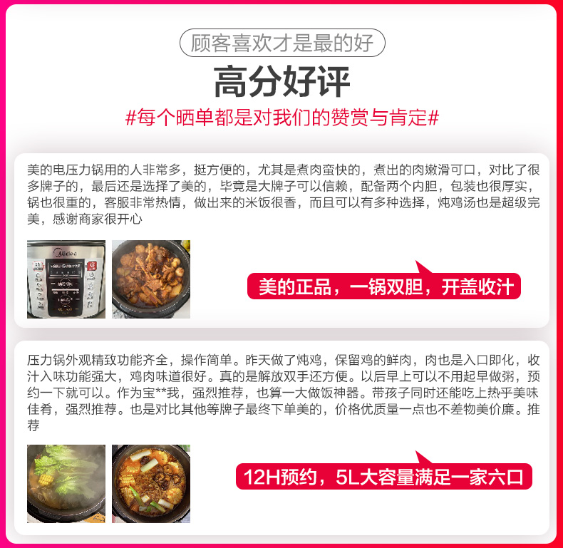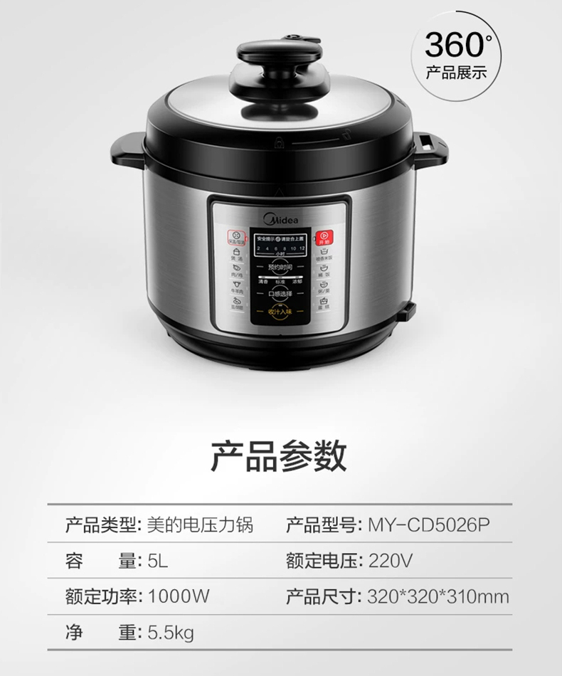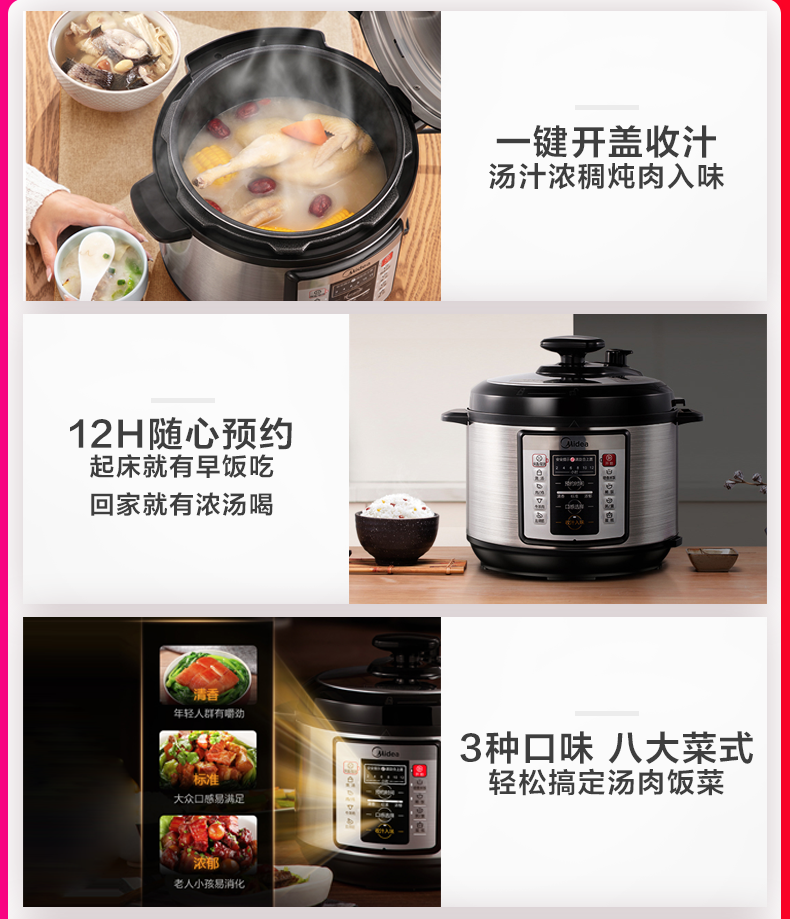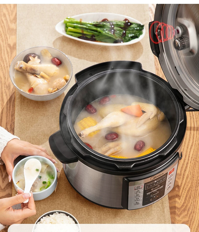 美的电压力锅,一键收汁入味,智能加热曲线,口味可调,精钢机身,12小时预约,控压控火,释放营养且不流失,创新收汁技术,让您的厨房色香味俱全【赠运费险】
