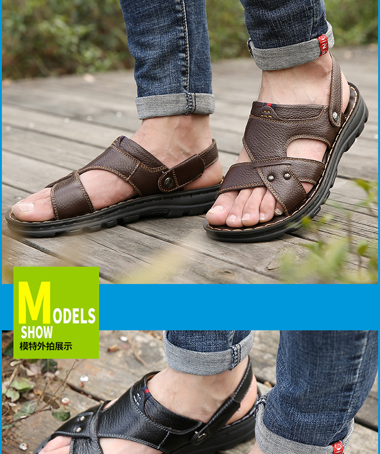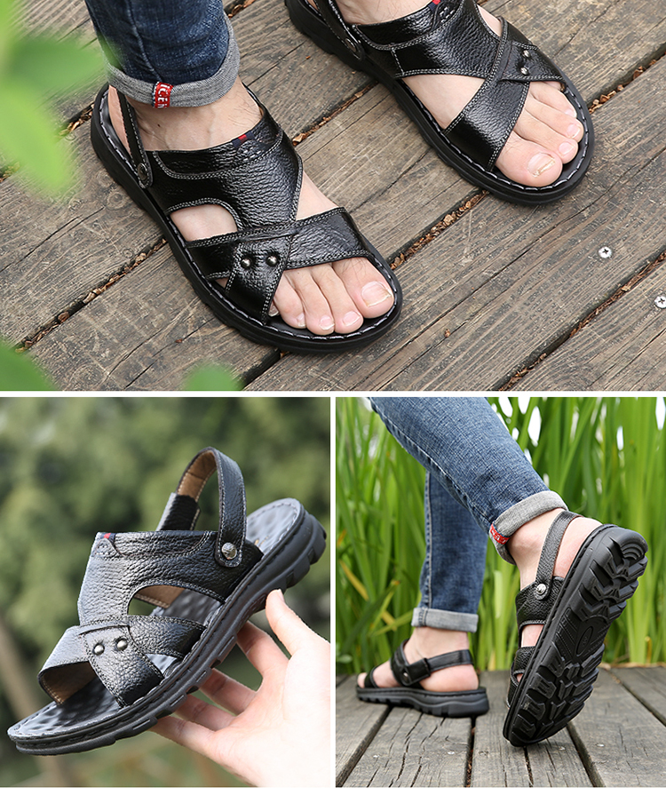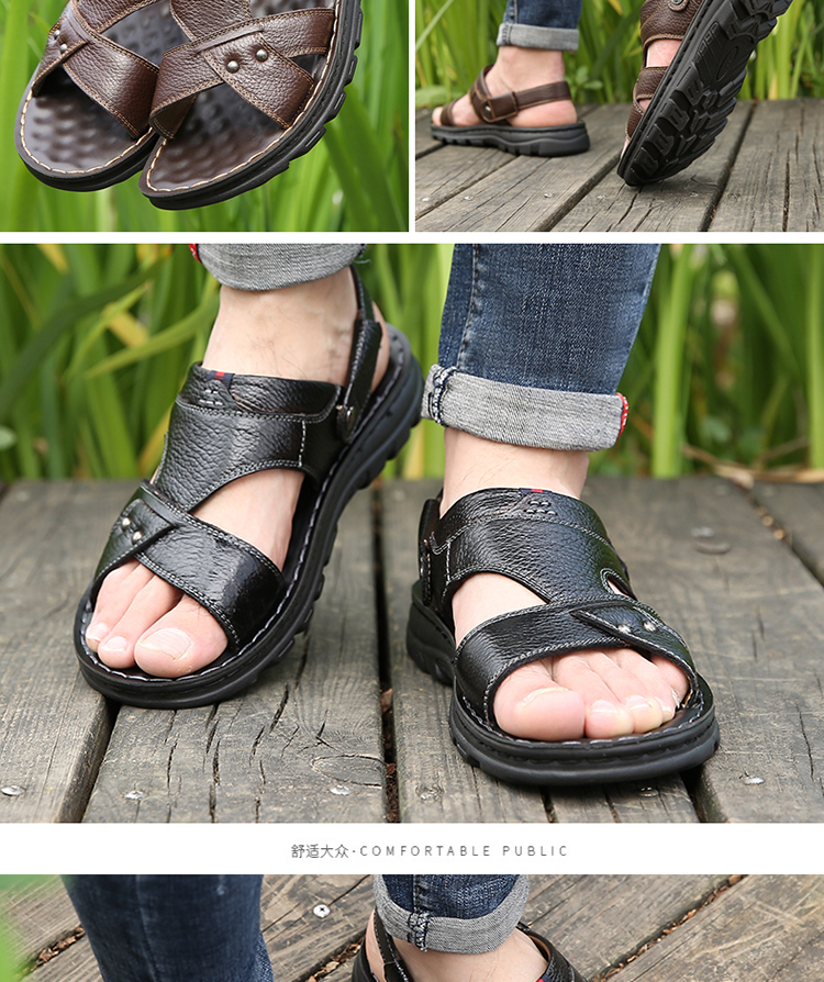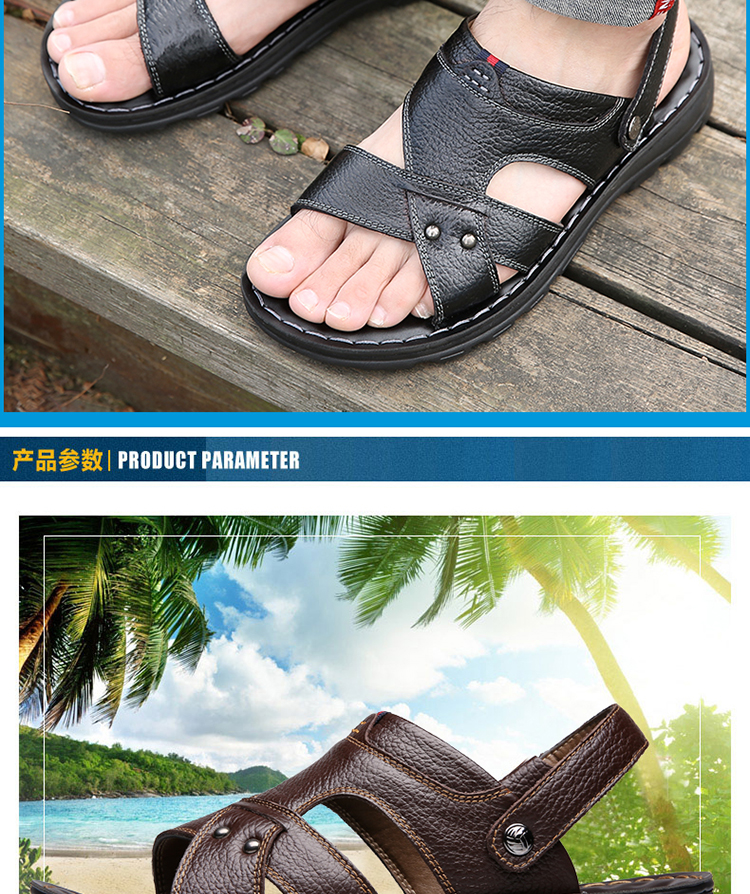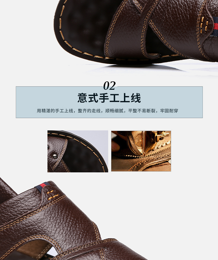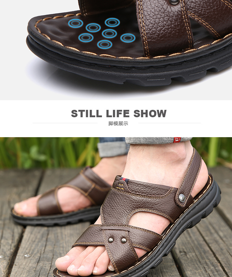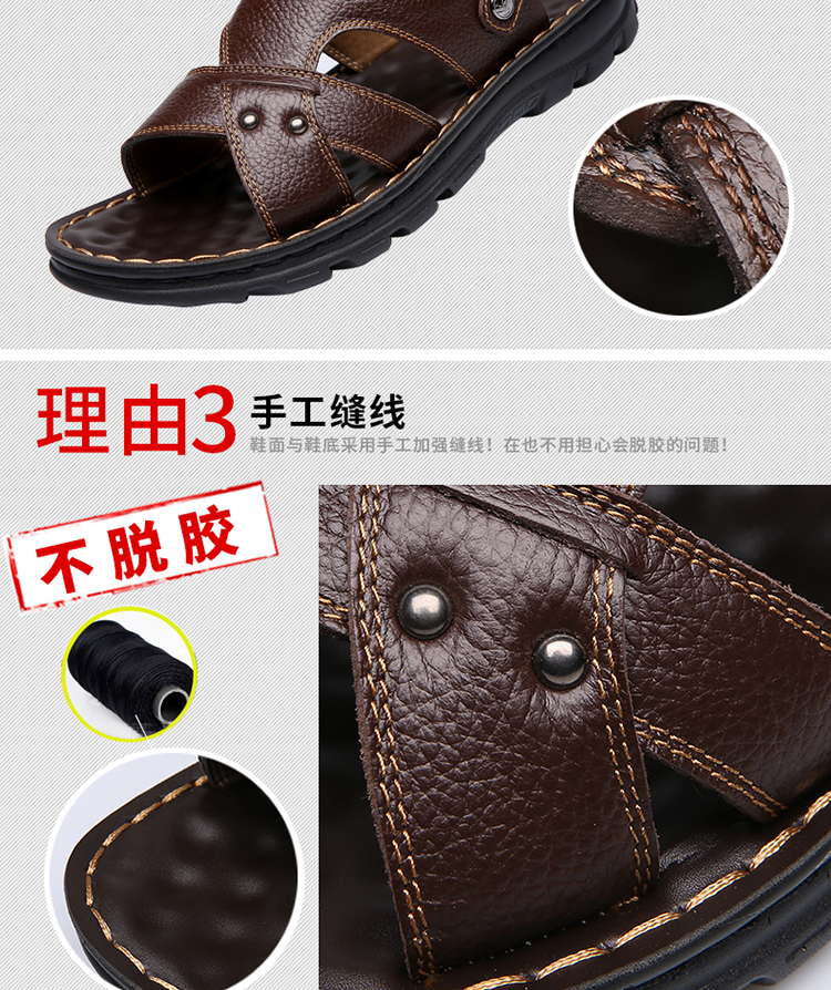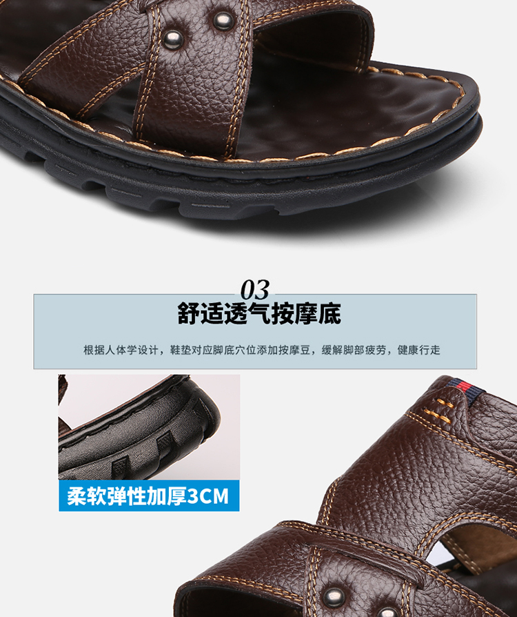 【国货精品】精选整张头层牛皮,皮面光滑,光鲜细腻,时尚又舒适;升级版加厚鞋底,防滑耐穿;鞋面与鞋底采用手工加强缝线,杜绝脱胶;鞋垫对应脚底穴位添加按摩豆,缓解脚部疲劳,选择它,选择健康~