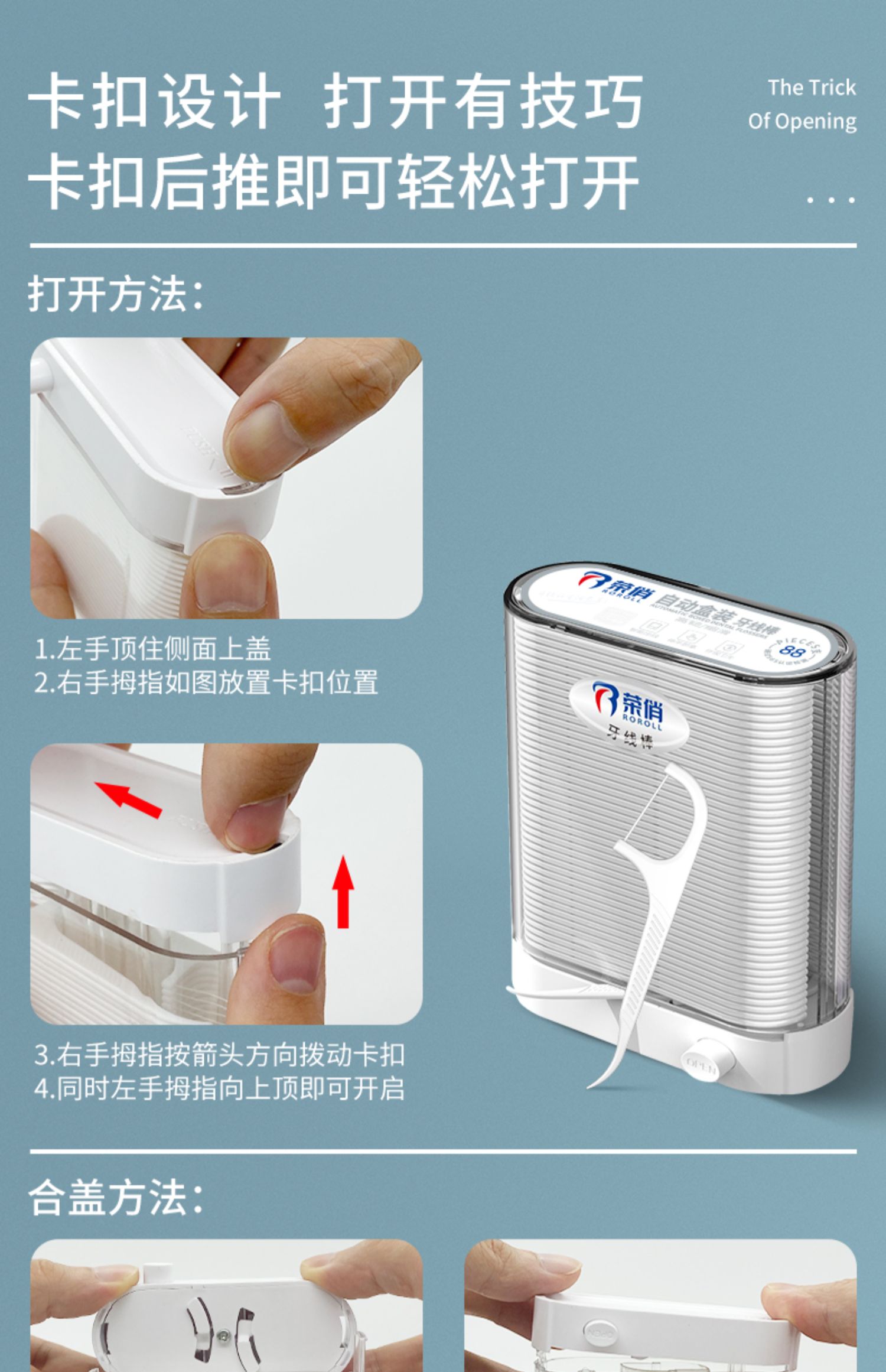 【牙线收纳自动盒+5袋牙线共658只+随身盒】超值家庭装,儿童可用牙线,安全环保材质,扁线竹碳,护龈洁齿,易入齿缝,深层清洁,不伤牙龈,止滑握柄,清洁牙缝护理口腔,360度无死角呵护全家牙齿健康。