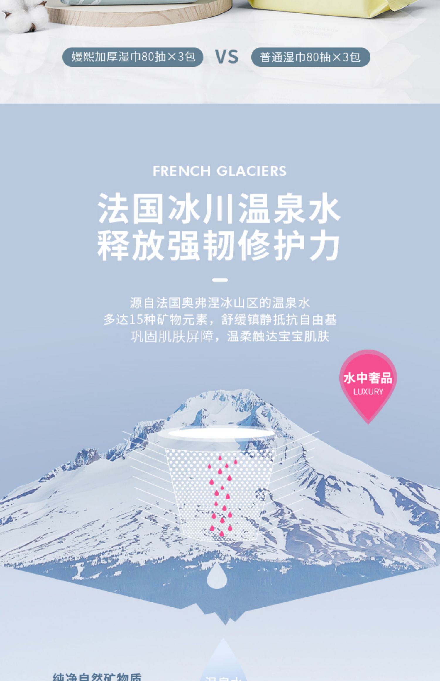 【80抽*12包】萃取法国冰川温泉水,温和无刺激,亲肤棉质,快速吸水,柔软细腻,不起毛屑,韧性十足,翻盖双层锁水,防止水份流失,避免细菌污染,妈妈放心,宝宝更舒心~~赠运费险