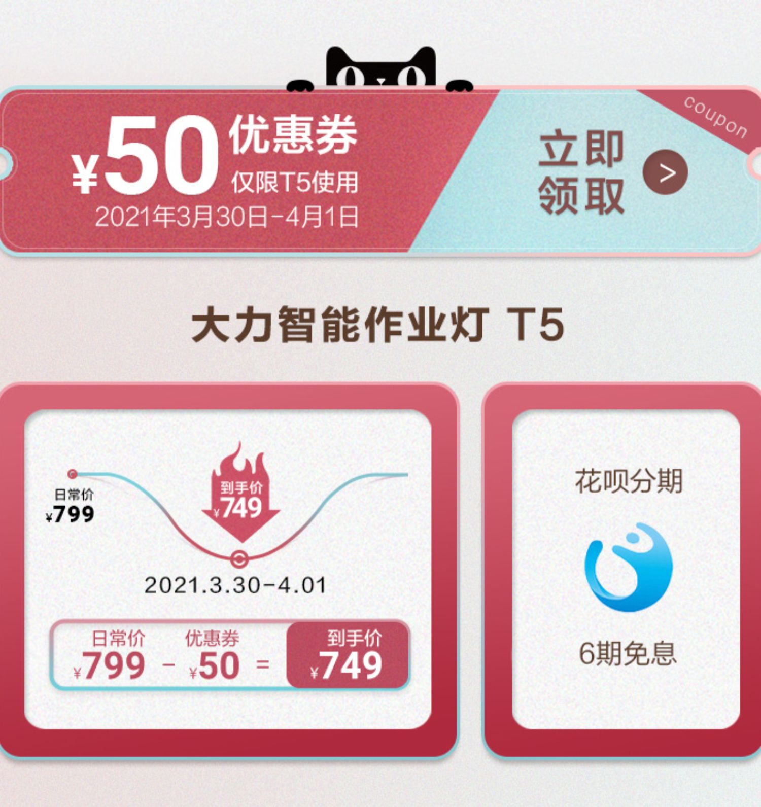 【旗舰正品】大力智能作业灯T5