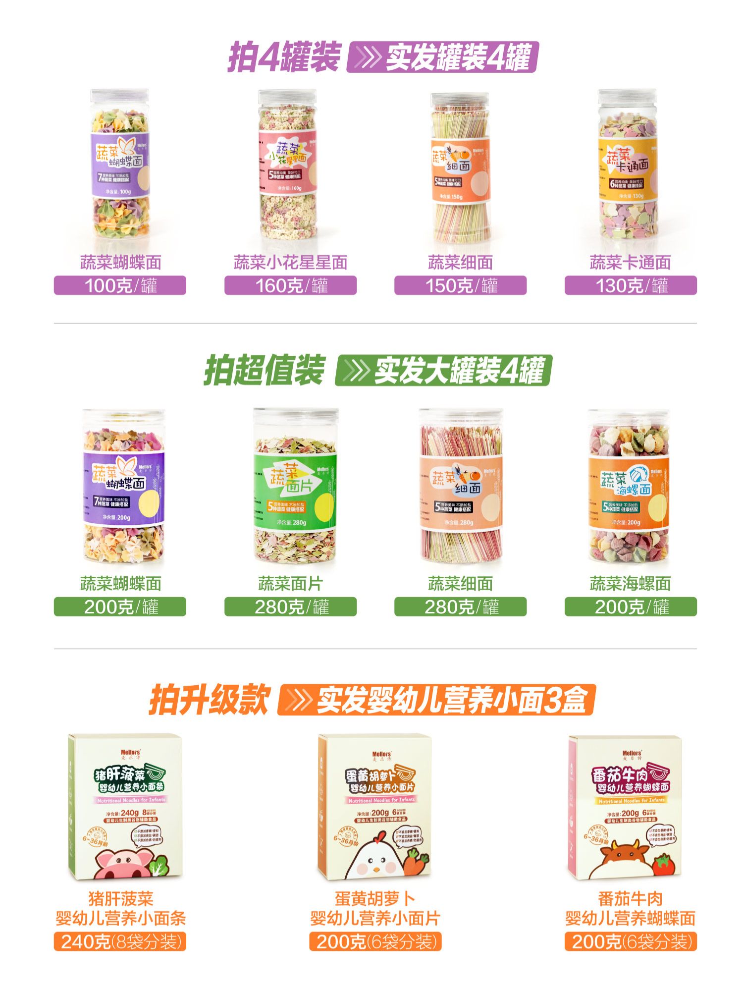 营养小面2罐,水果蔬菜混合补充维生素,吃的更健康,妈妈更放心。精选优质小麦,多种蔬菜营养均衡,无添加剂,低脂肪,低钠配方,Q弹爽滑,麦香浓郁~