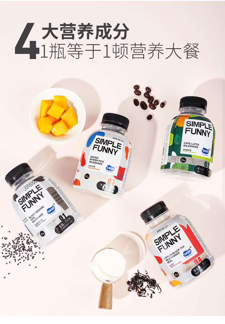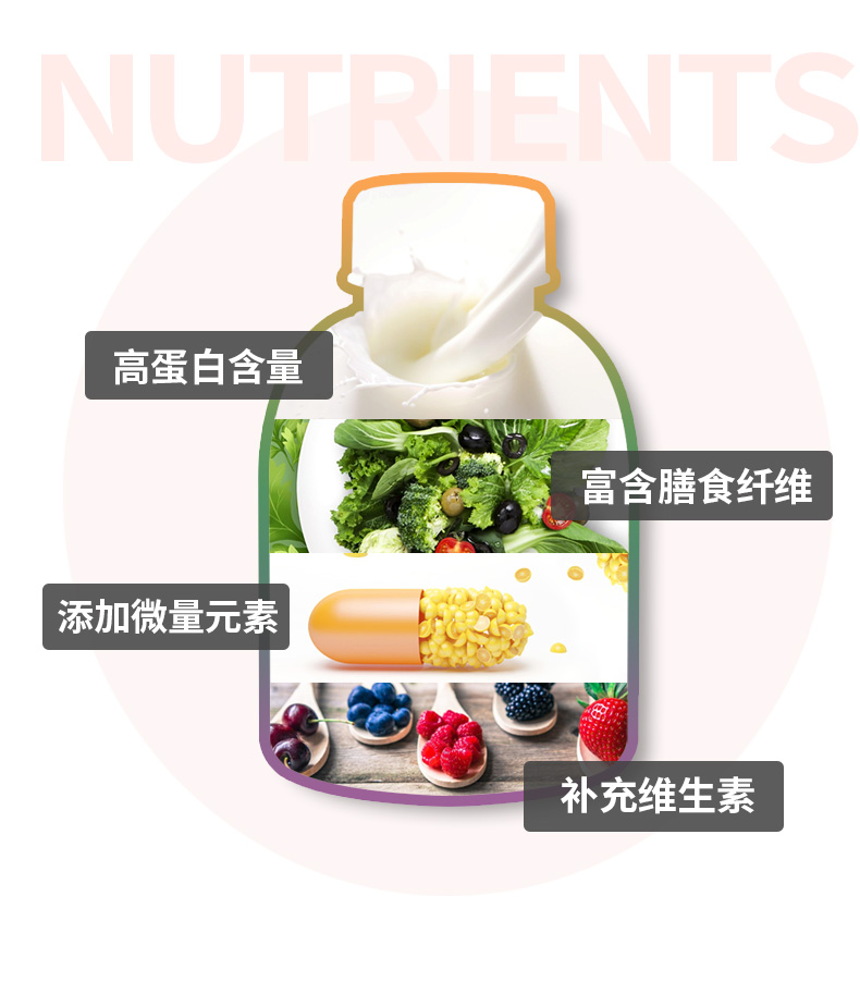 低卡、控糖、饱腹。营养代餐,健康减重,满足每日身体所需,3种口味随心享~高膳食纤维饱腹润肠,添加优质益生元,一餐一瓶,身材喝出来~