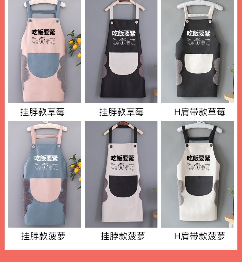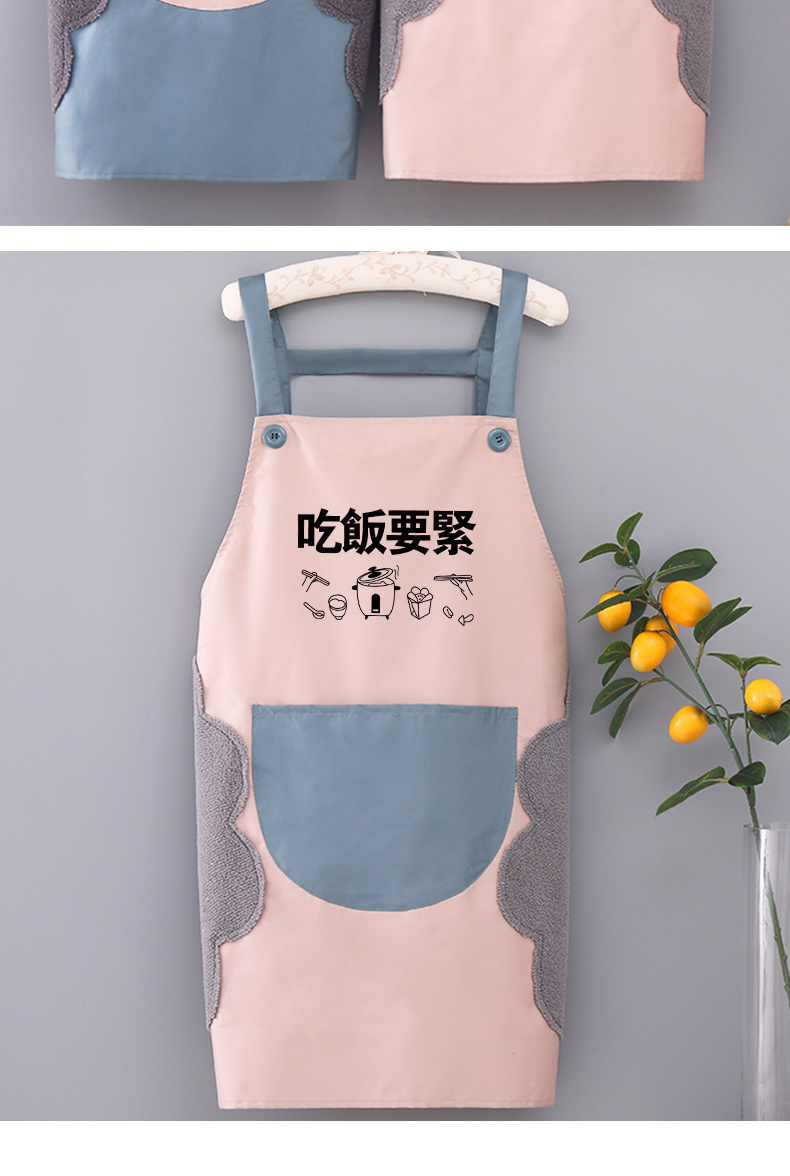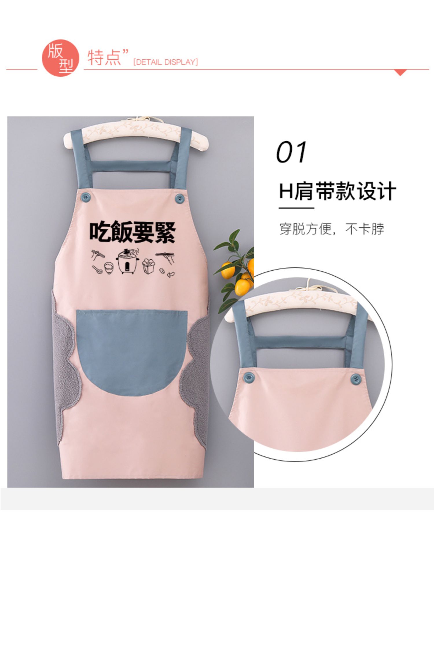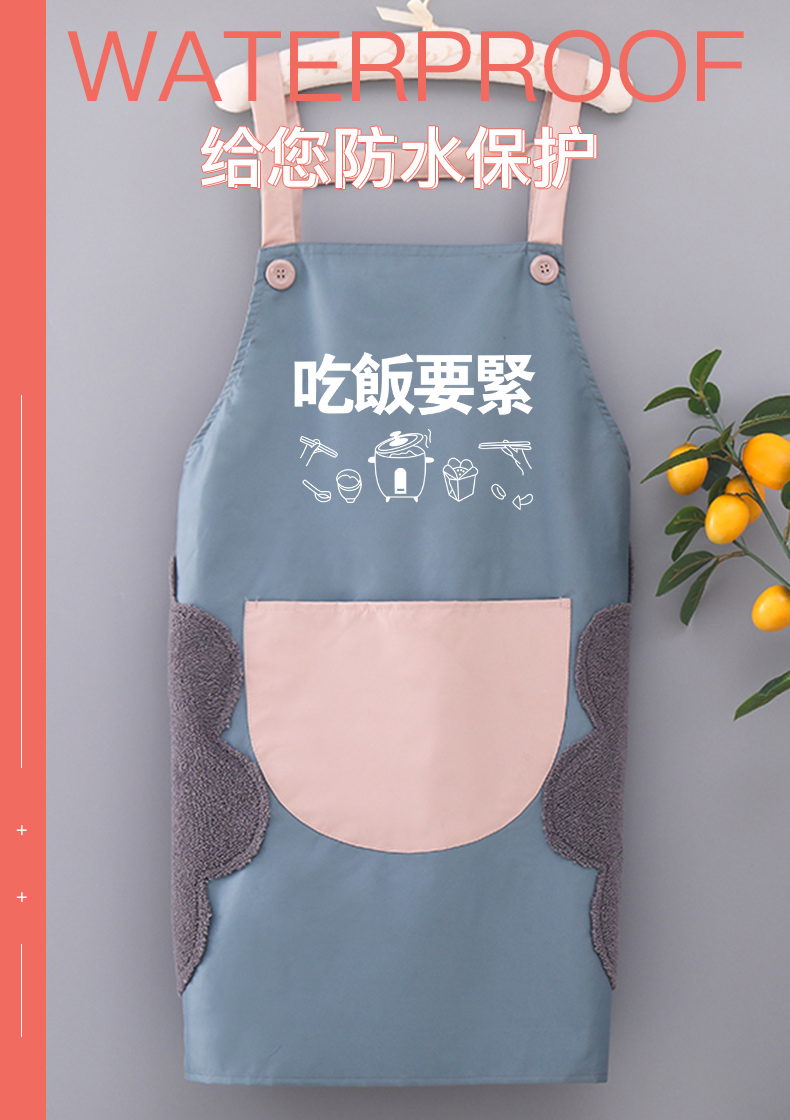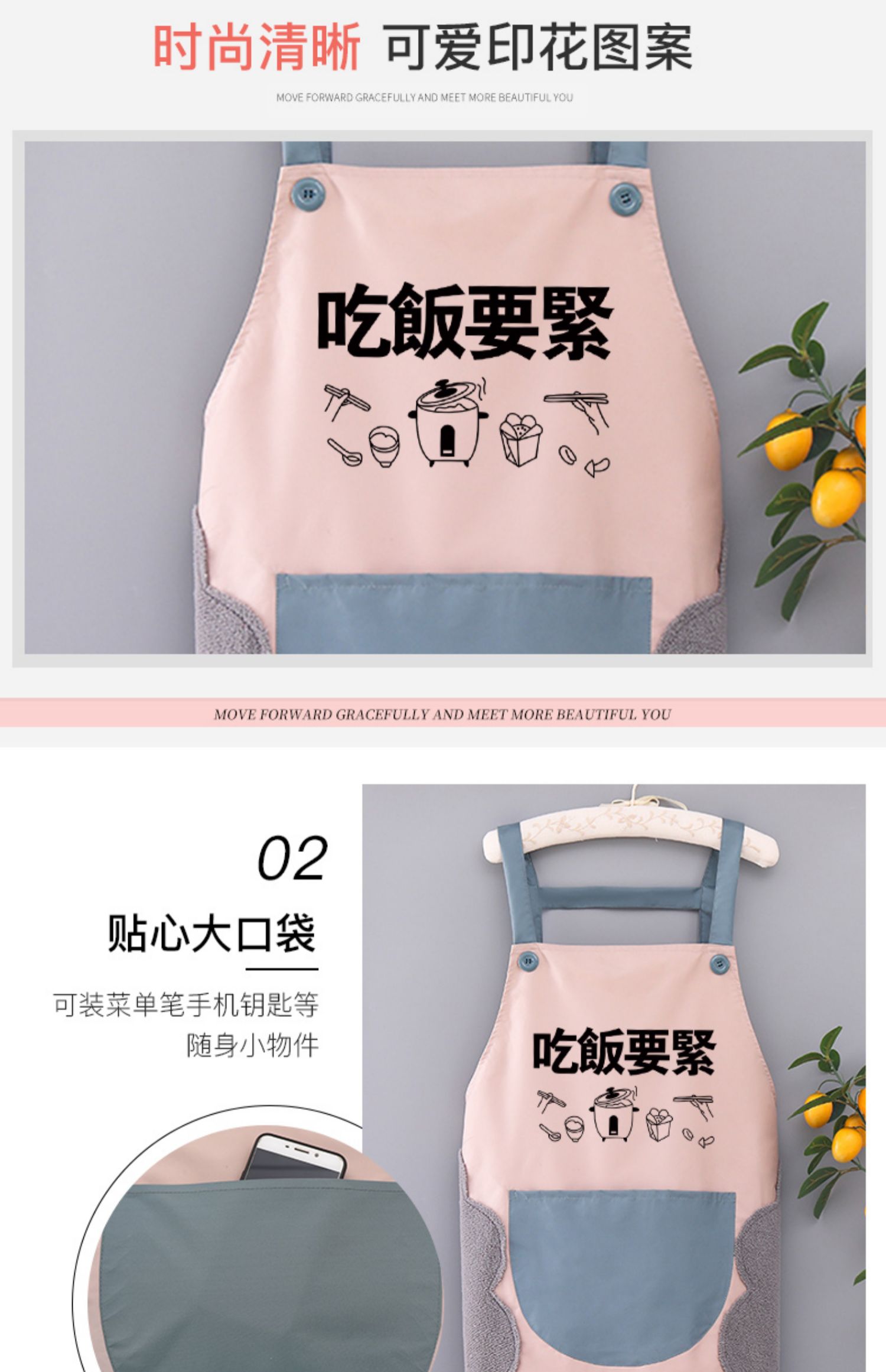 防水面料,防水隔油污,加宽口袋,收纳更多小物,两侧随手擦干,方便实用,不错过每个重要的来电,让你享受厨房