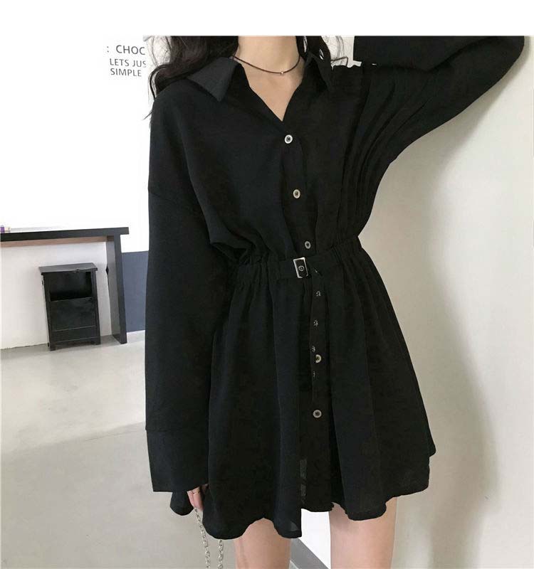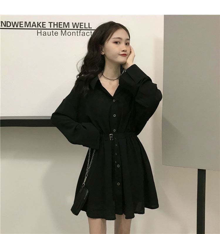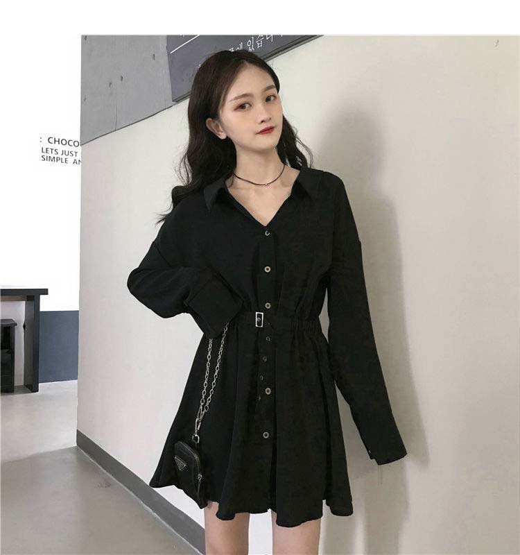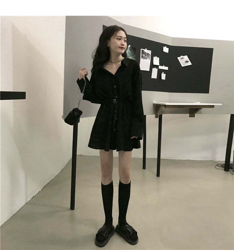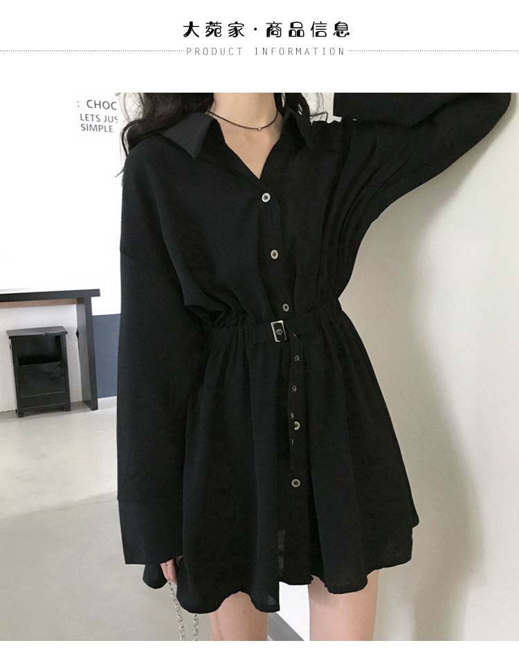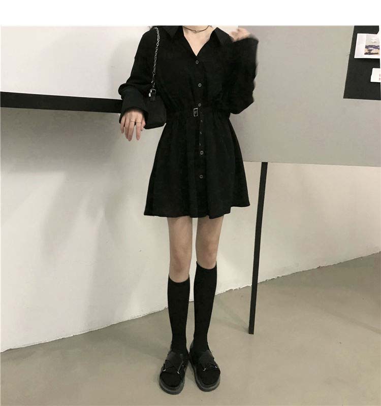 小黑裙子收腰显瘦气质长袖连衣裙女