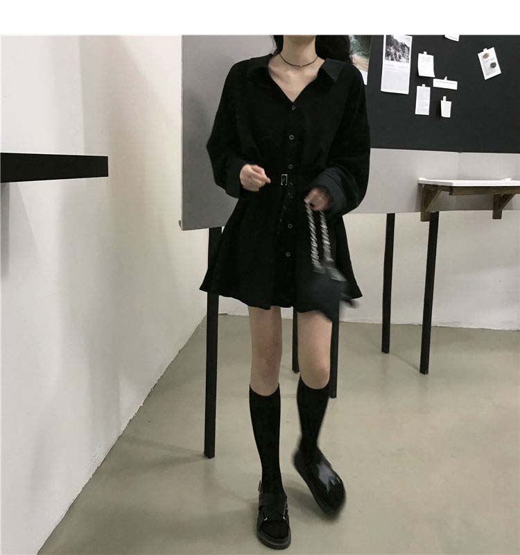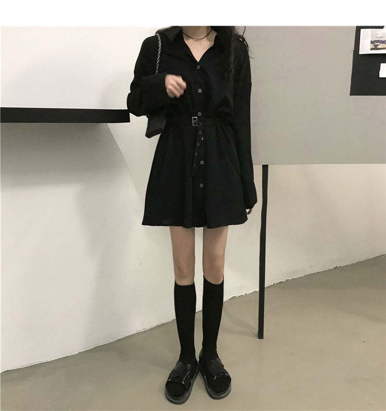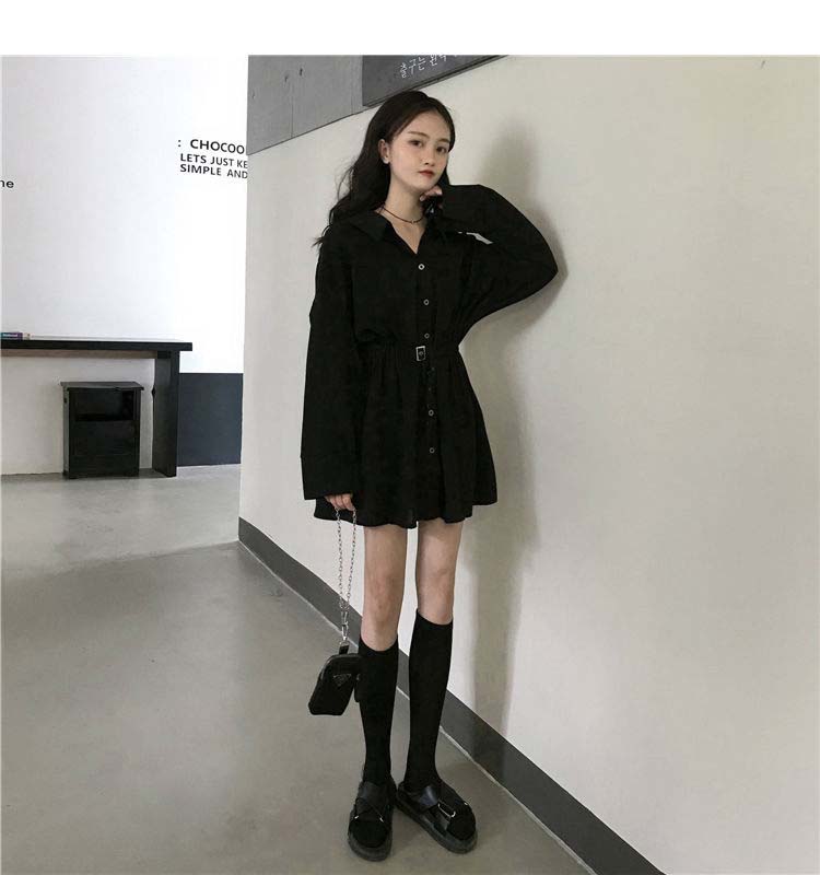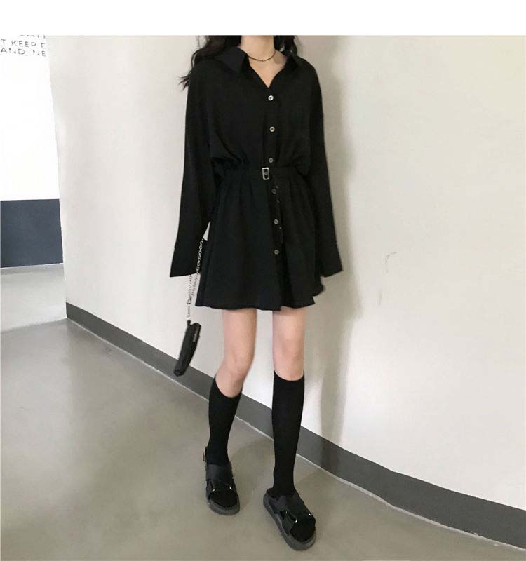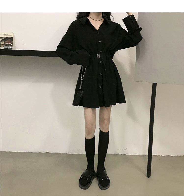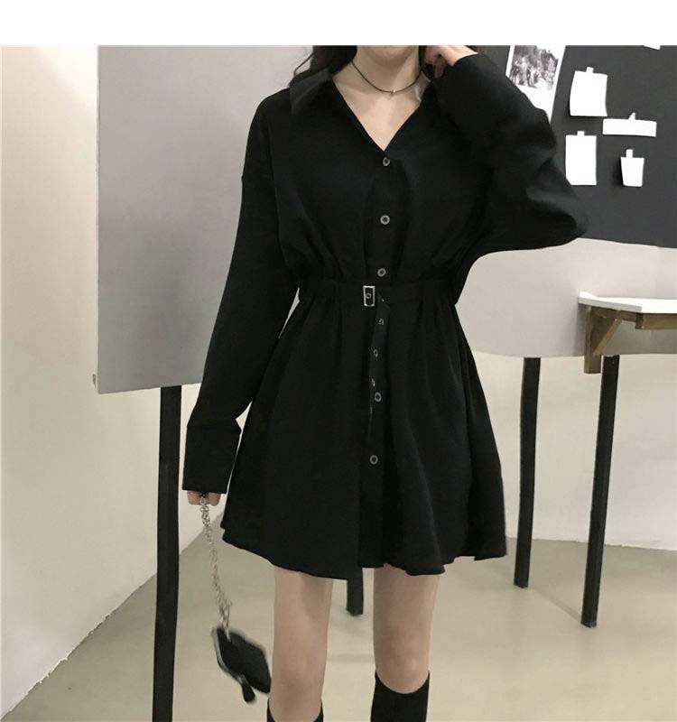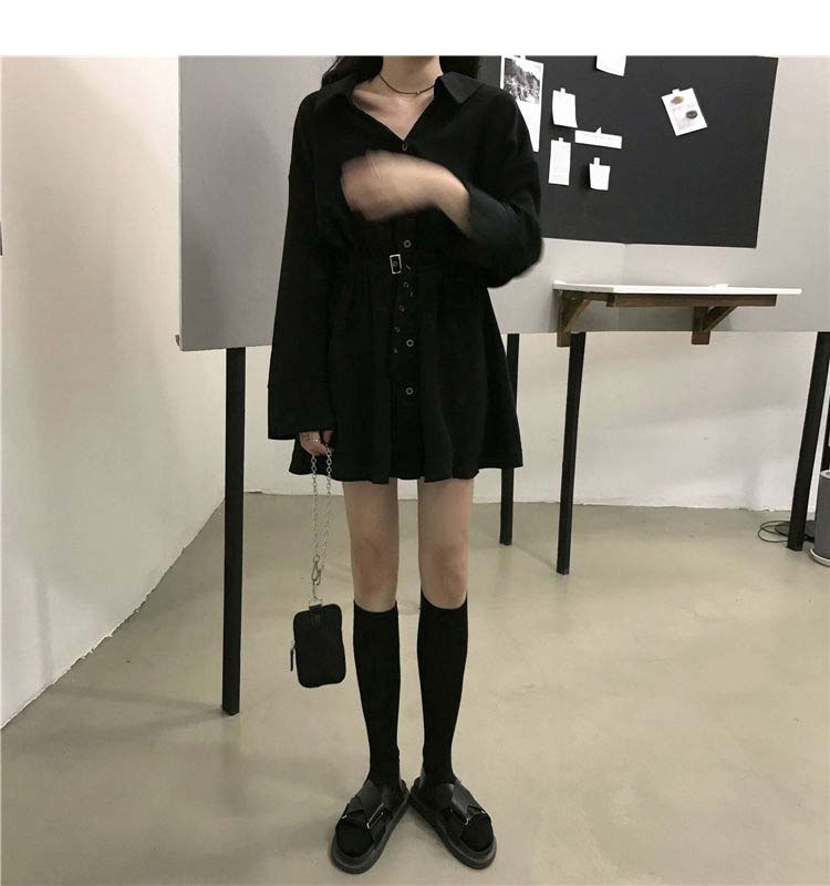 小黑裙子收腰显瘦气质长袖连衣裙女