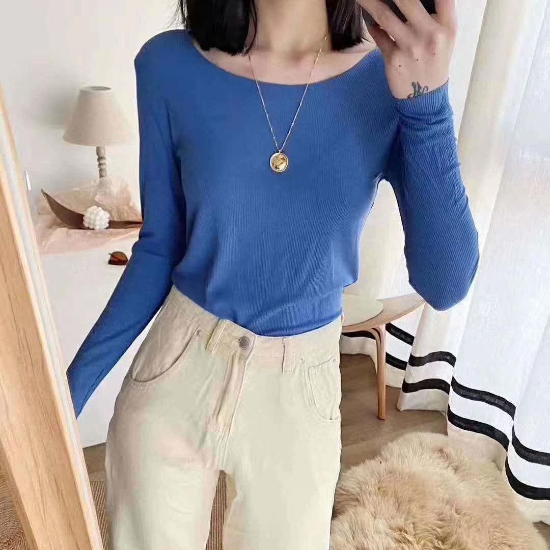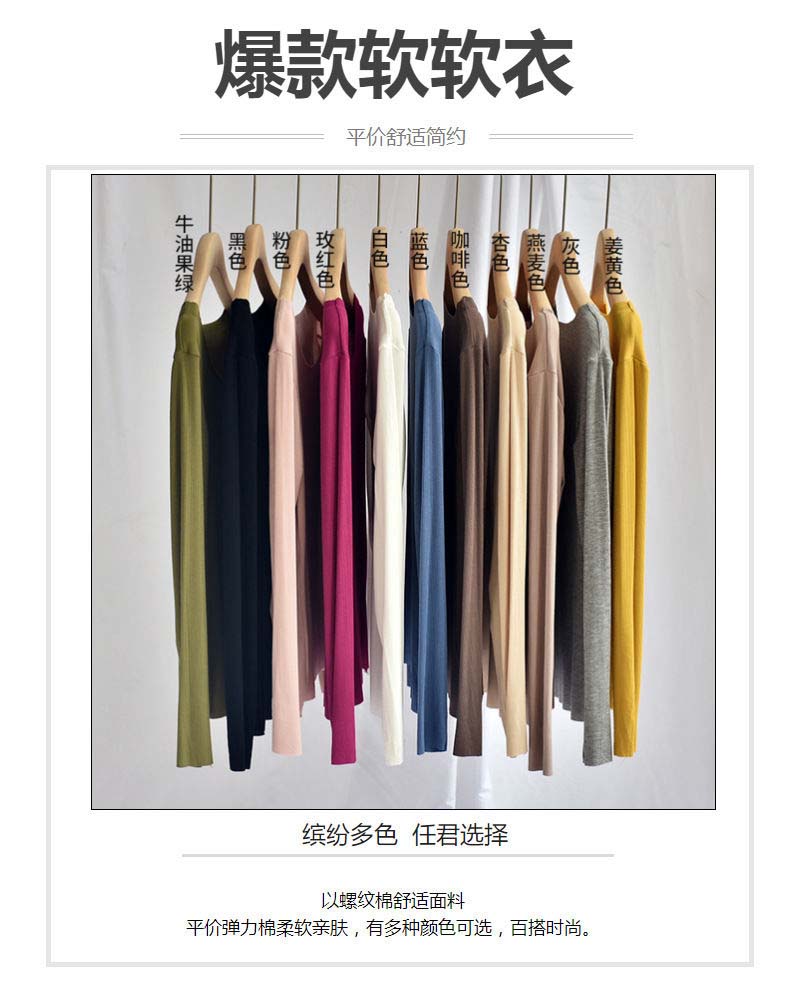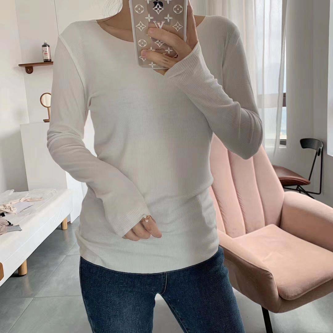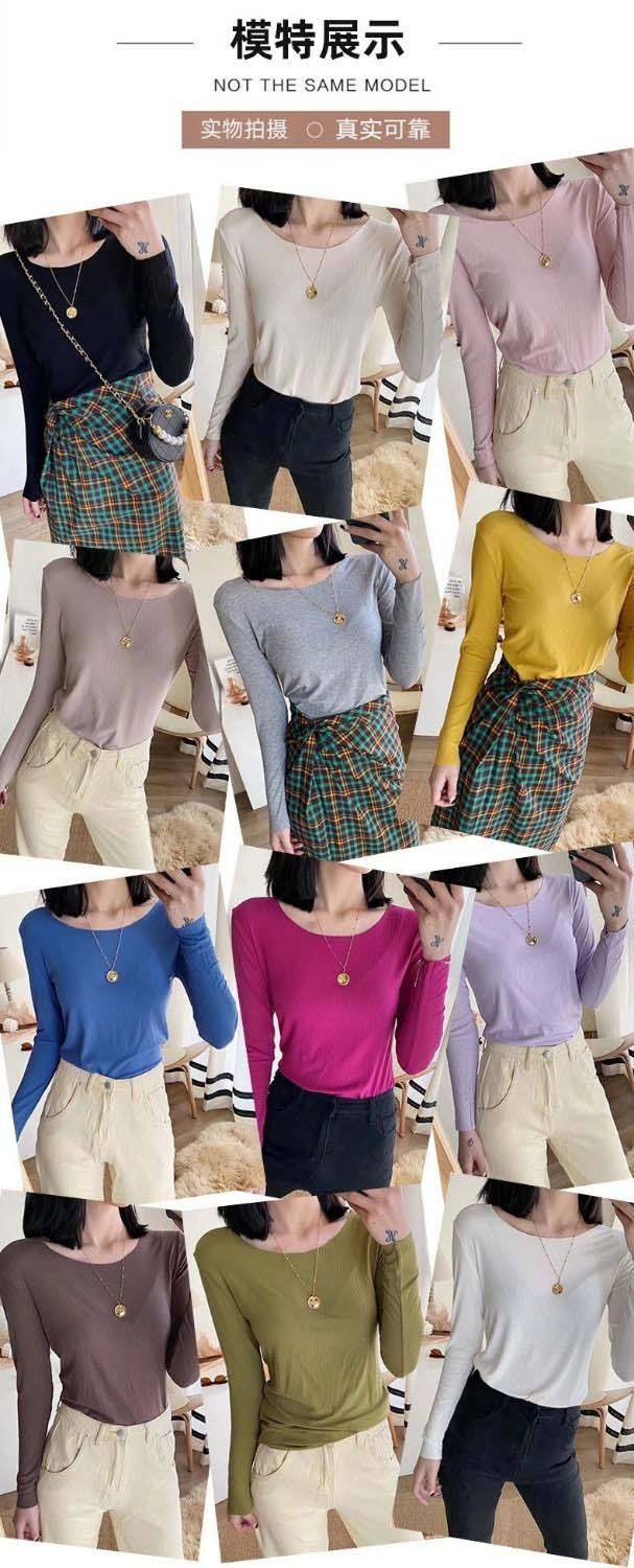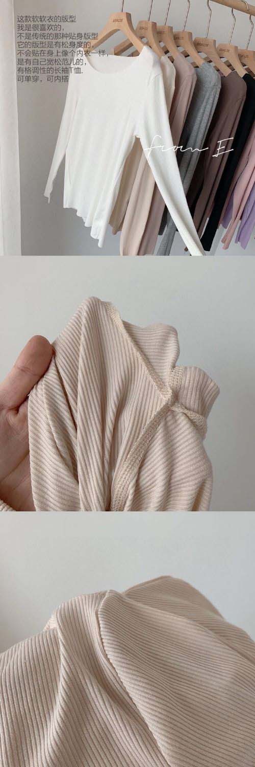 修身打底衫新款舒适百搭圆领螺纹长袖T桖