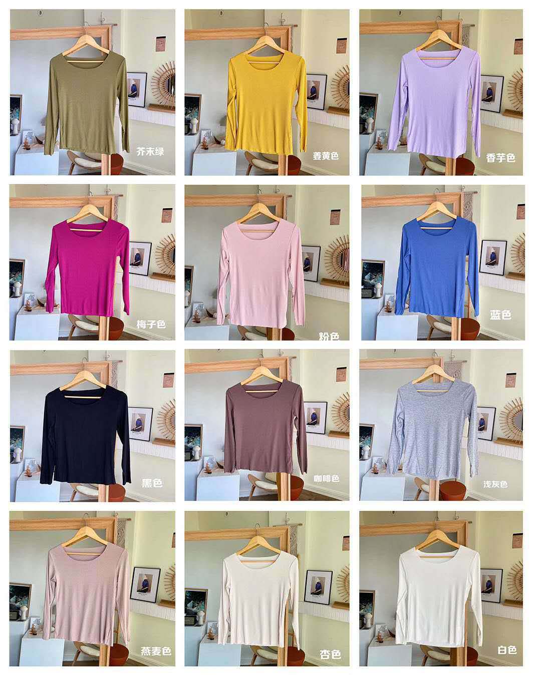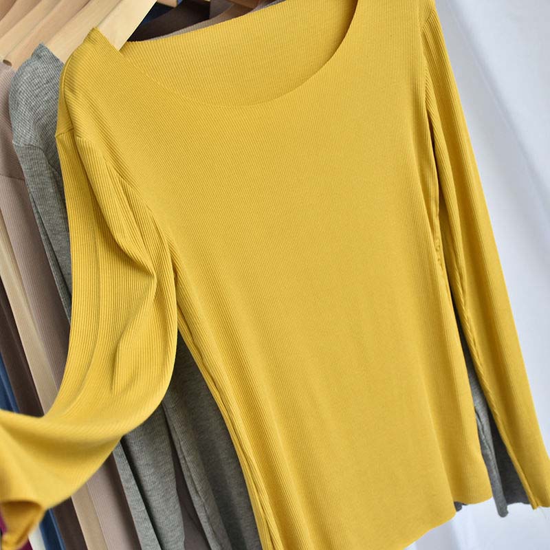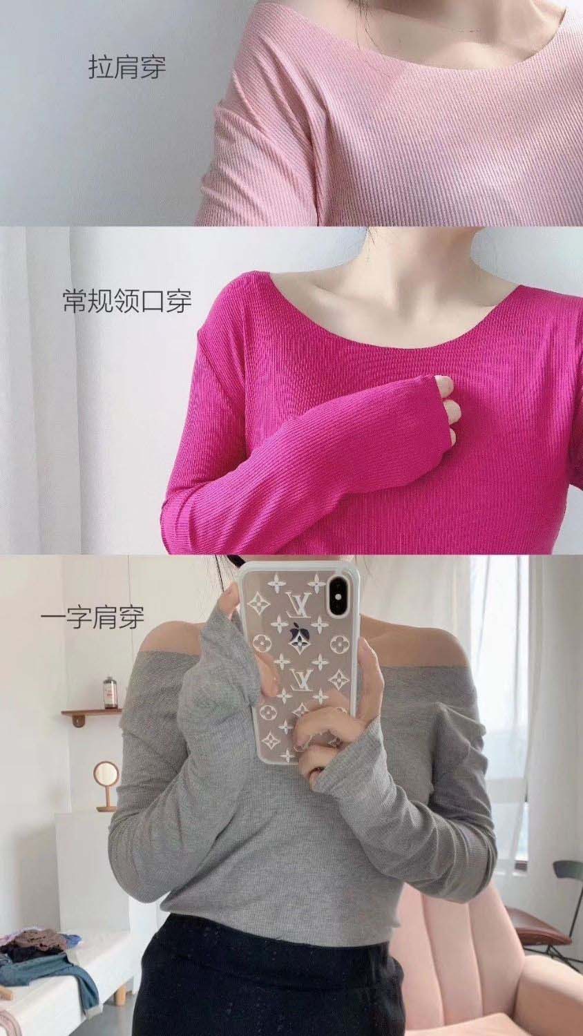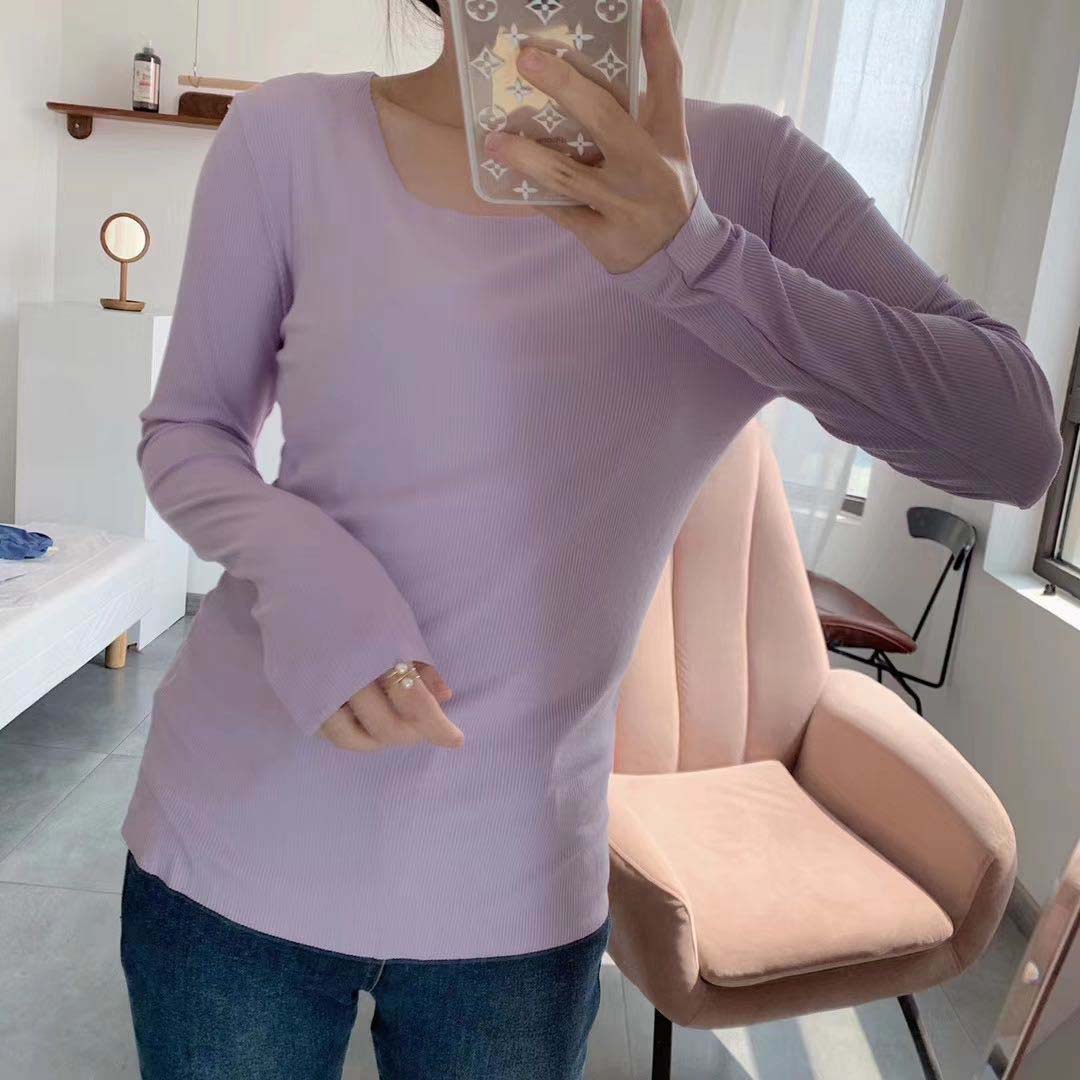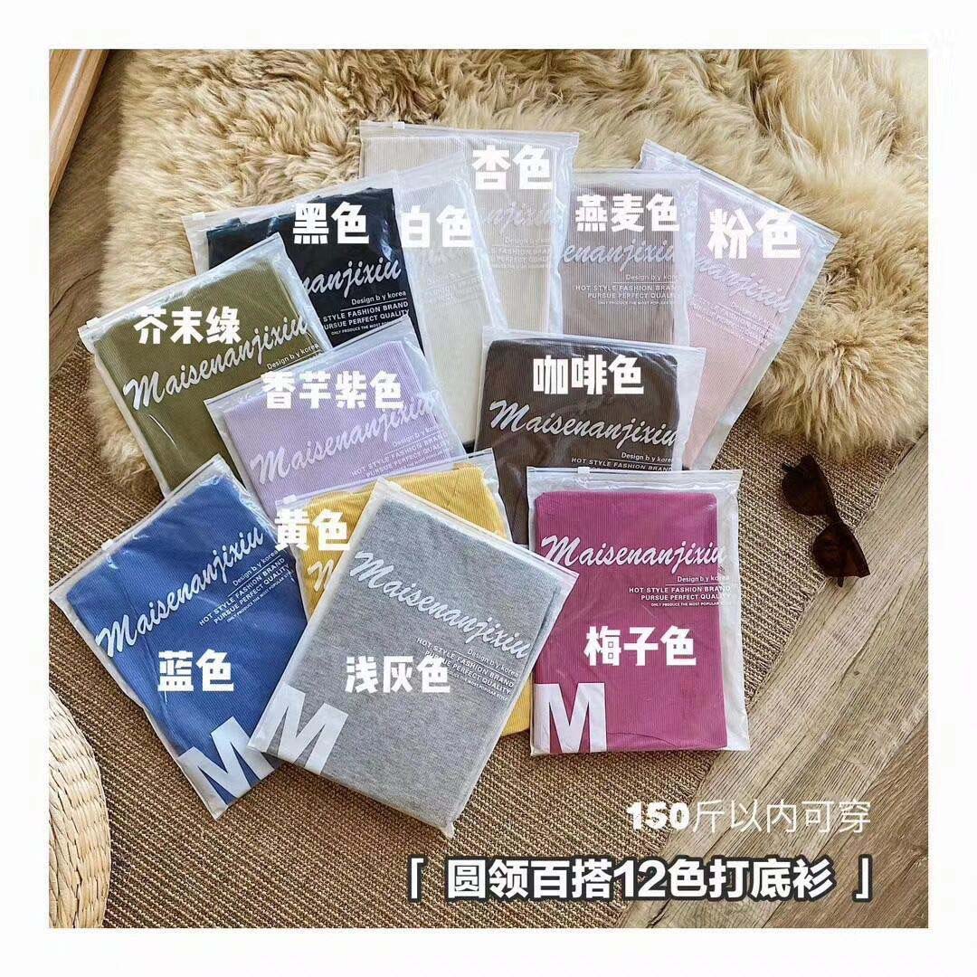 修身打底衫新款舒适百搭圆领螺纹长袖T桖