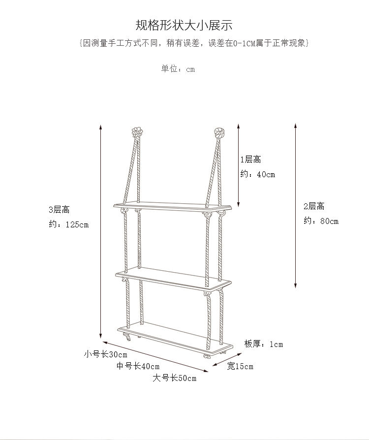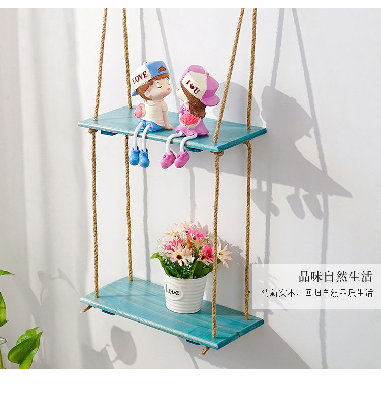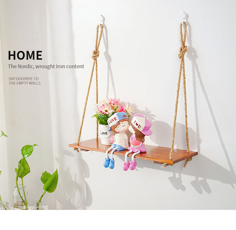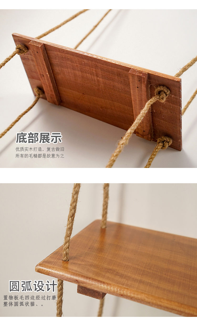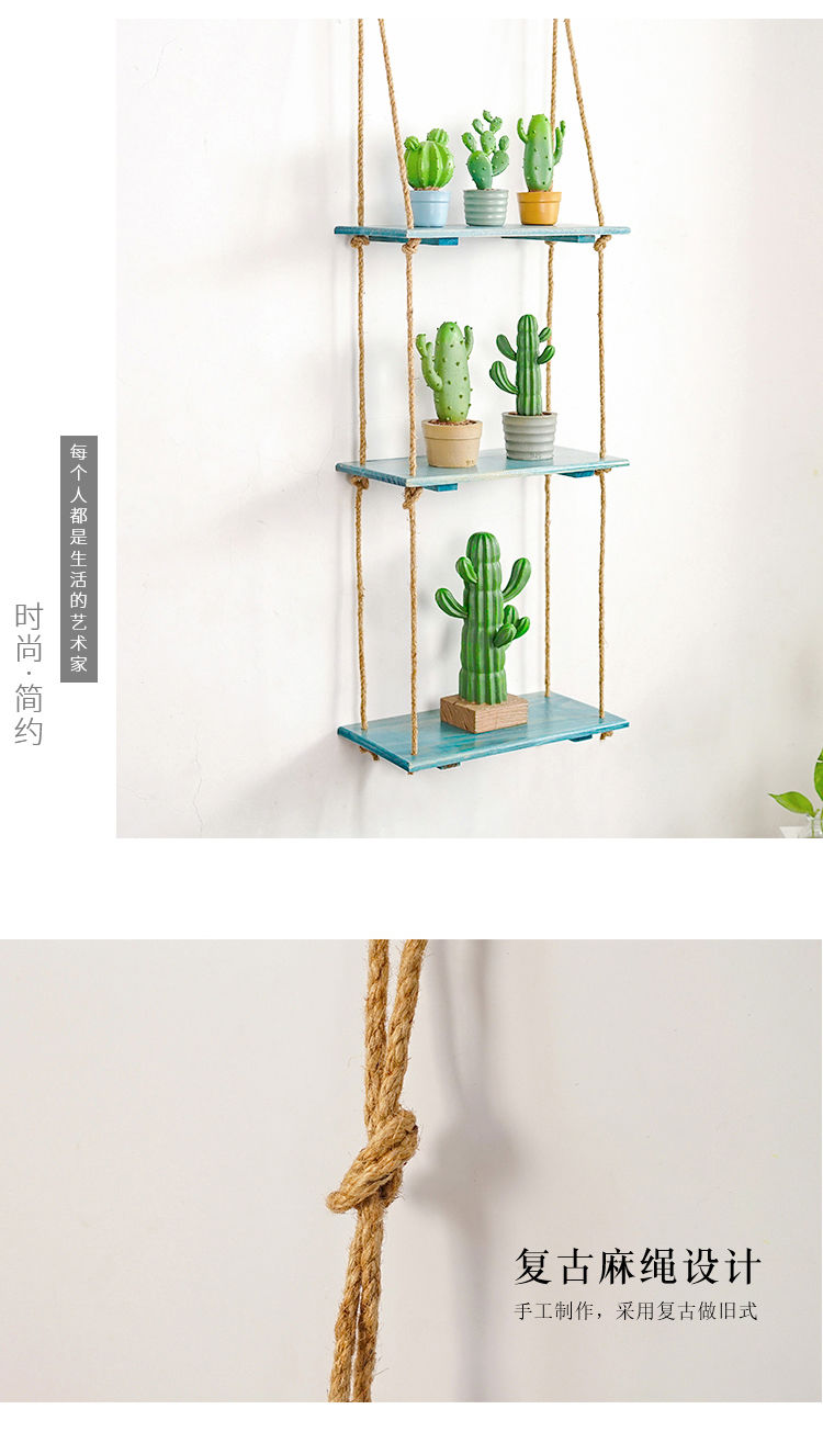 a卧室墙上置物架免打孔麻绳一字隔板实木