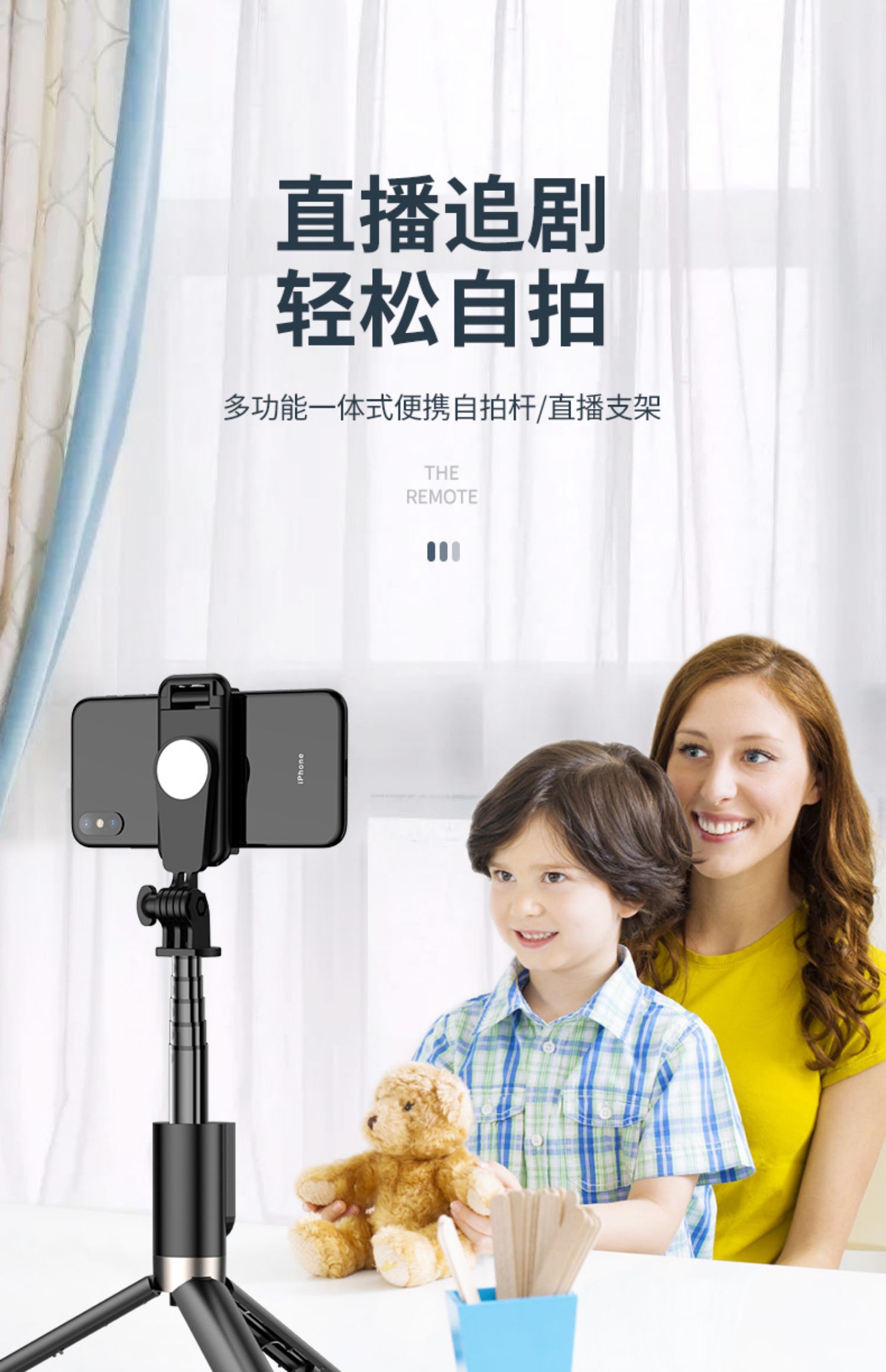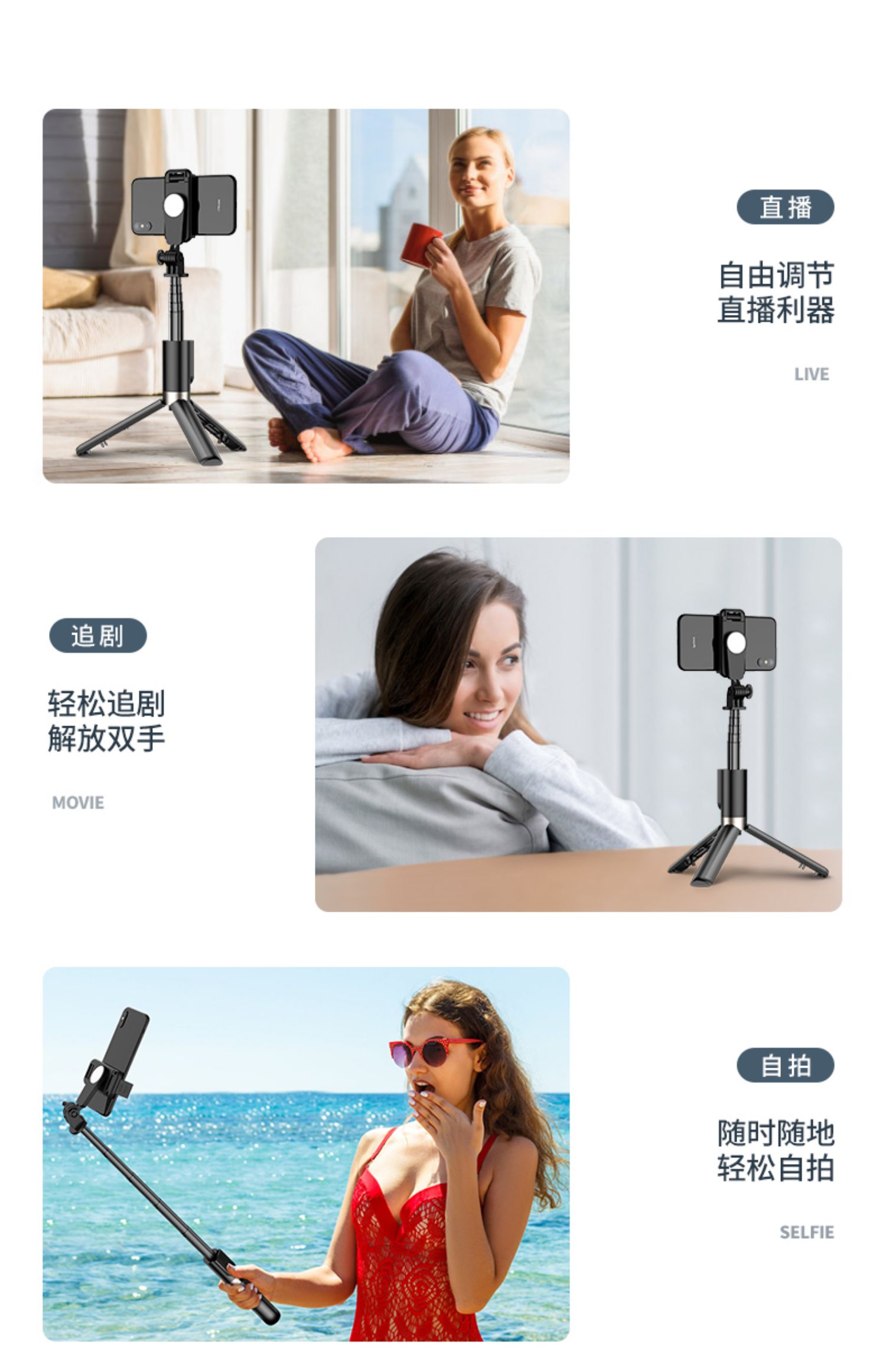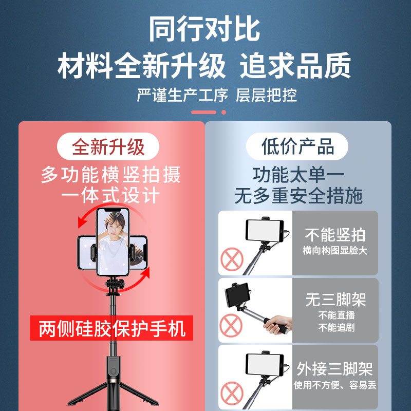 通用型自拍杆一体式苹果蓝牙自排三脚架拍照神器,遥控多功能网红直播支架,新品上市,360°旋转,多功能,横拍竖拍【赠运费险】