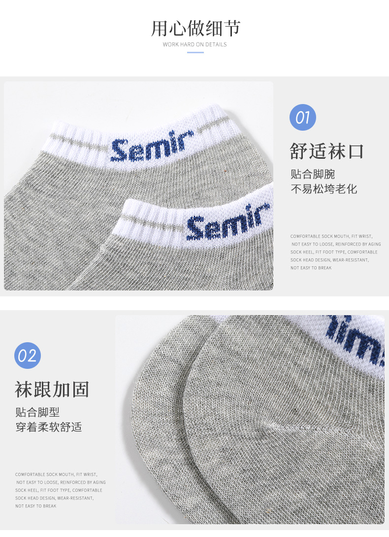 【纯棉超值7双装】森马品牌防臭吸汗夏季短袜,精选会呼吸好棉,亲肤舒爽,吸湿抑菌除臭,耐穿耐磨,加固不脱落,舒适不勒脚,弹性十足,夏季必备!