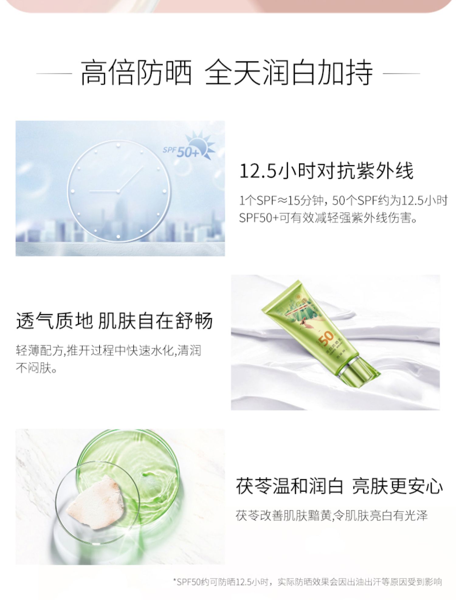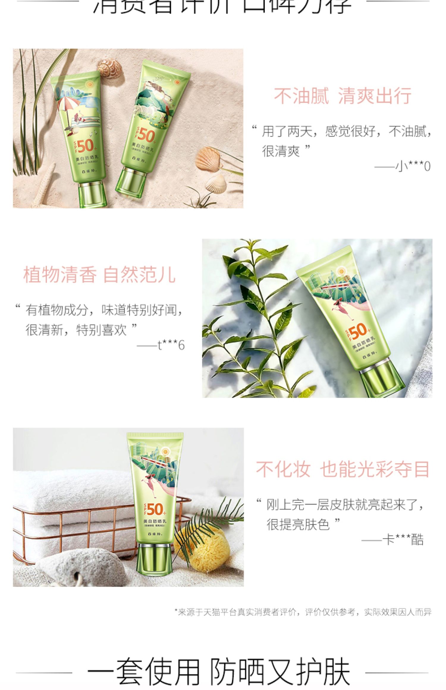 【第2件半价,拍2件单件低至44.25元】采用天然花草精华,轻薄冰爽,持久高效防晒,防水防汗、清润水感防晒,质地清爽不油腻,无惧阳光,保持健康肤,给您不一样的防晒轻体验