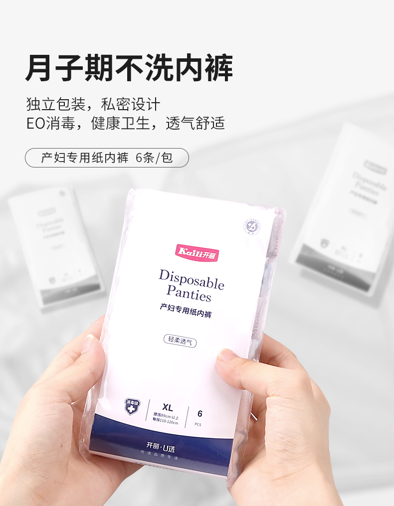 【开丽品牌】6条纯棉实惠装,无荧光剂,舒适透气,独立包装,适用于临产期,月子期,女性生理期,外出旅游等女性人群。